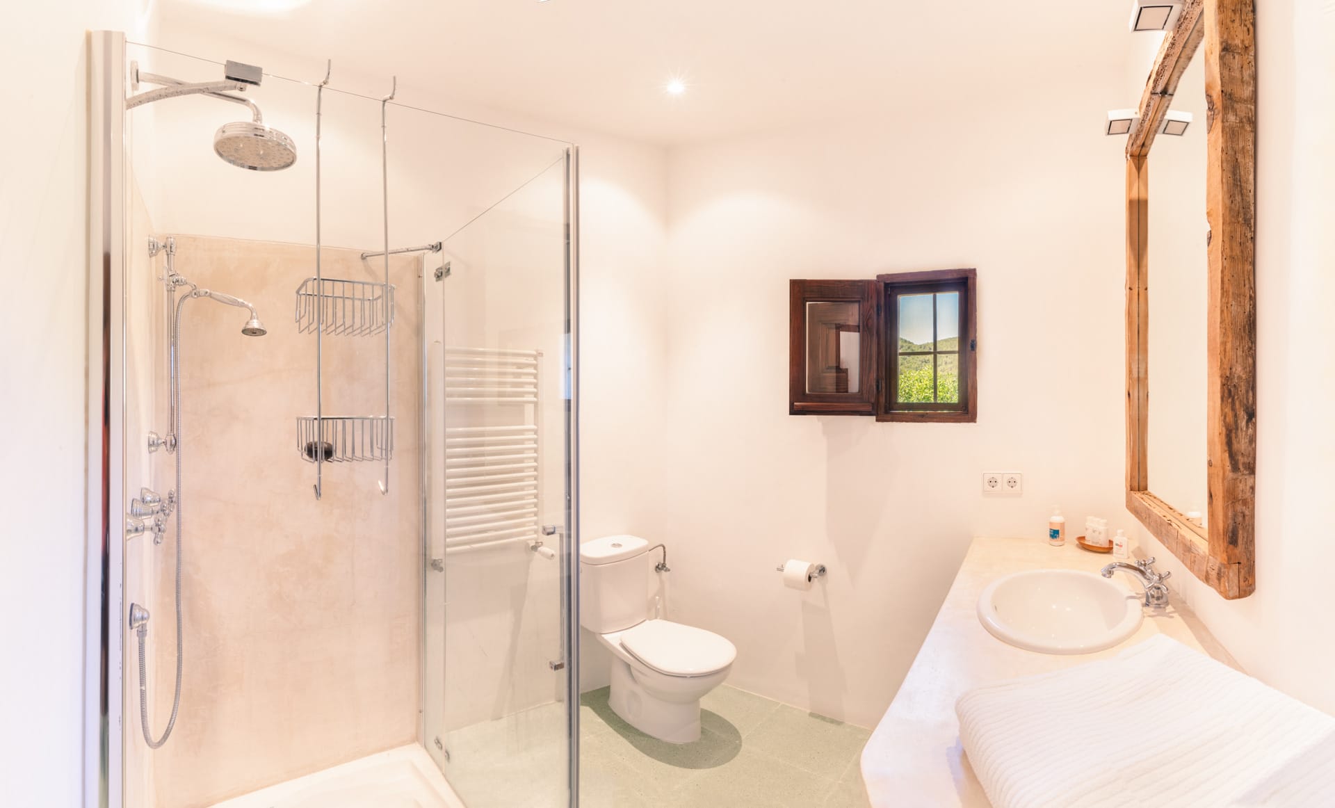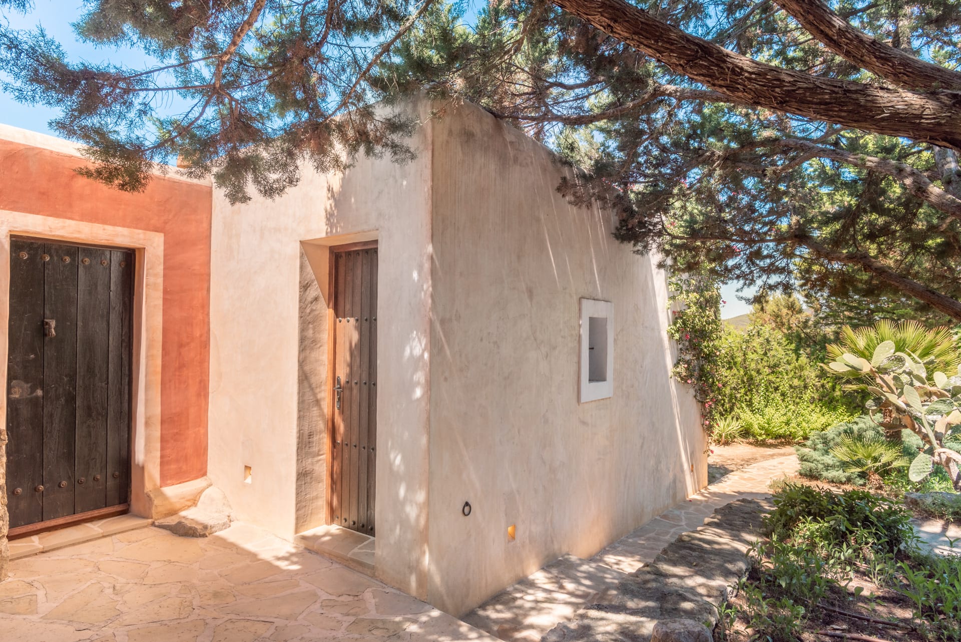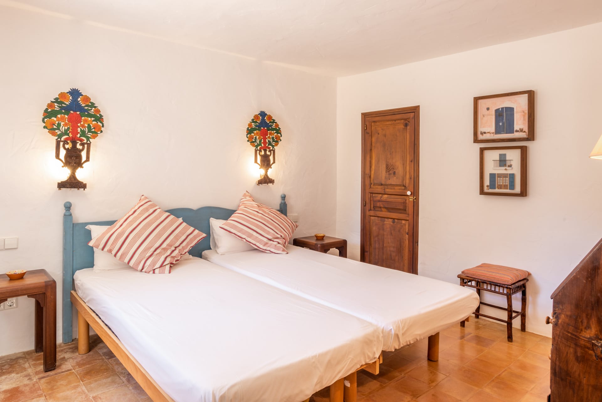 Located just 2 km from San Josep and within easy reach of the airport, Ibiza Town, and the island’s southern beaches, it combines seclusion with convenience. The main house includes four double bedrooms, each with its own bathroom, along with a living room, TV studio, and fully equipped kitchen. Additional accommodation includes a separate bedroom and a private apartment, bringing total capacity to 12 guests.
