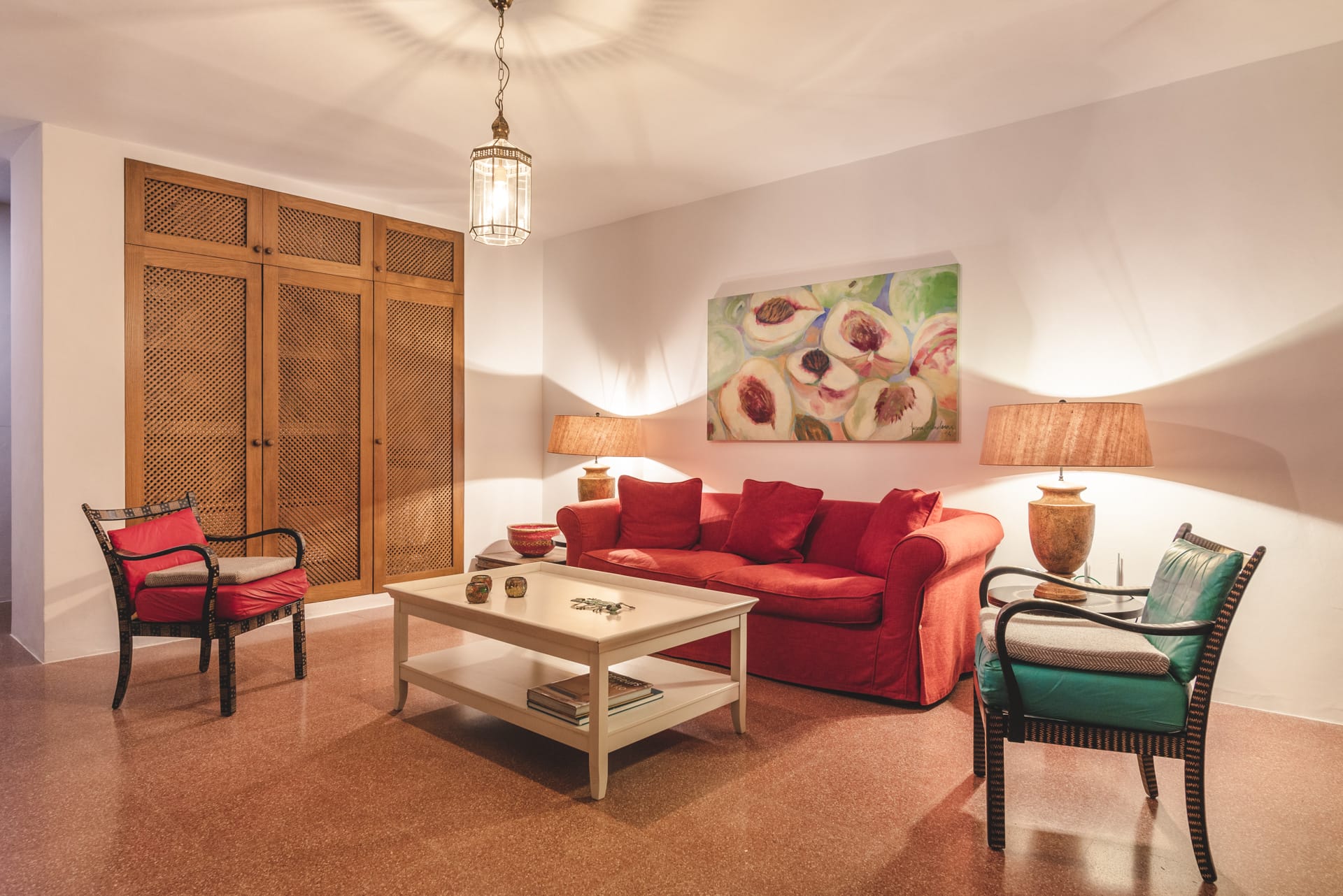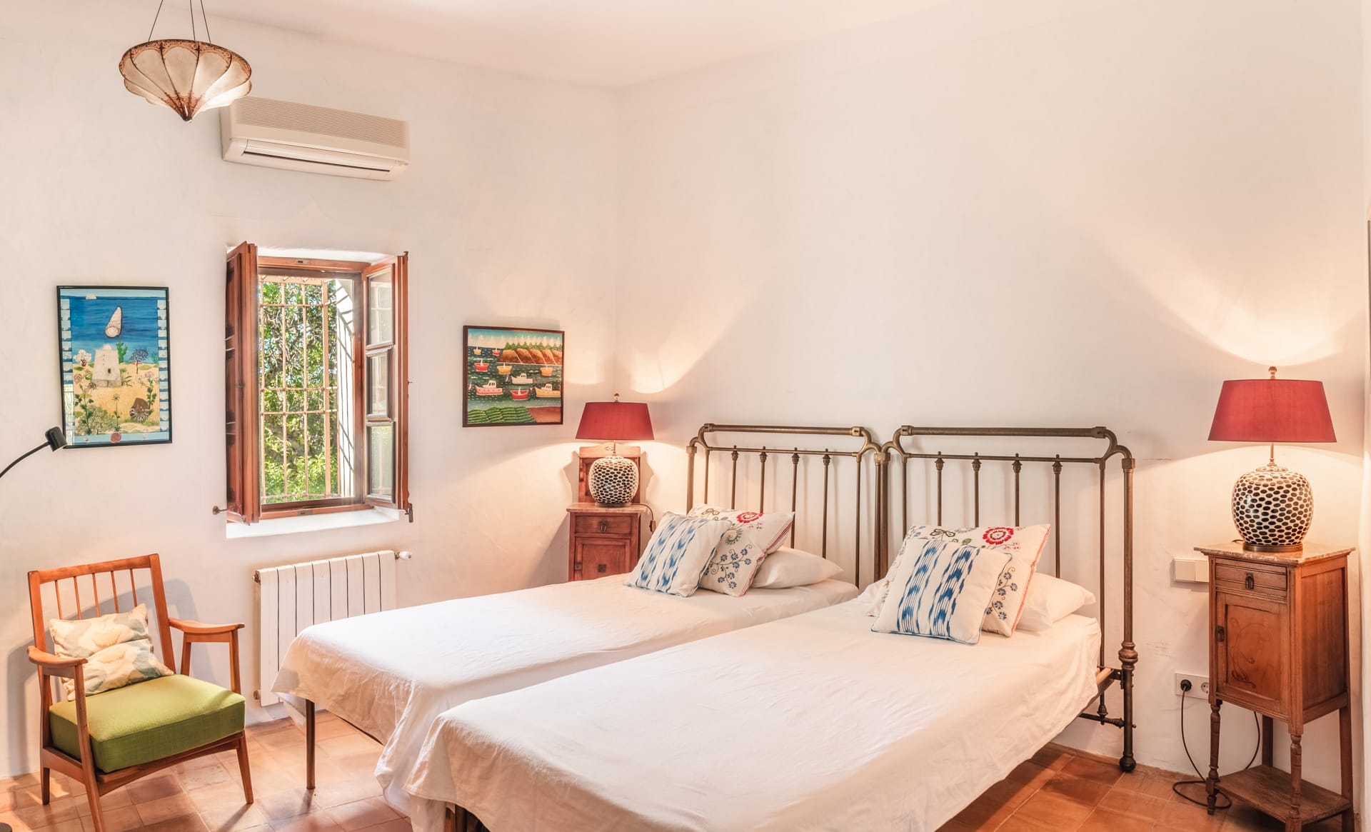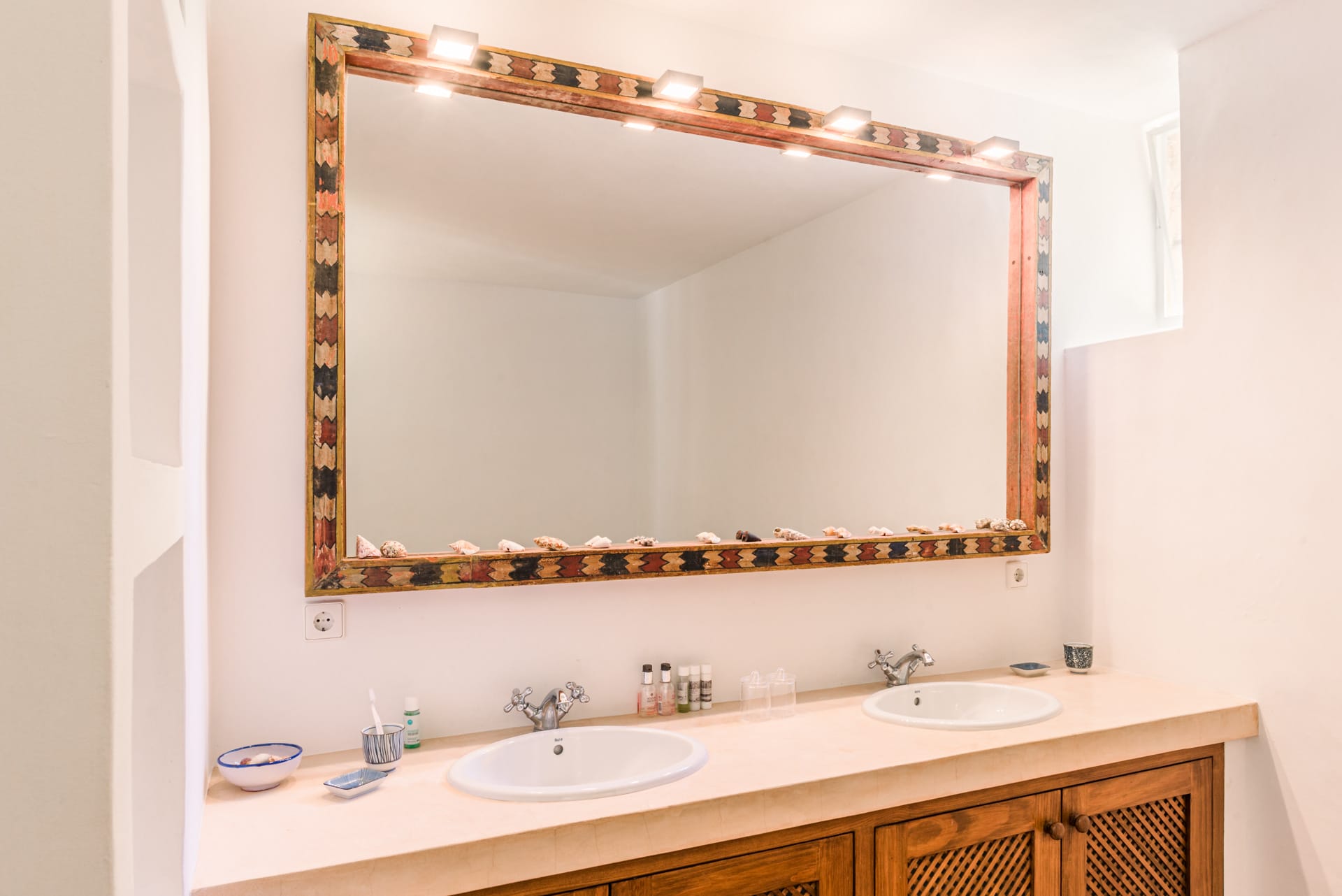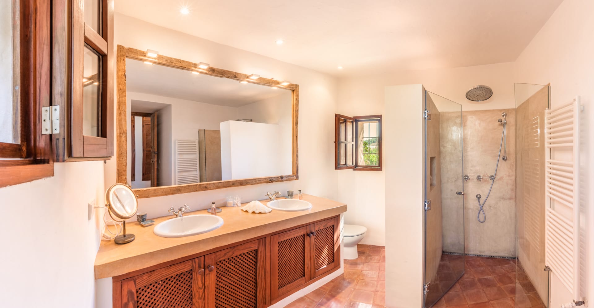 Located just 2 km from San Josep and within easy reach of the airport, Ibiza Town, and the island’s southern beaches, it combines seclusion with convenience. The main house includes four double bedrooms, each with its own bathroom, along with a living room, TV studio, and fully equipped kitchen. Additional accommodation includes a separate bedroom and a private apartment, bringing total capacity to 12 guests.