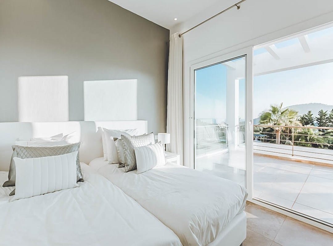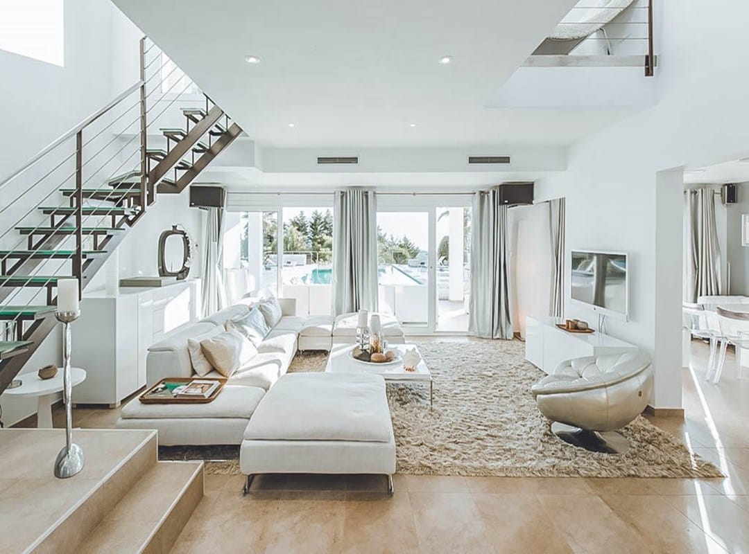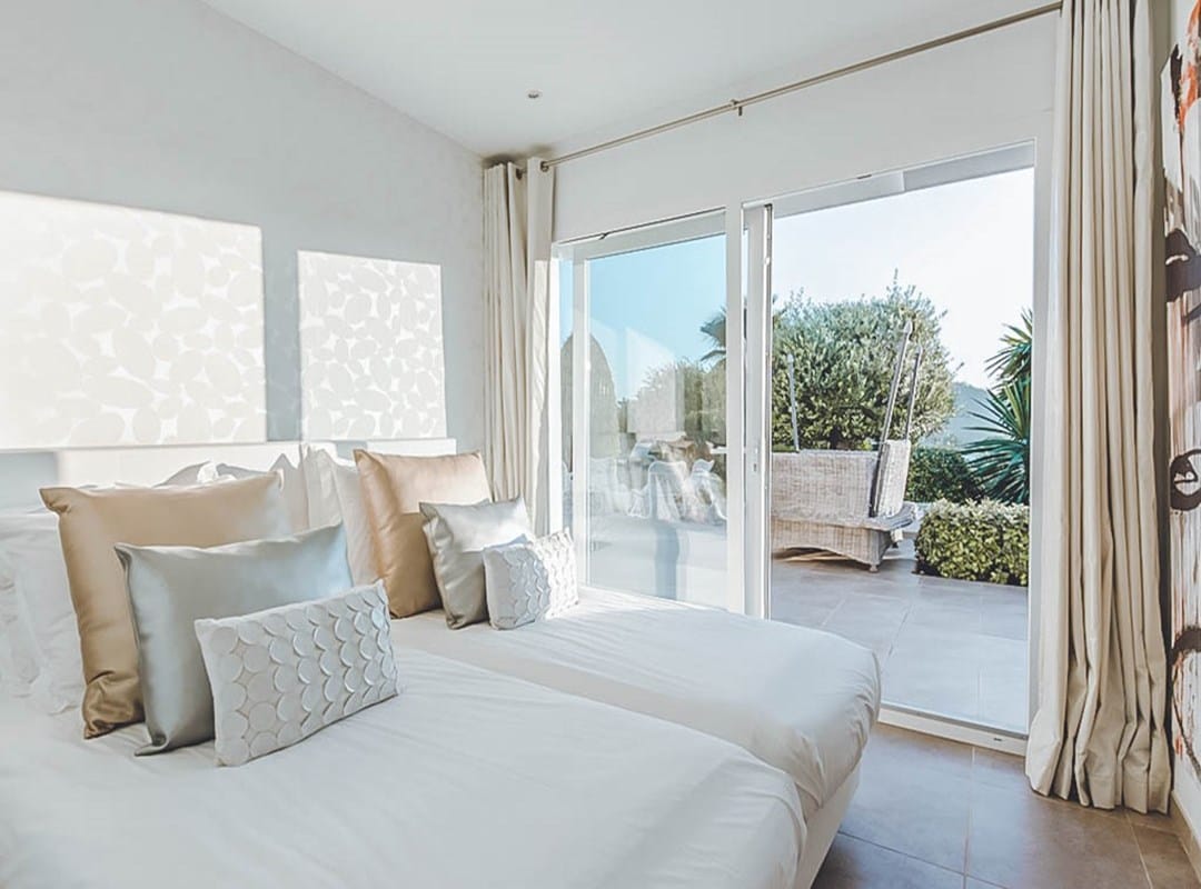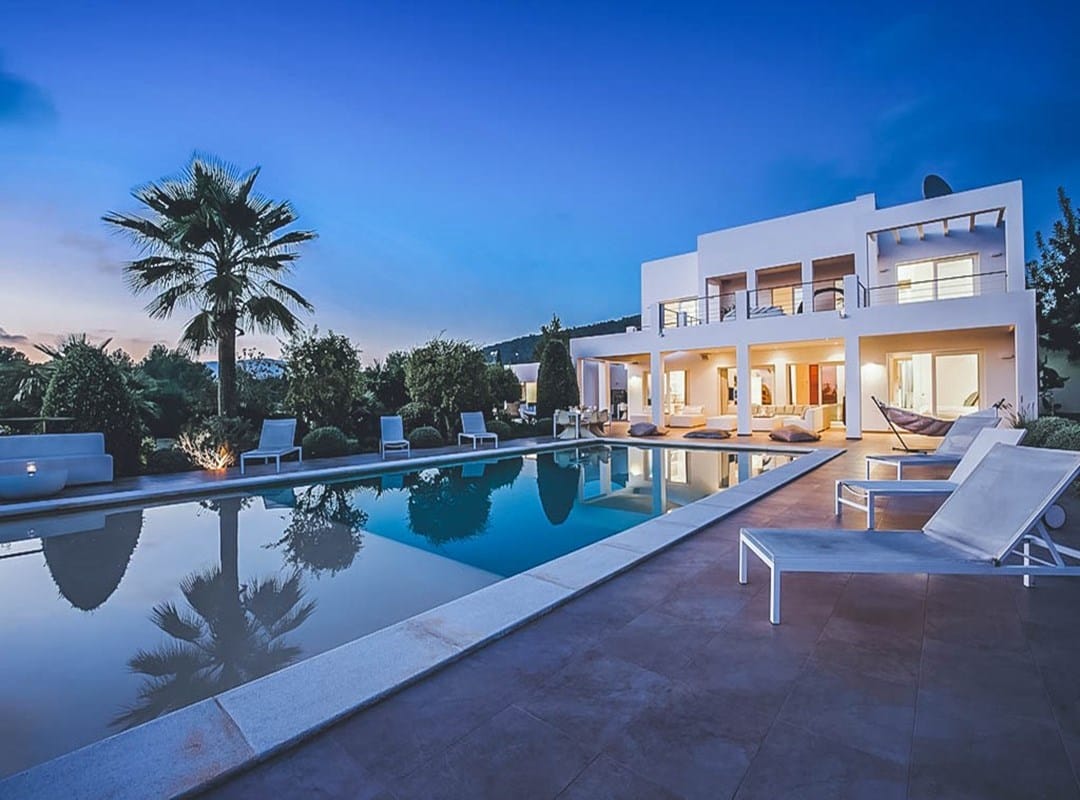 This stylish 6-bedroom villa is perfectly situated in one of Ibiza’s most desirable areas, offering spectacular views over Cala Jondal, the Mediterranean Sea, and the surrounding countryside.