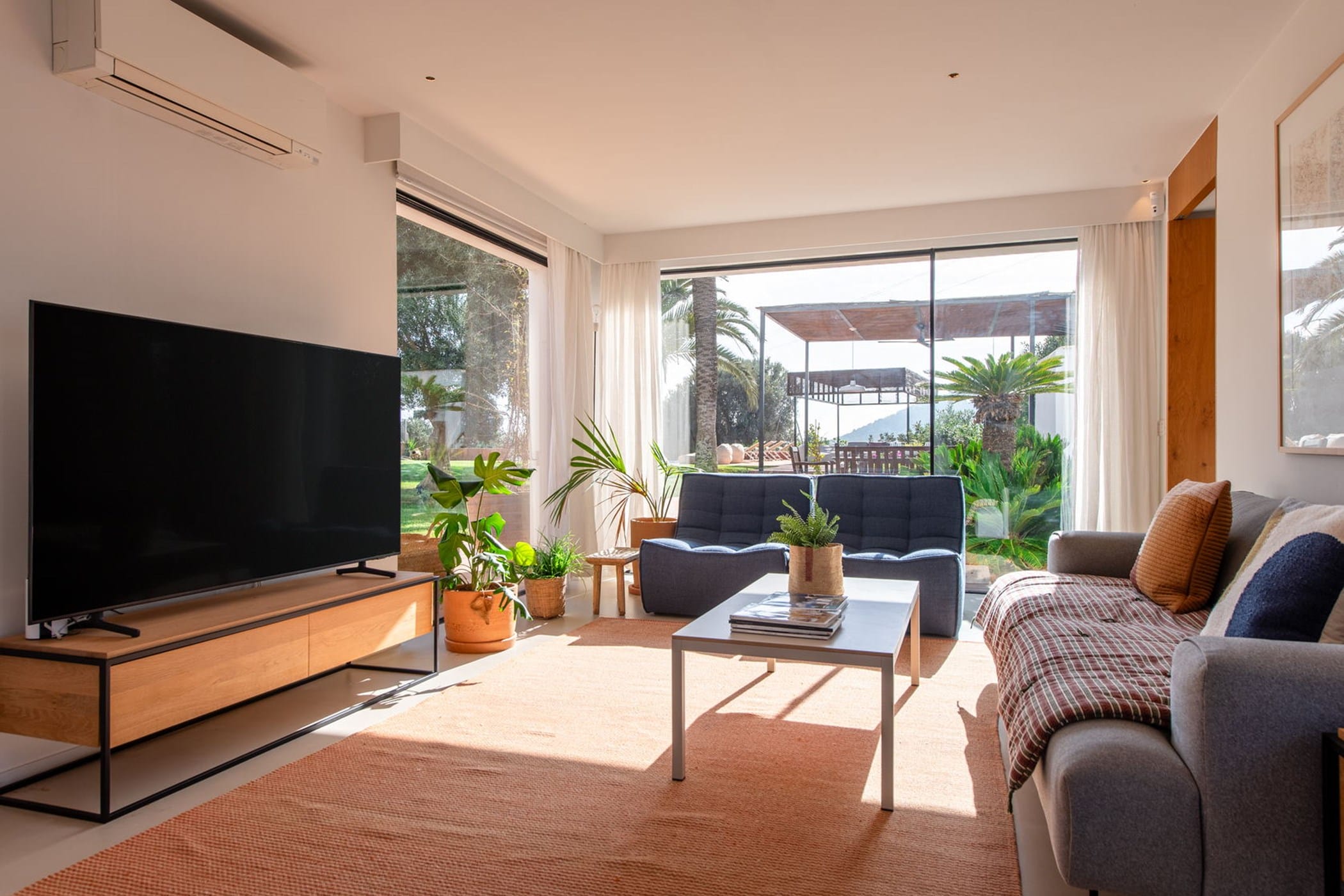 This recently refurbished contemporary 6-bedroom villa is located in the exclusive Cala Jondal area, just minutes from Blue Marlin Beach Club. It offers breathtaking sea views and sits on a 5,200m² plot with beautifully landscaped gardens featuring lawns, palm trees, and olive trees.