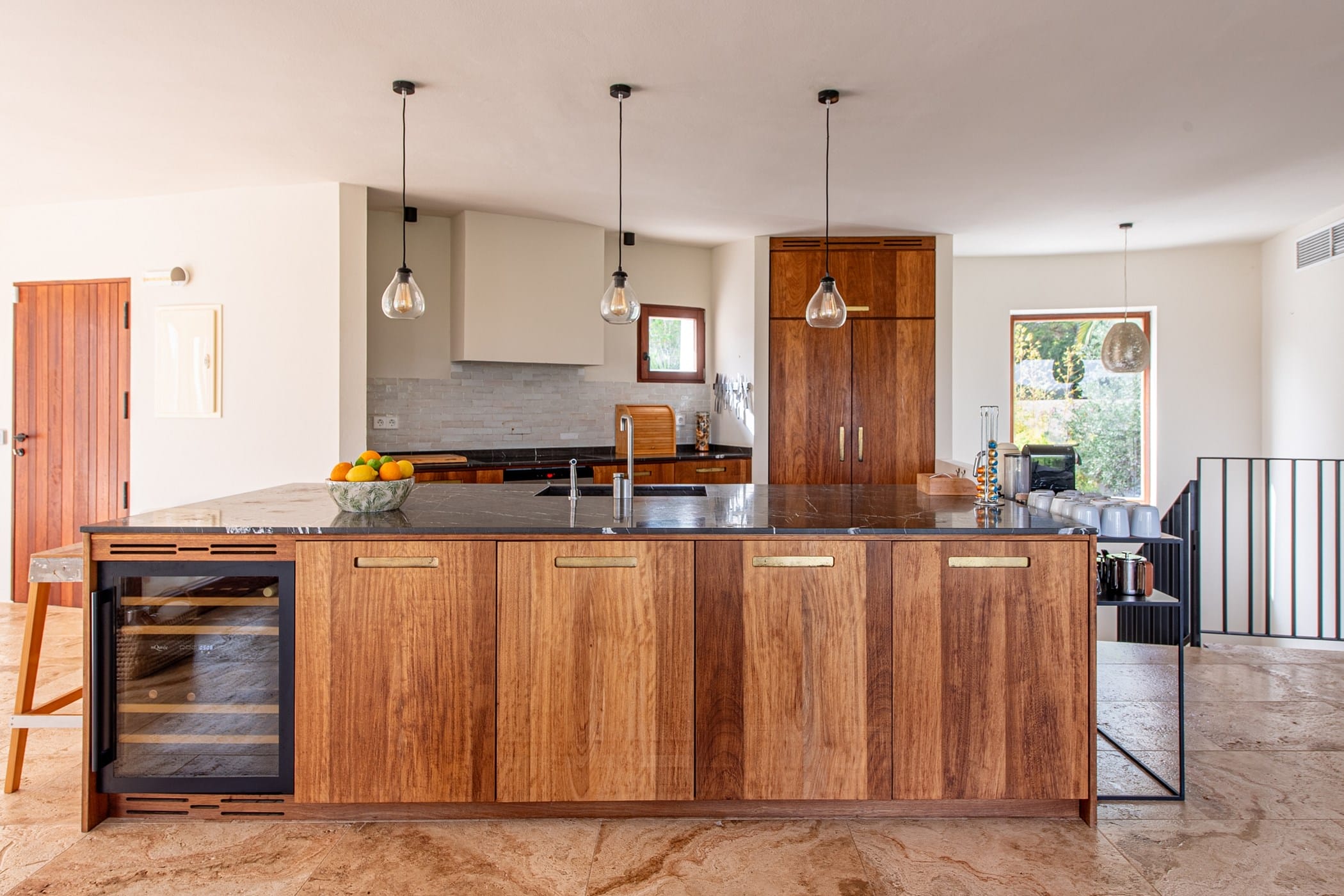 Spread over two levels, the villa features a spacious open-plan living area and state-of-the-art kitchen on the top floor that flows onto a large pool terrace with stunning sea and countryside views. The lower level houses five double bedrooms, each with impressive en-suite bathrooms (two with direct sea views, others opening to private gardens). An independent suite with its own garden and sea views provides extra privacy.