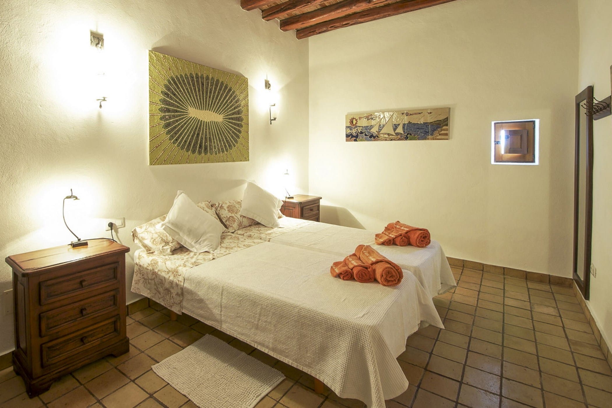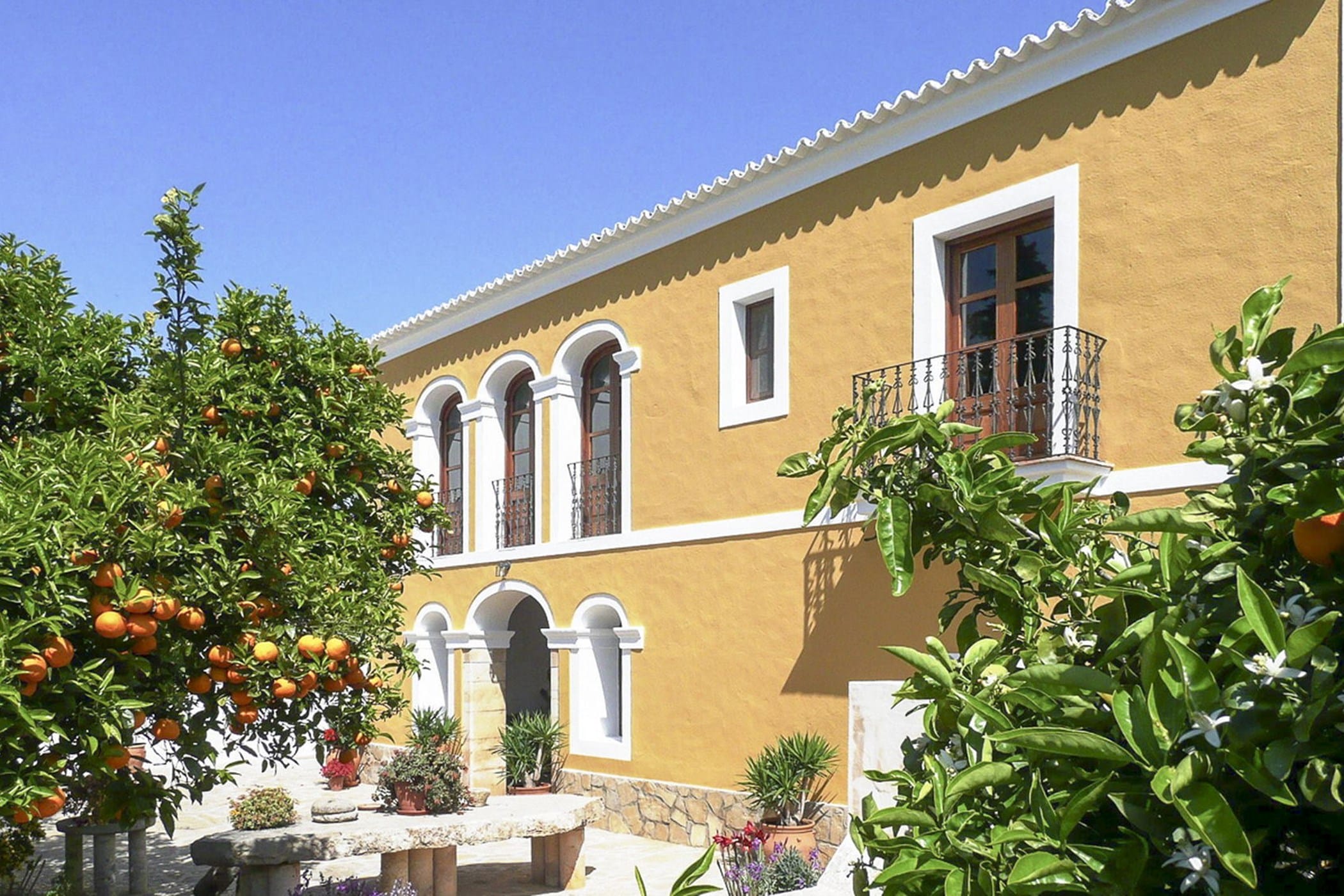 This charming traditional Ibizan finca offers 400 m² of living space on a vast 100,000 m² estate surrounded by orange groves in the peaceful north of the island. It comfortably accommodates up to 12 guests.