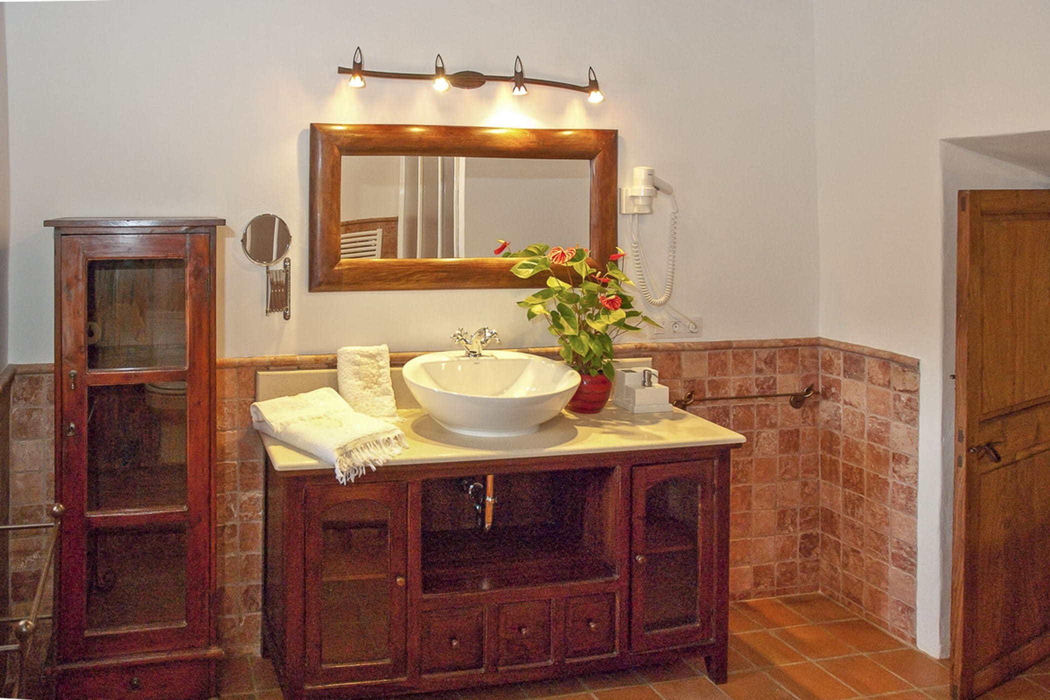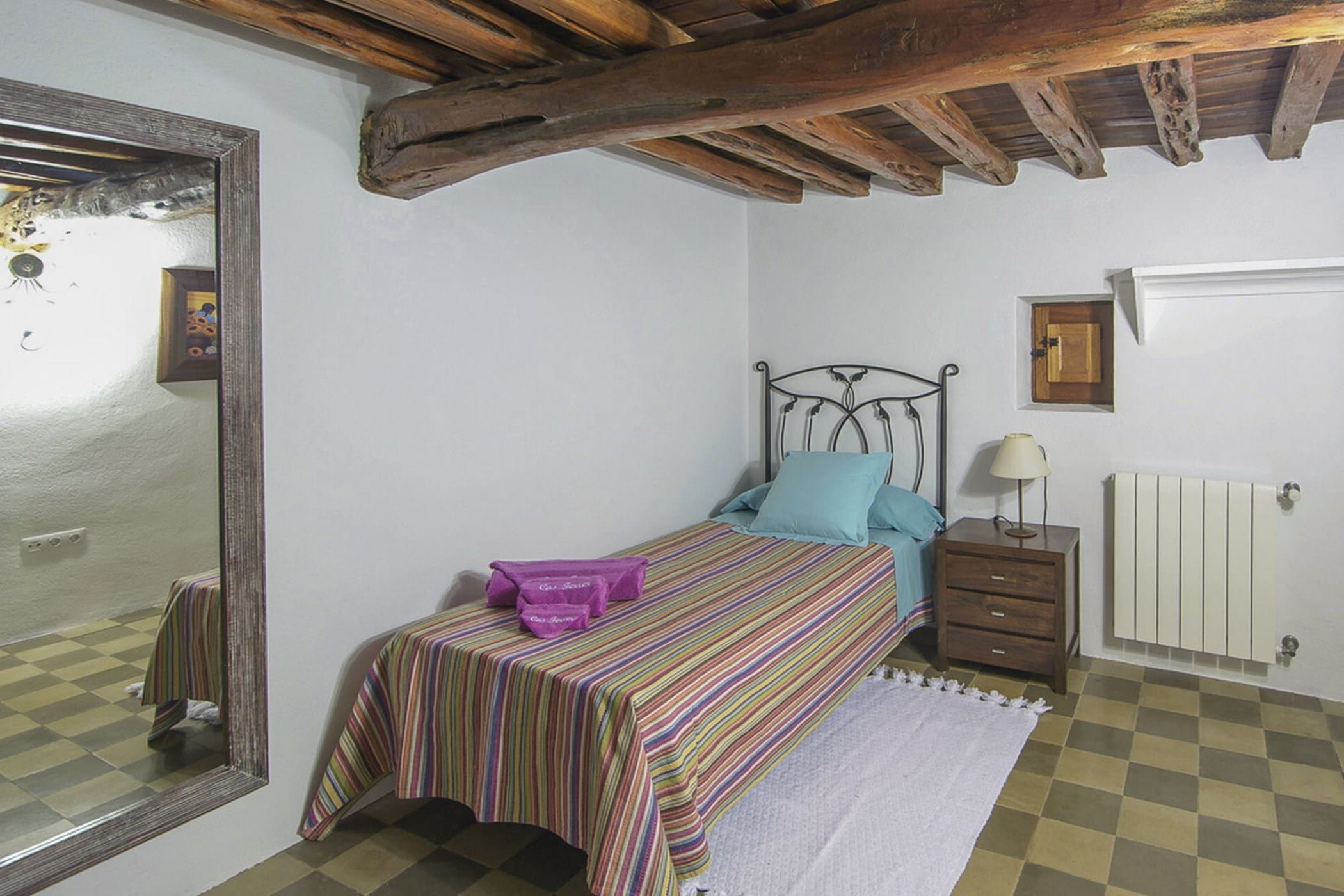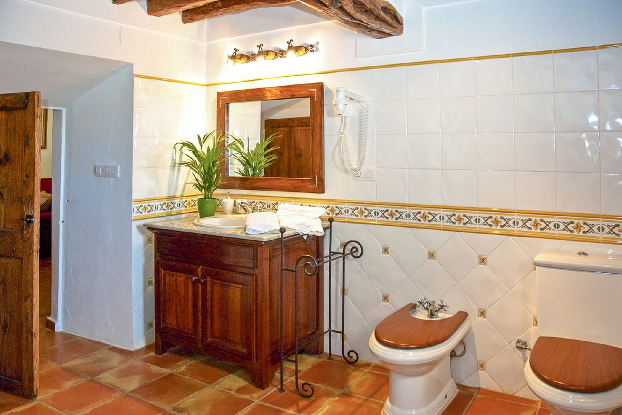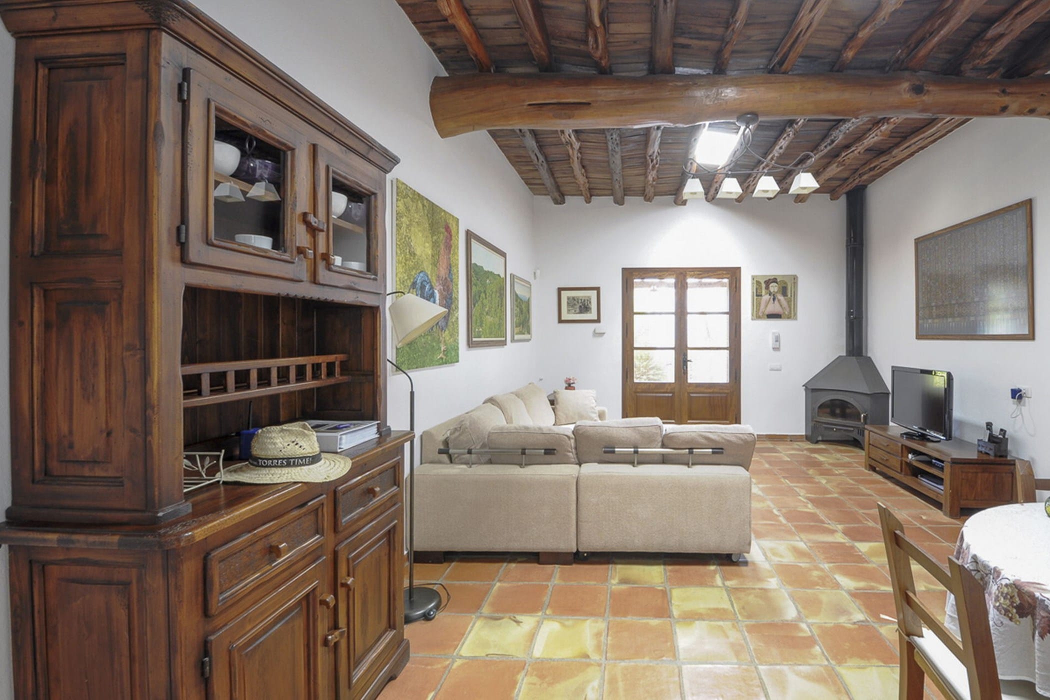 Carefully restored while preserving its original Sabina wood ceilings and thick stone walls, the villa blends authentic character with modern comfort. It features six double bedrooms (three with 180x200cm beds, one with 150x190cm, and two with twin 90x200cm beds) and four bathrooms (one with a whirlpool tub and one by the pool).