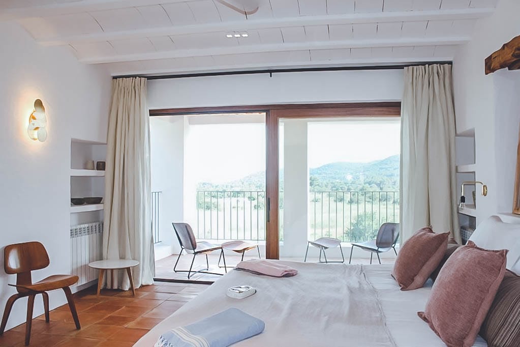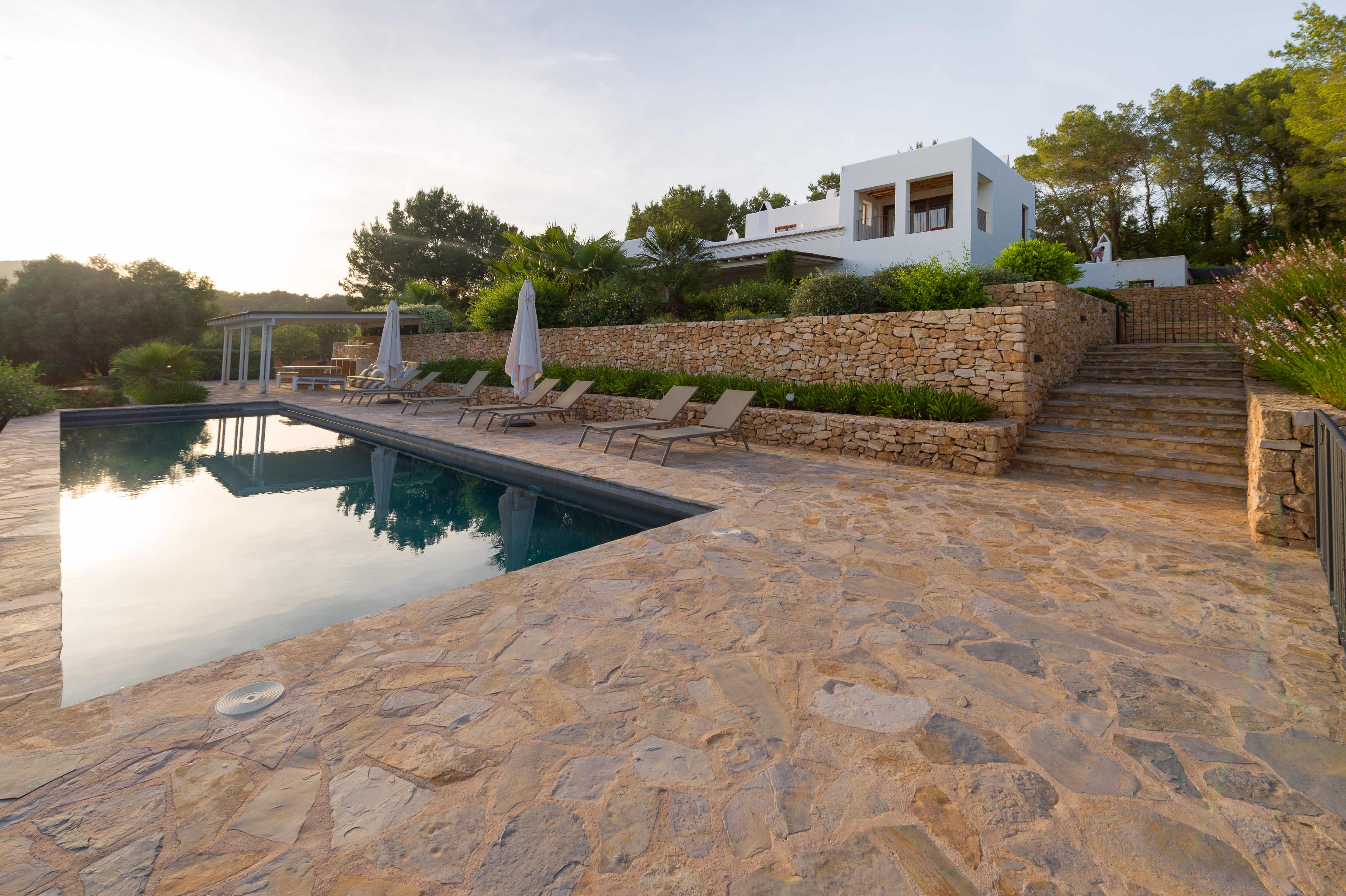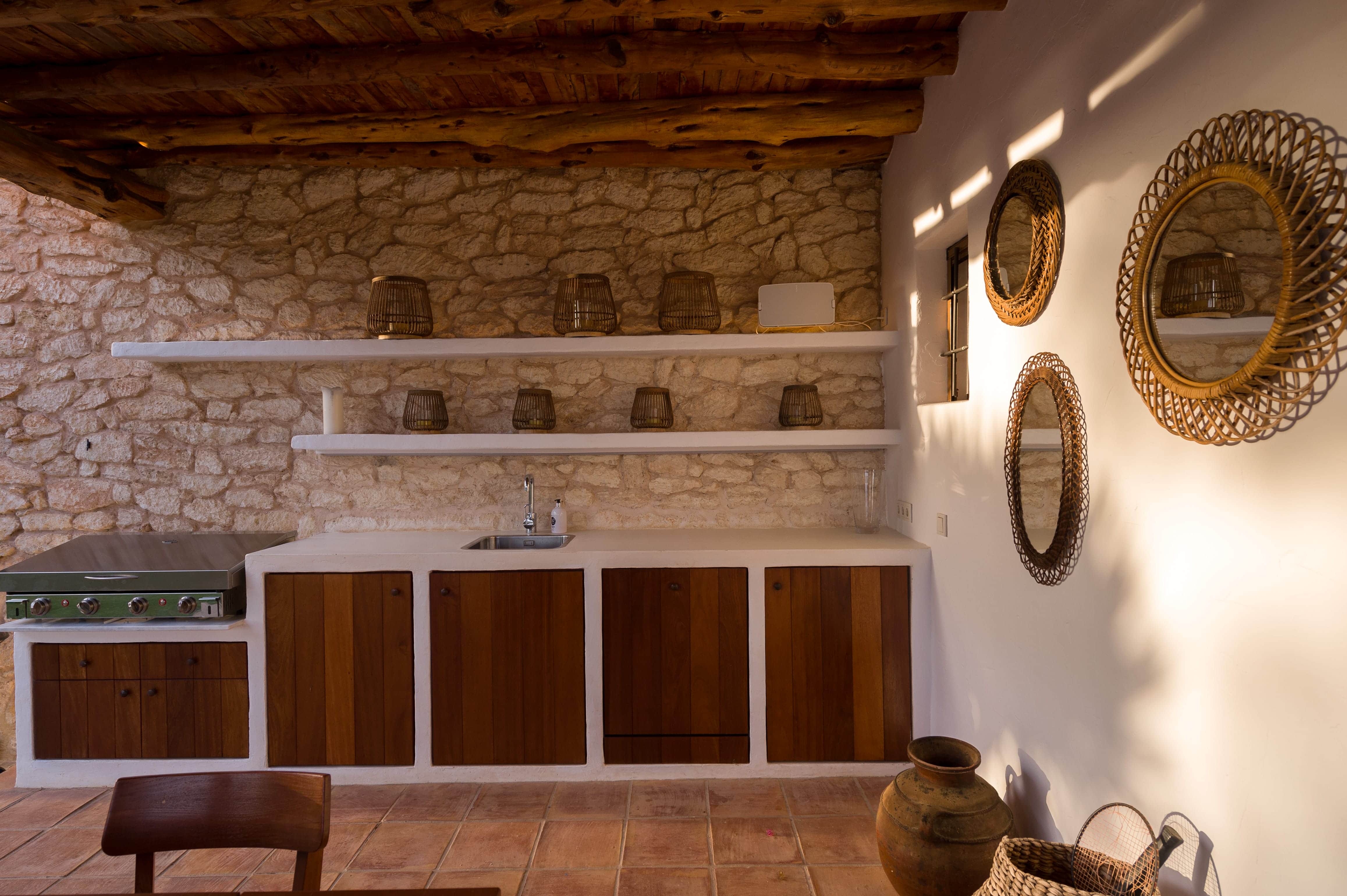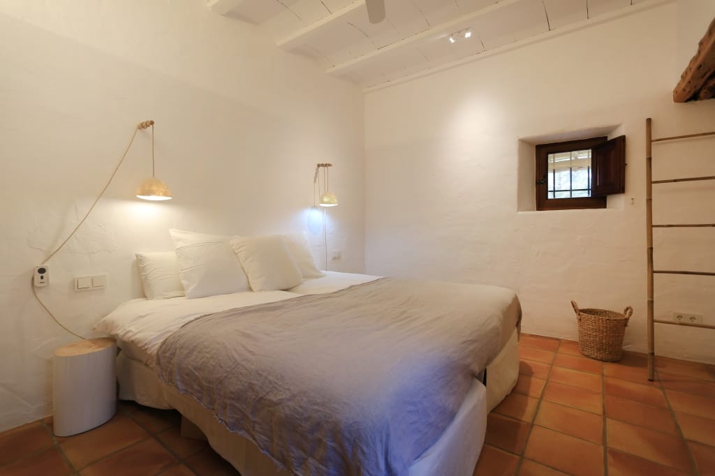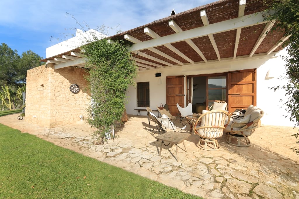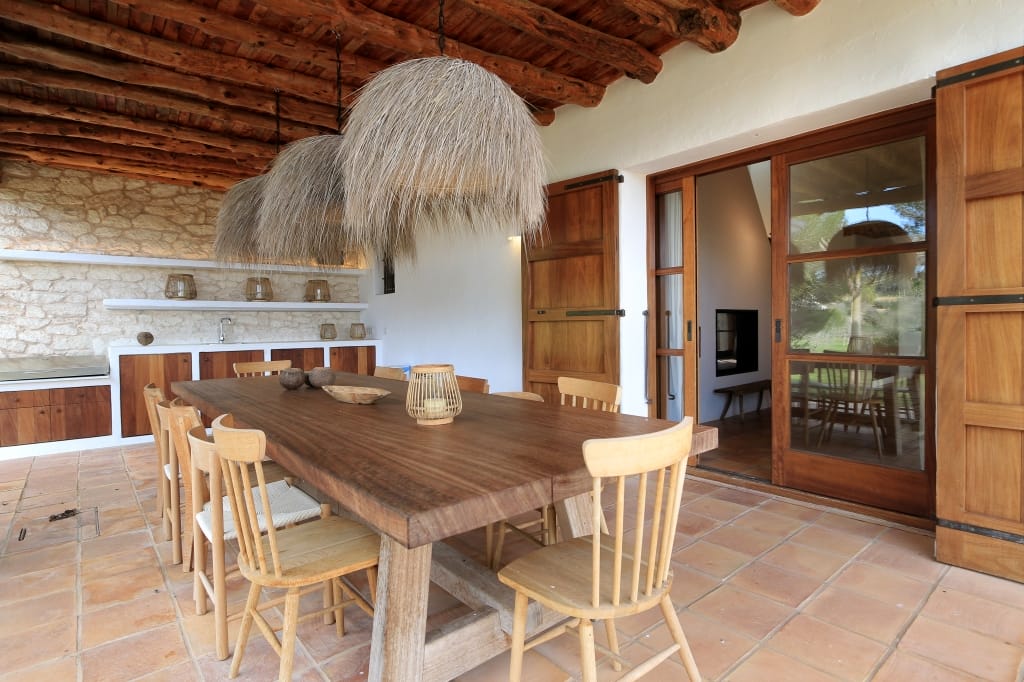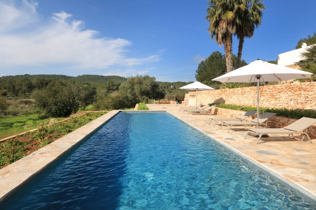 This beautiful modern rustic finca, built in 2018, offers a perfect blend of contemporary comfort and timeless Ibizan charm. Set on one hectare of private land in Ibiza’s serene northern countryside, it enjoys sweeping sea views and is close to Santa Eulalia, San Carlos, and the beautiful beaches of Cala Nova, Aguas Blancas, and Cala Leña.