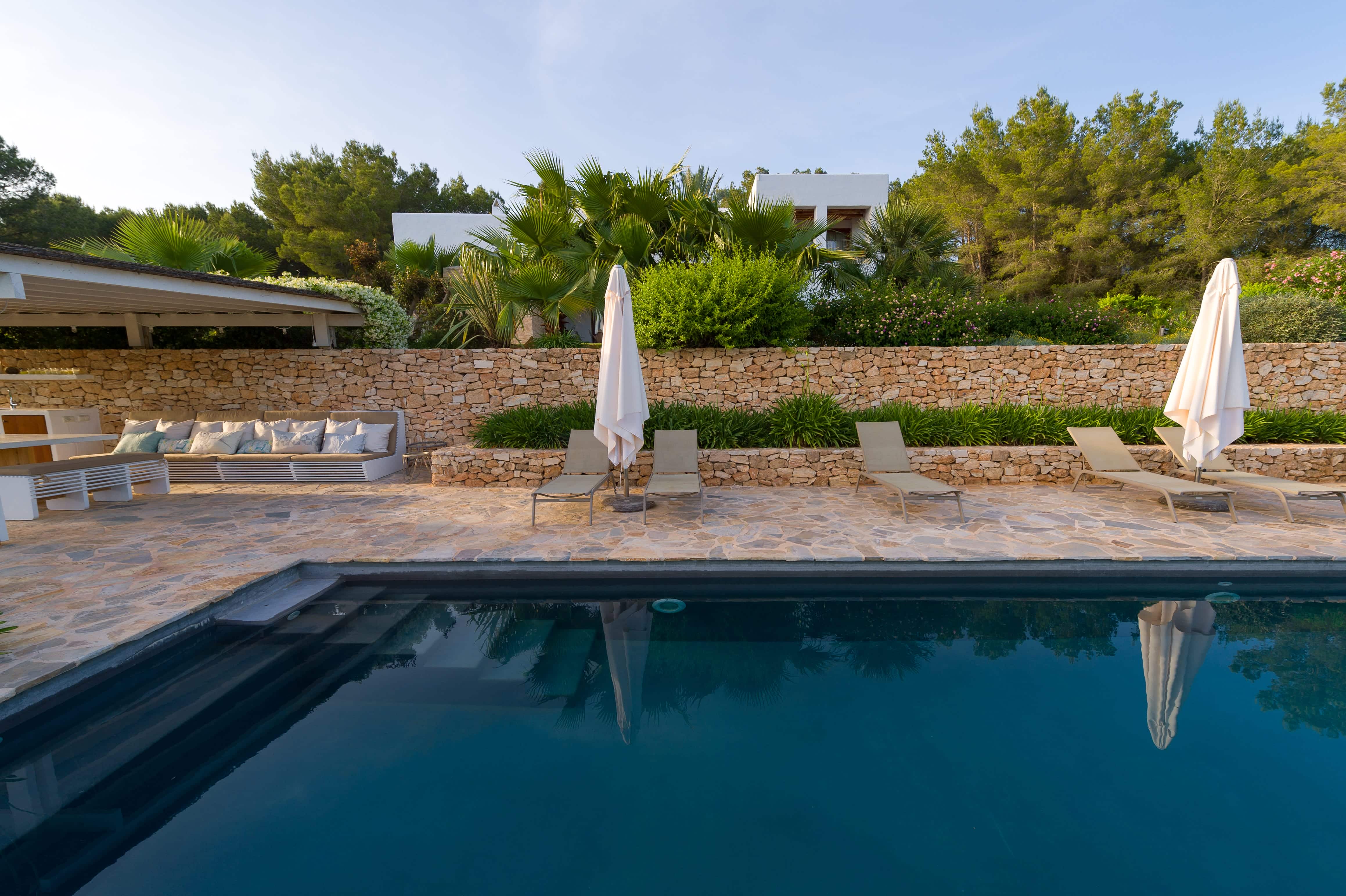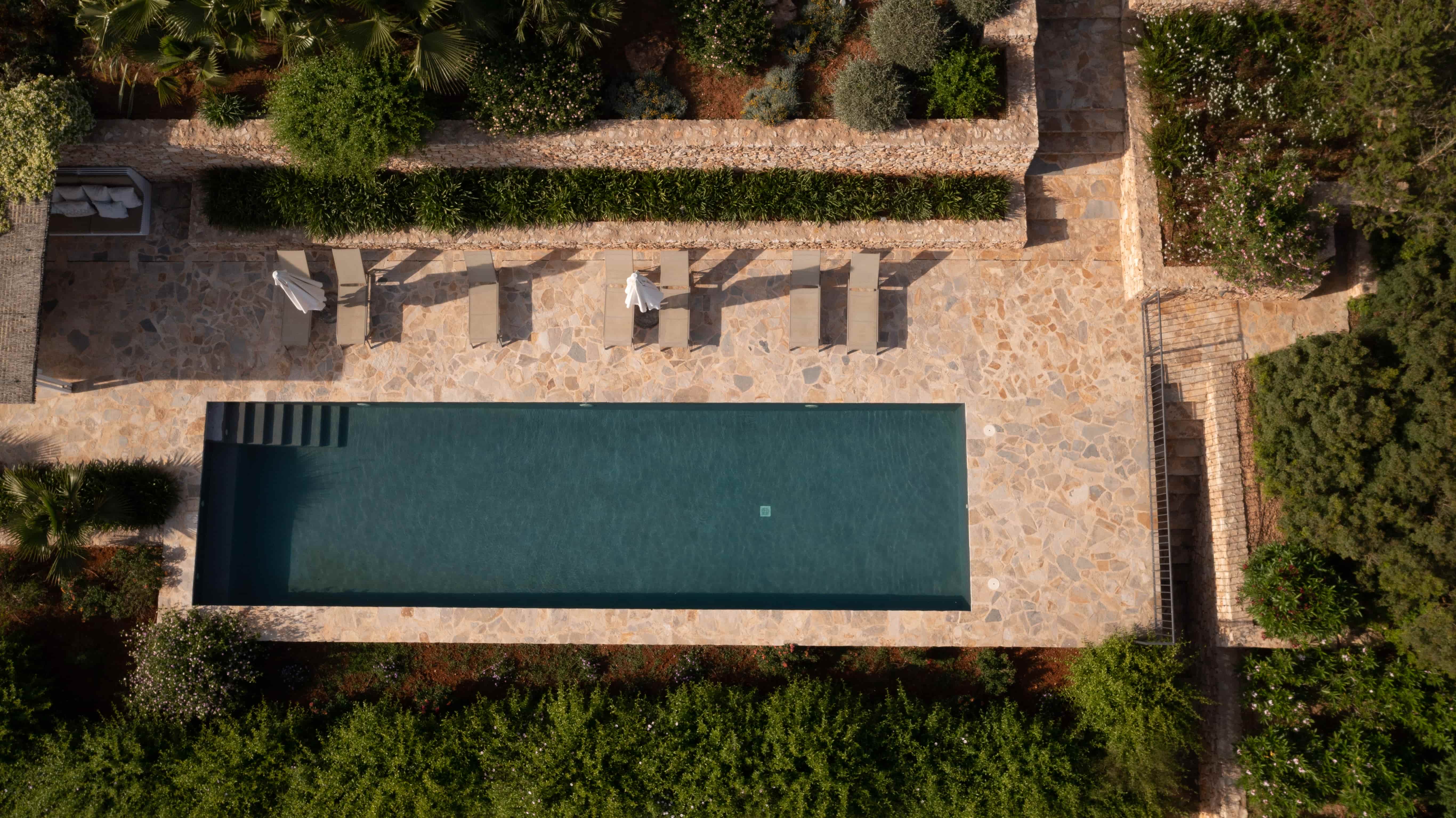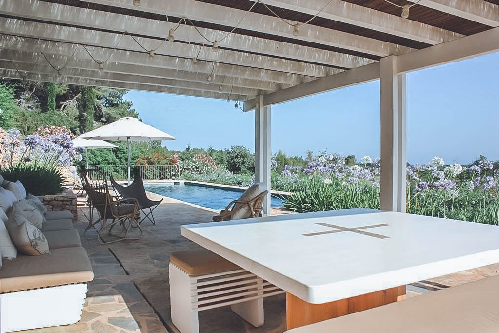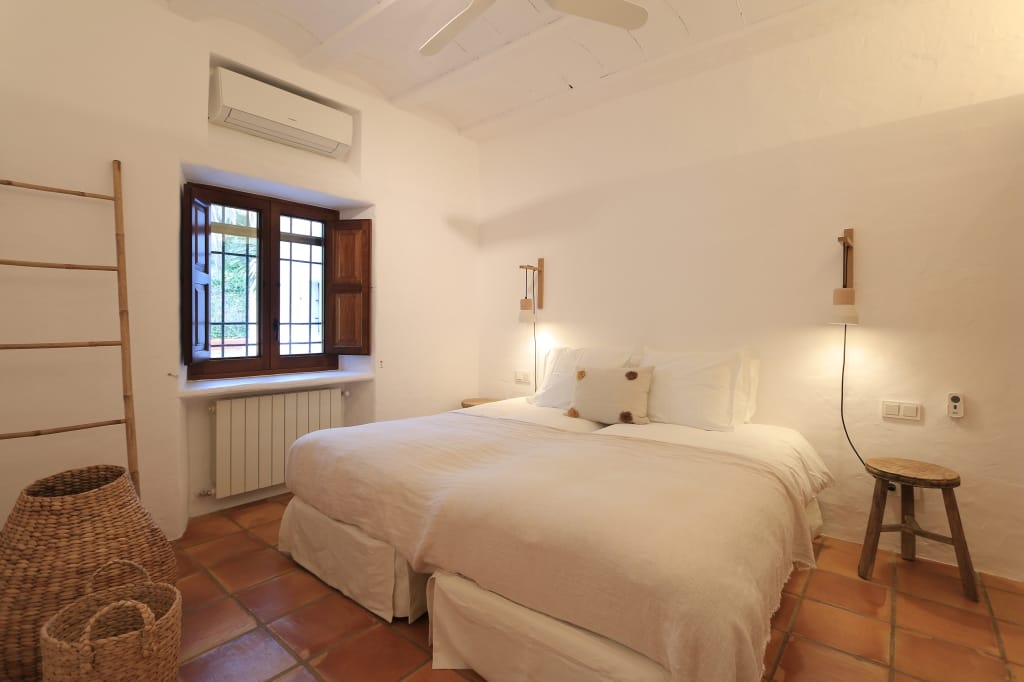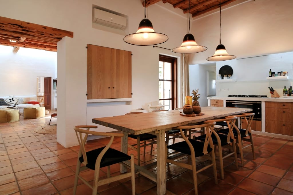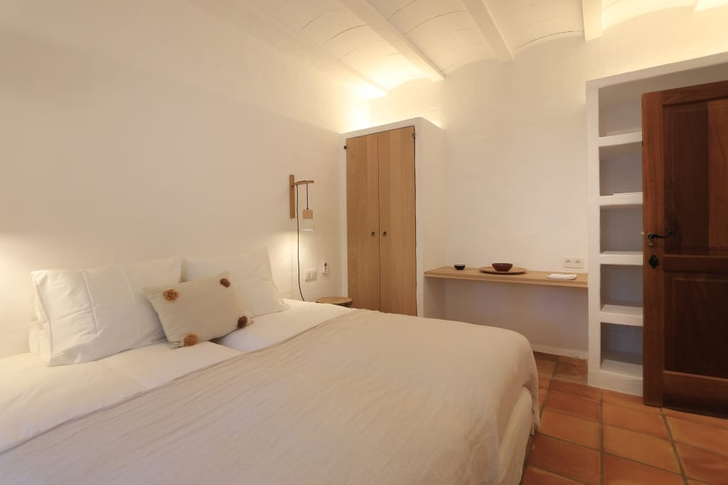 This beautiful modern rustic finca, built in 2018, offers a perfect blend of contemporary comfort and timeless Ibizan charm. Set on one hectare of private land in Ibiza’s serene northern countryside, it enjoys sweeping sea views and is close to Santa Eulalia, San Carlos, and the beautiful beaches of Cala Nova, Aguas Blancas, and Cala Leña.