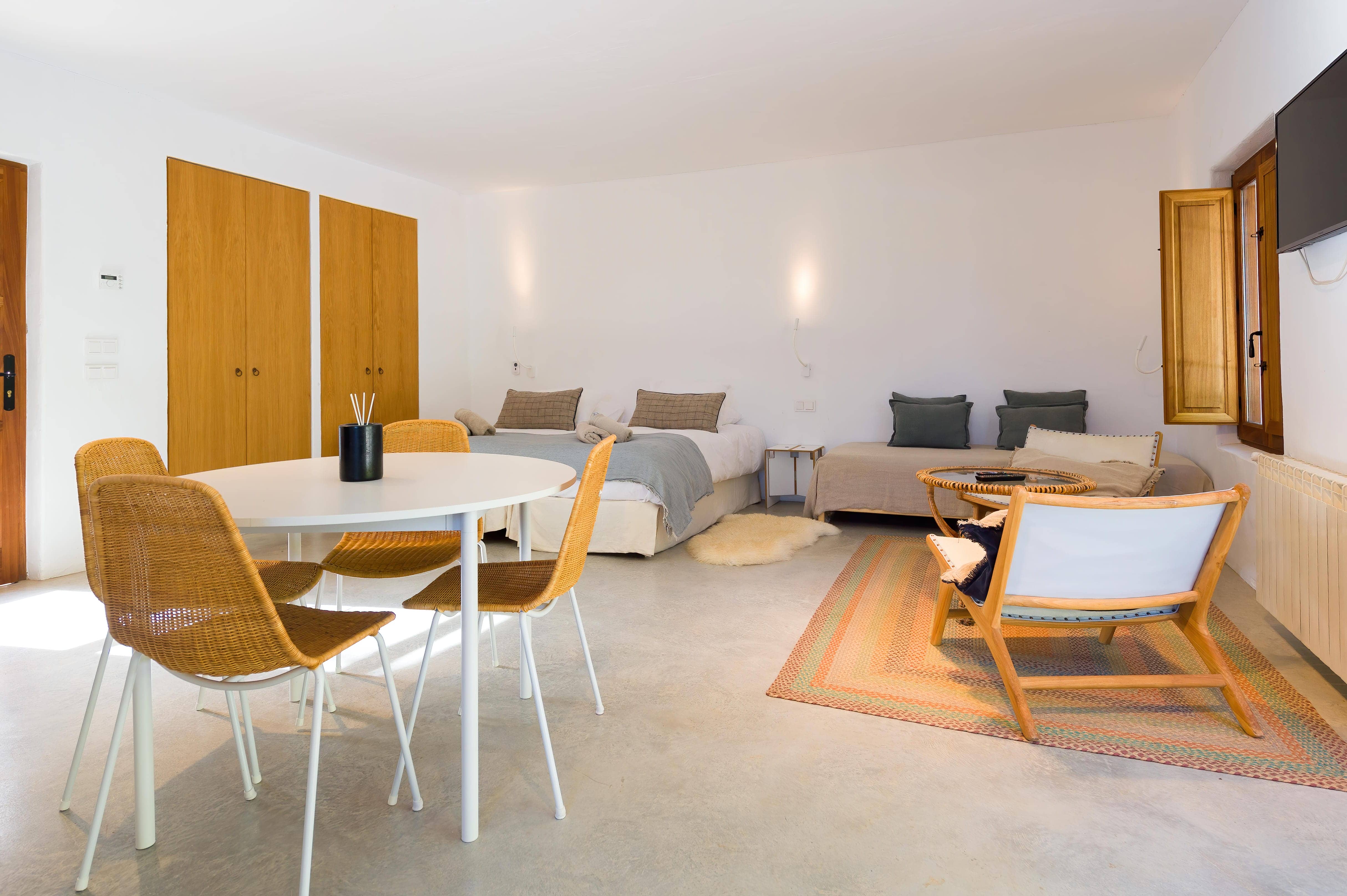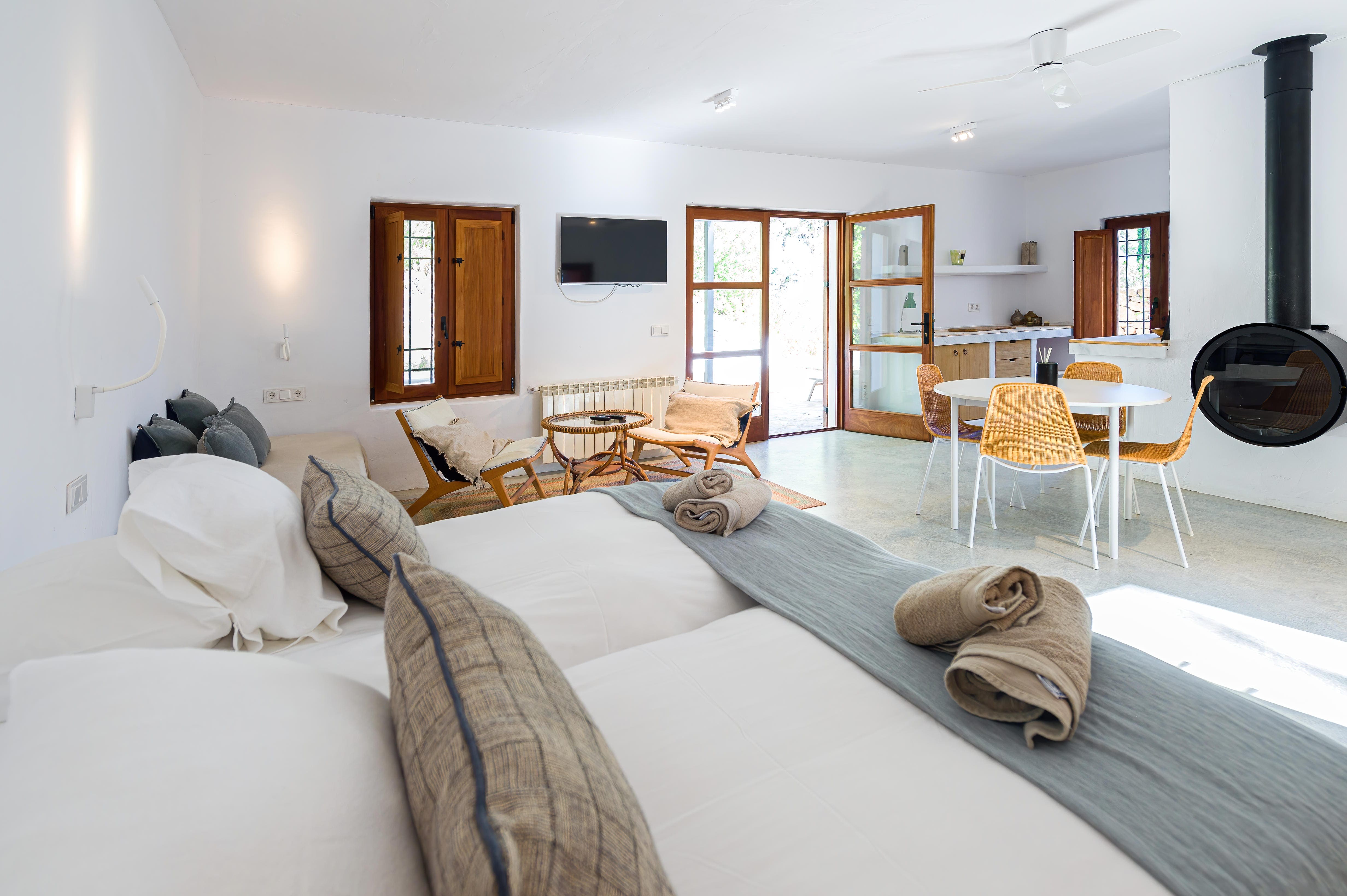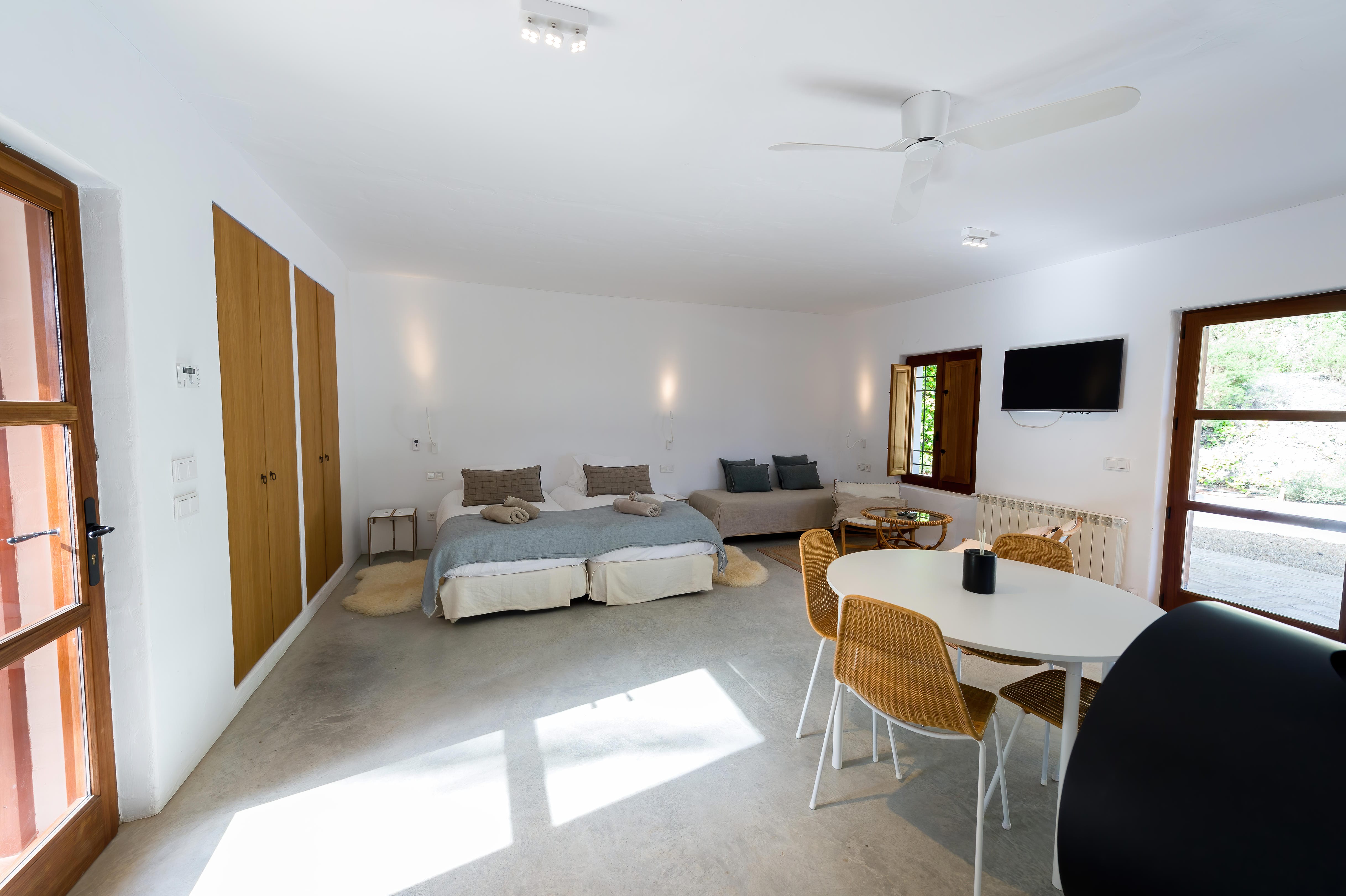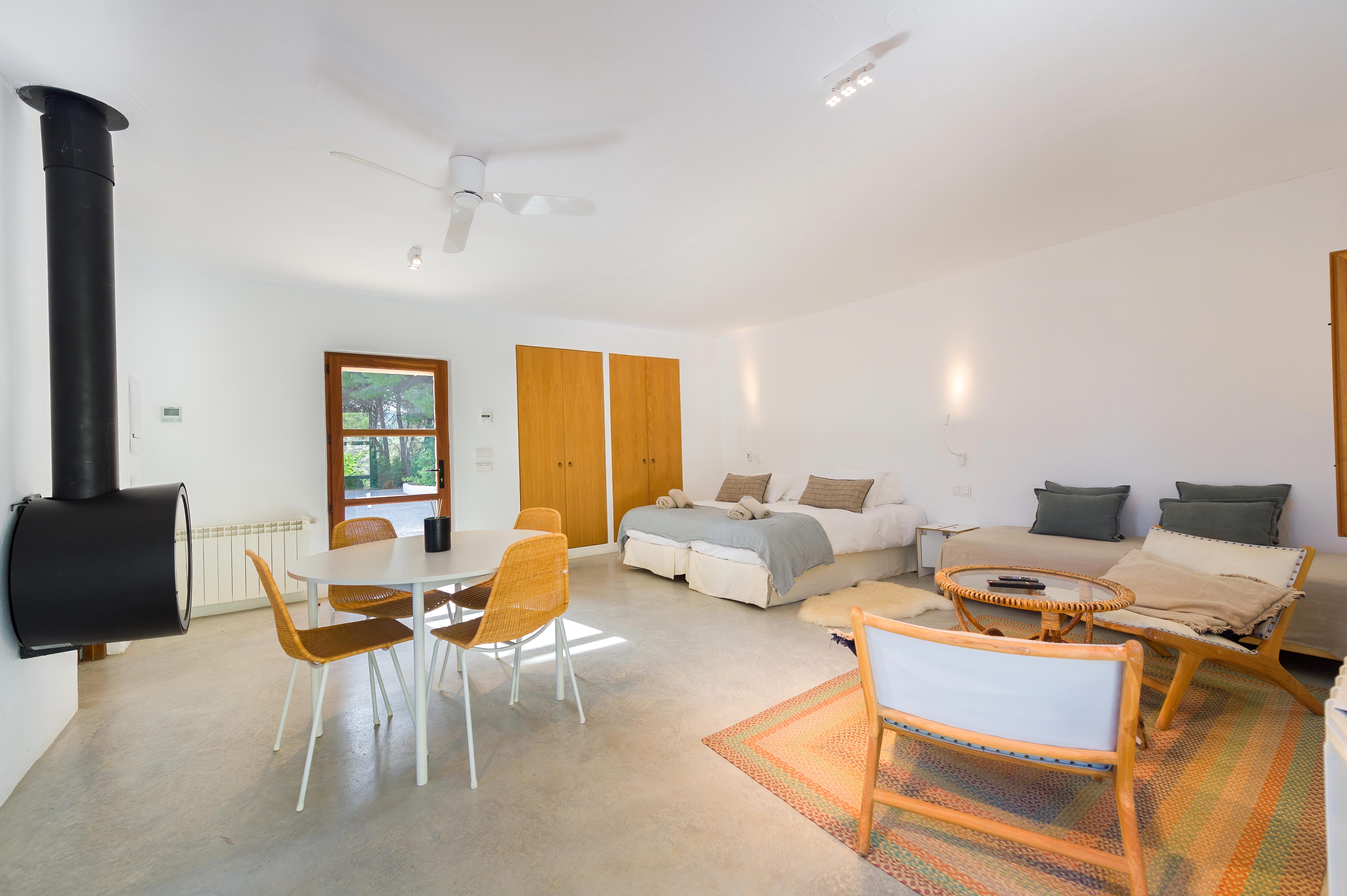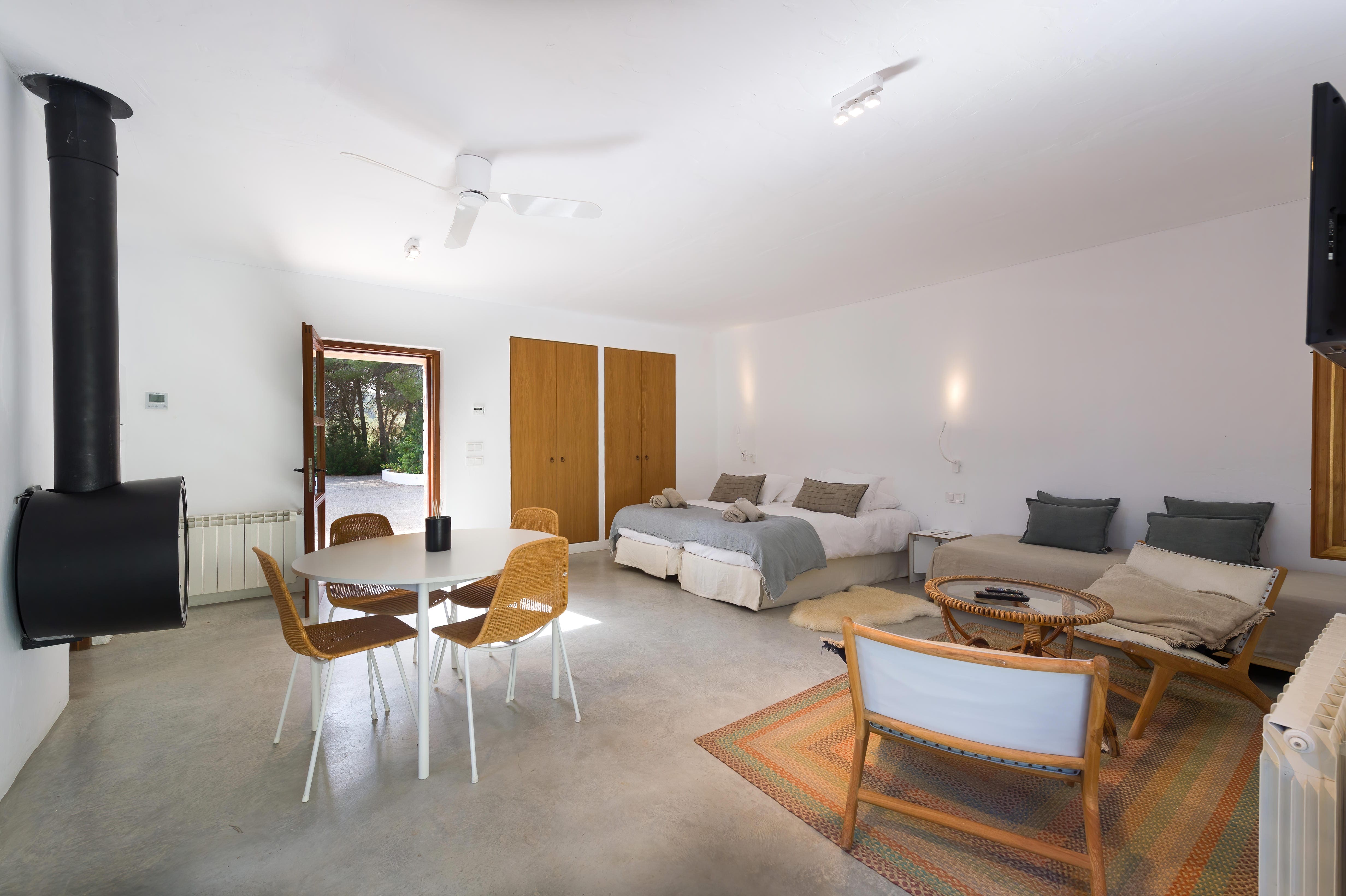 This beautiful modern rustic finca, built in 2018, offers a perfect blend of contemporary comfort and timeless Ibizan charm. Set on one hectare of private land in Ibiza’s serene northern countryside, it enjoys sweeping sea views and is close to Santa Eulalia, San Carlos, and the beautiful beaches of Cala Nova, Aguas Blancas, and Cala Leña.