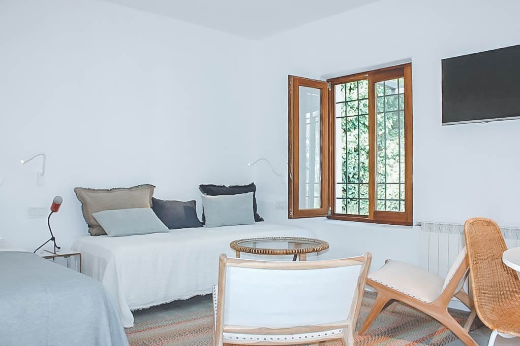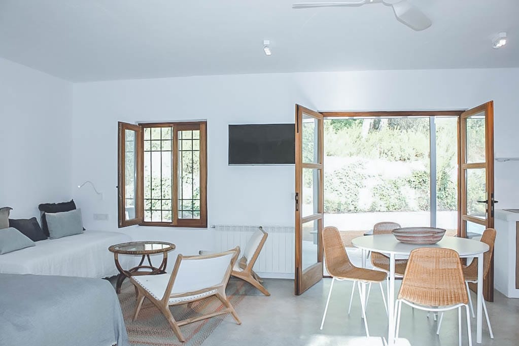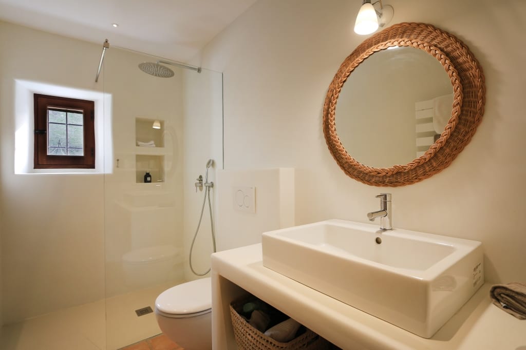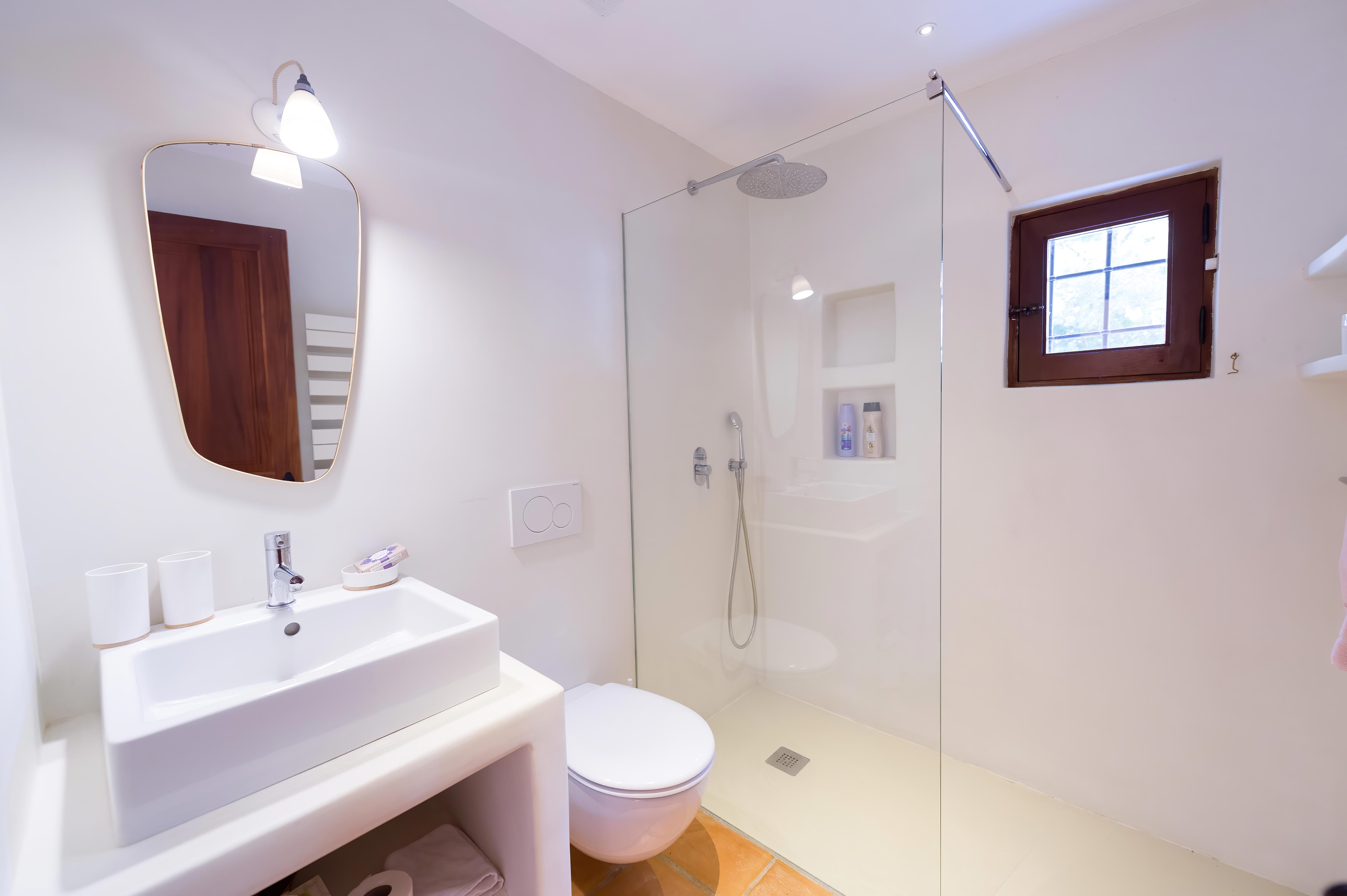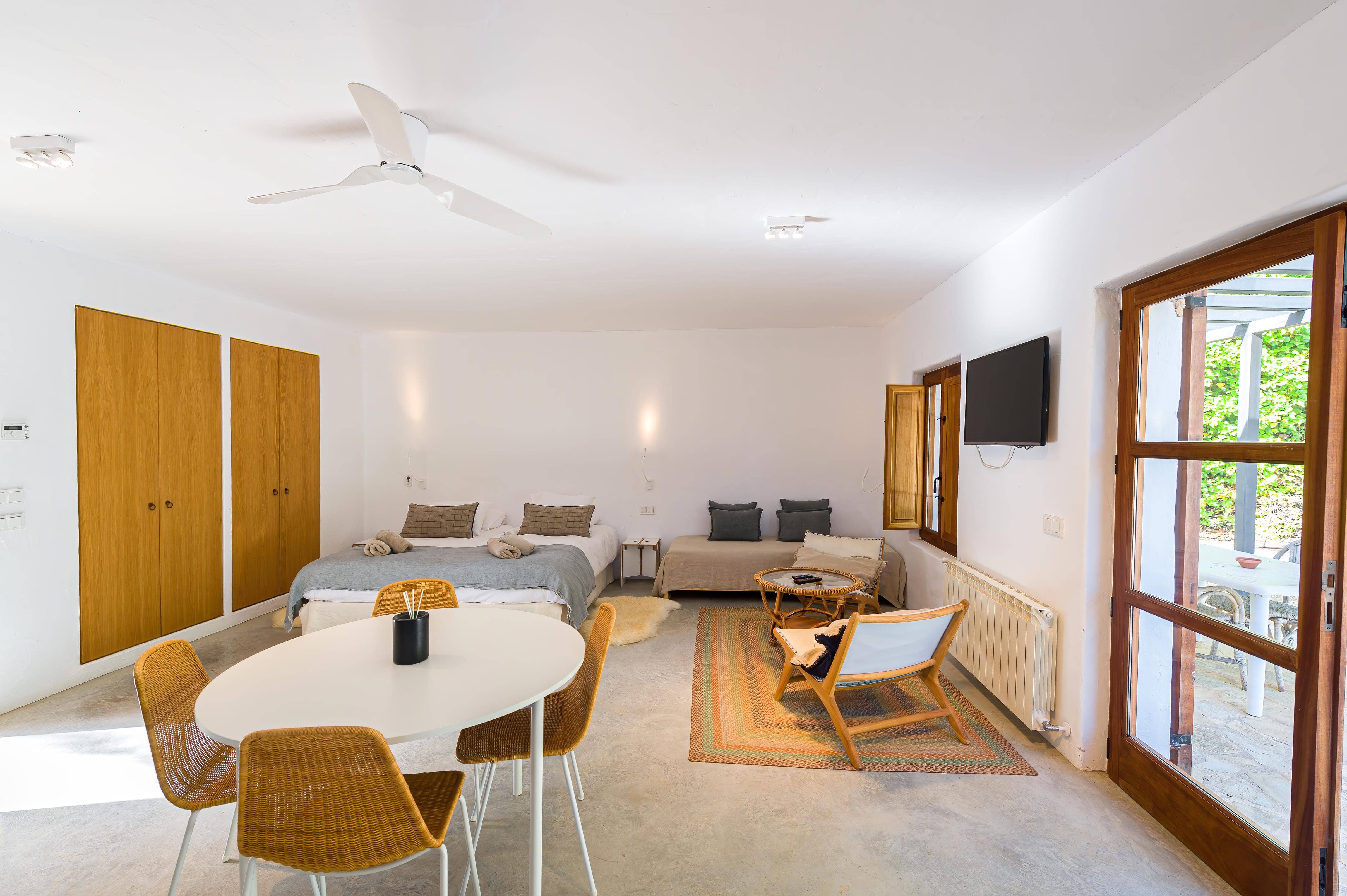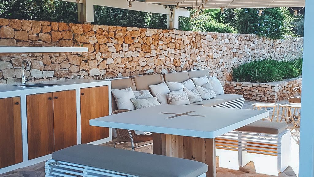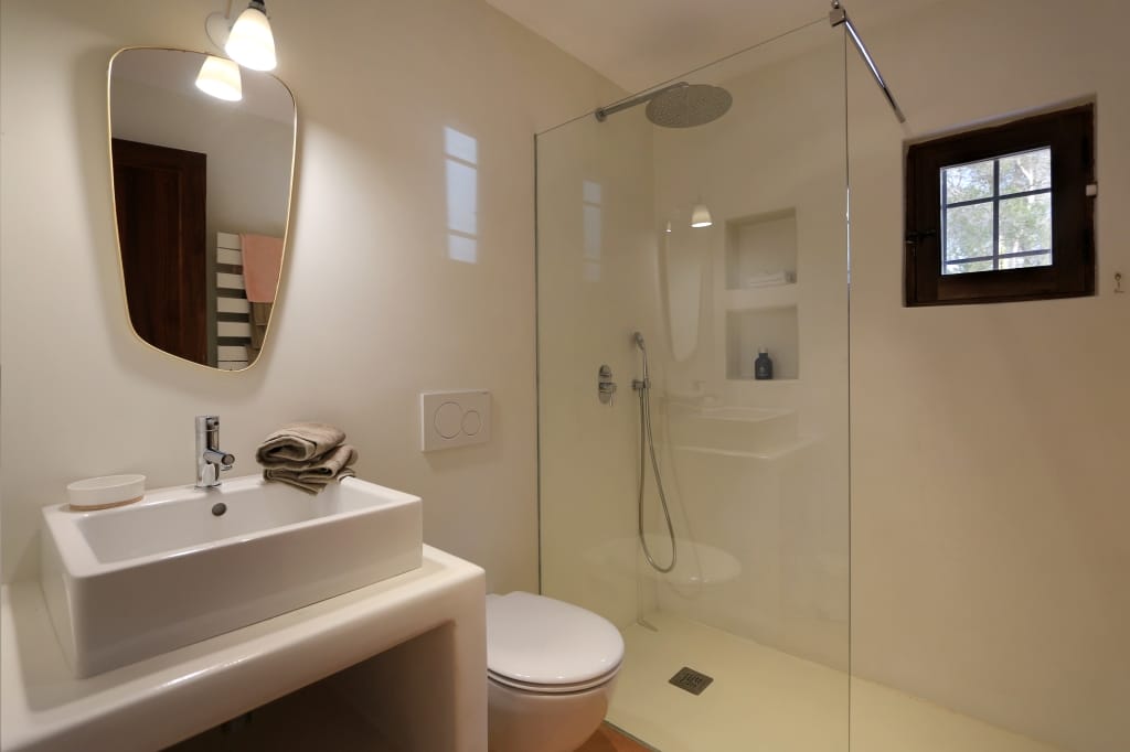 This beautiful modern rustic finca, built in 2018, offers a perfect blend of contemporary comfort and timeless Ibizan charm. Set on one hectare of private land in Ibiza’s serene northern countryside, it enjoys sweeping sea views and is close to Santa Eulalia, San Carlos, and the beautiful beaches of Cala Nova, Aguas Blancas, and Cala Leña.
