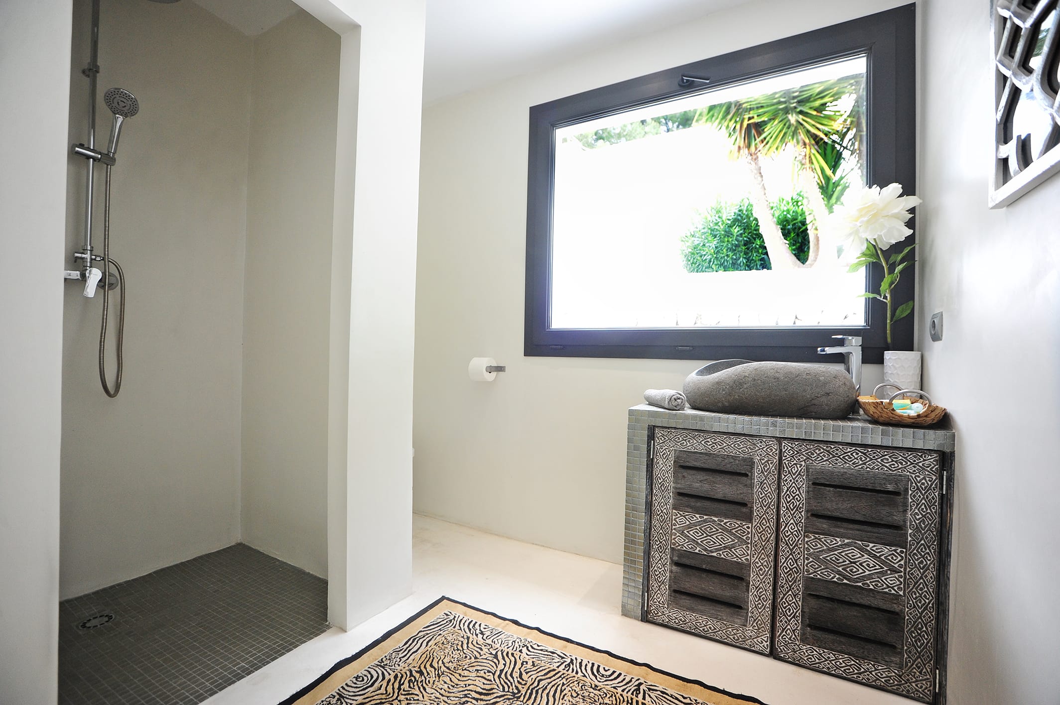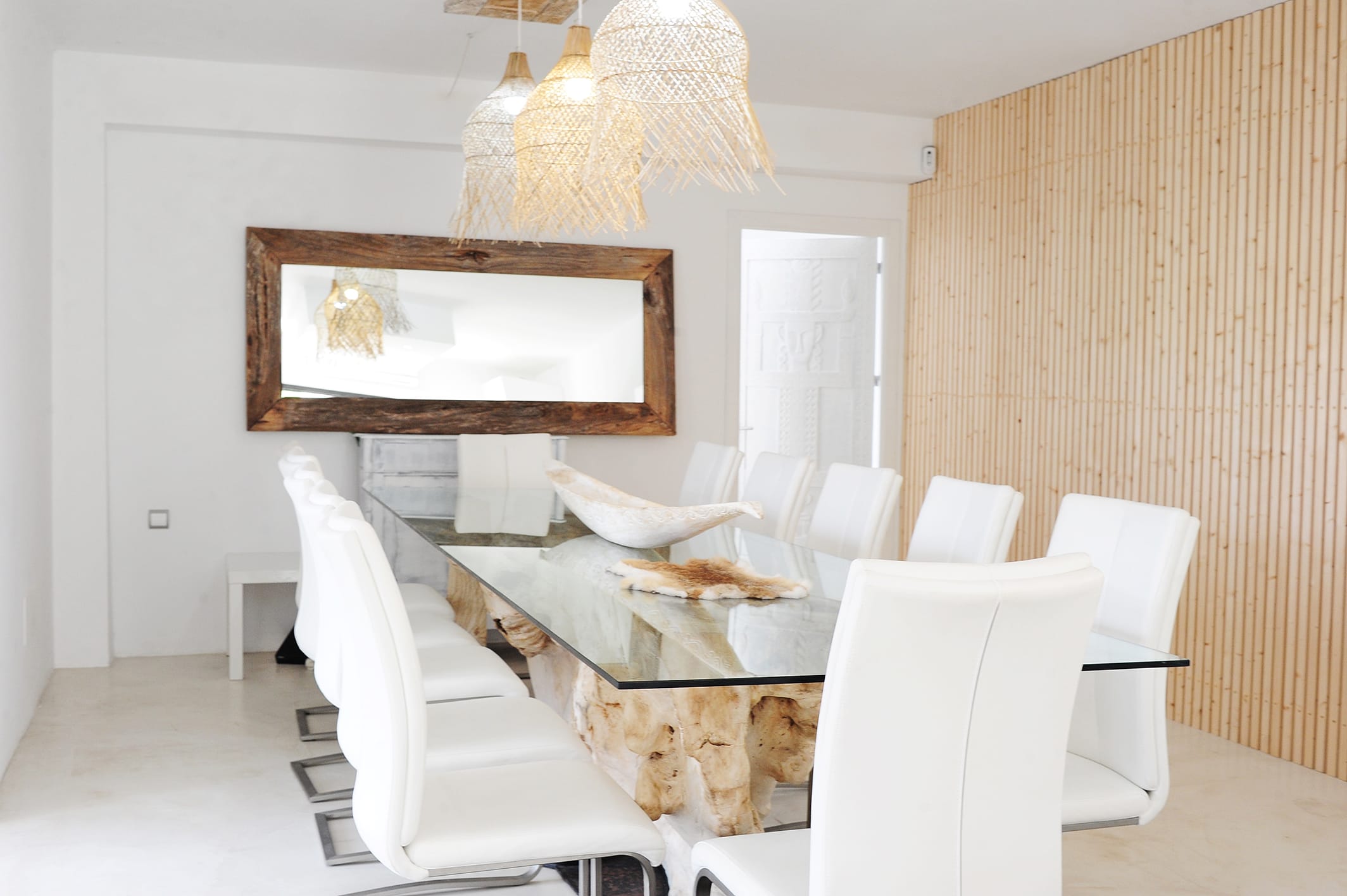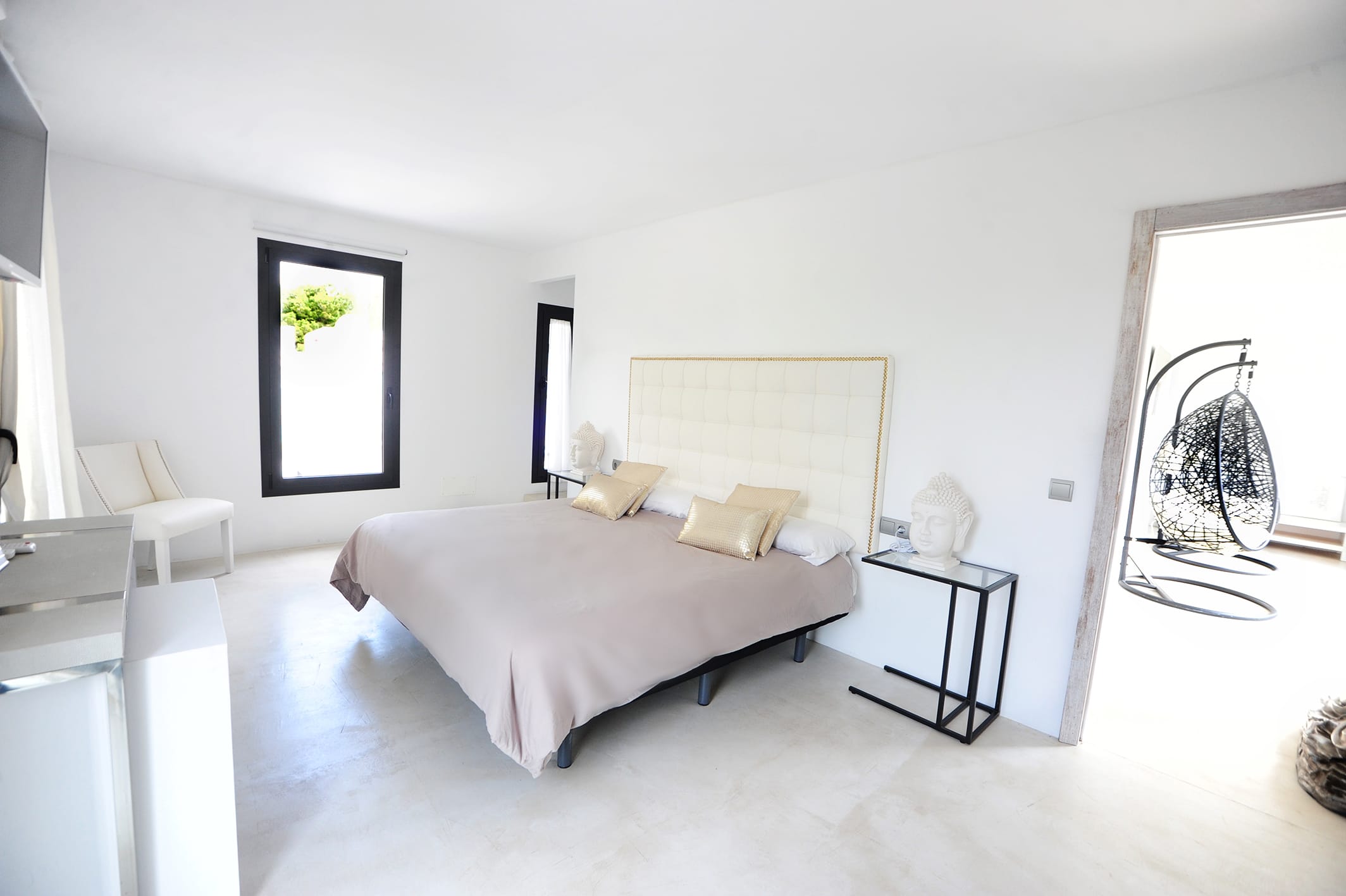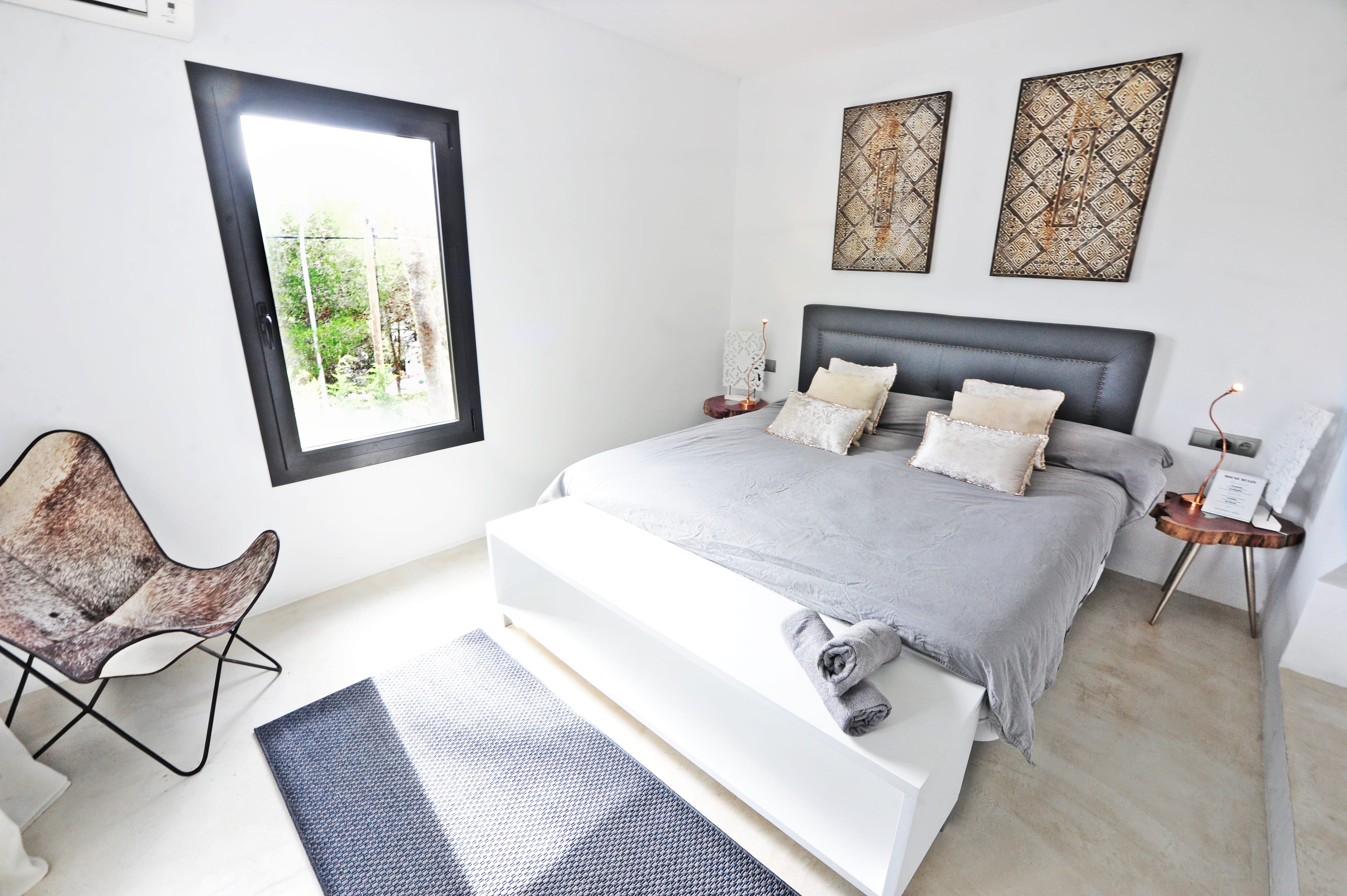 This elegant six-bedroom villa combines stylish design with a serene atmosphere, blending influences from Ibiza, Africa, and Bali to create a unique and luxurious retreat. Each bedroom features a double bed, en-suite bathroom, air conditioning, and a TV, comfortably accommodating up to 12 guests.