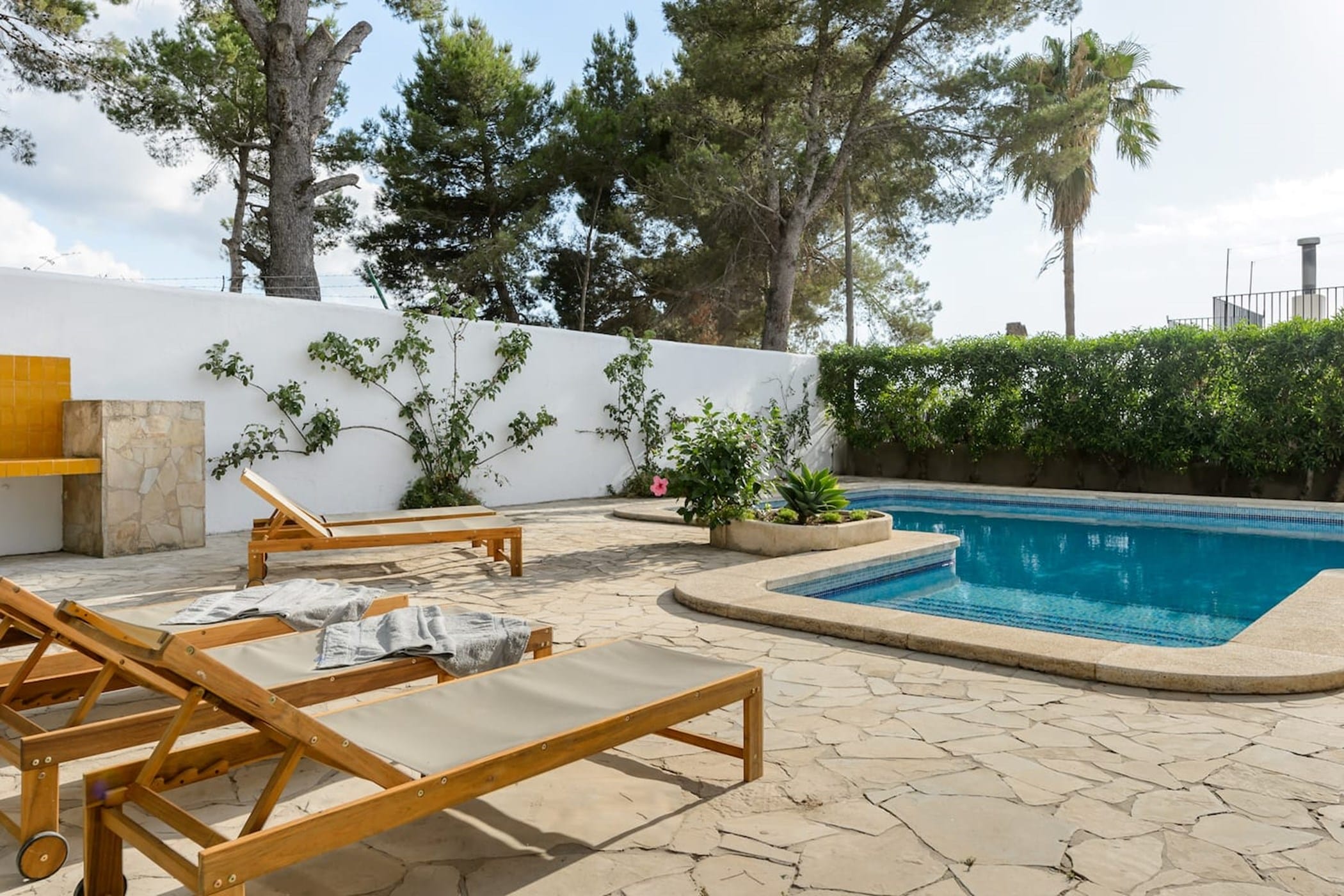 This eco-friendly, carbon-neutral 6-bedroom villa was meticulously renovated in 2022 and offers a perfect blend of modern luxury and sustainability. Powered by solar panels (80% self-sufficient), it is nestled on a hill between San Rafael and San Antonio, providing privacy with easy access to west coast sunset beaches (10-15 min) and charming villages.