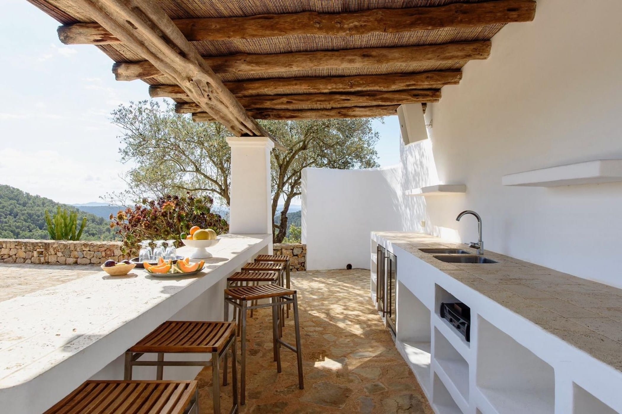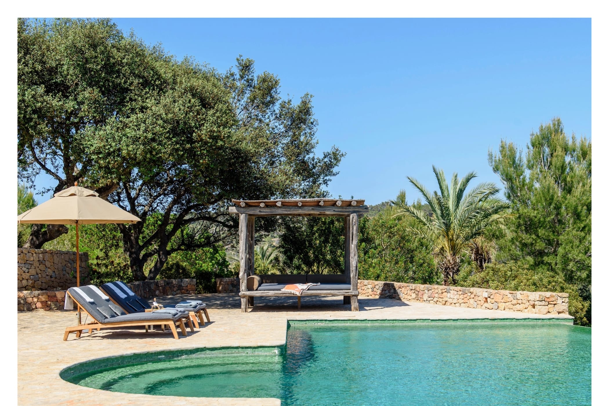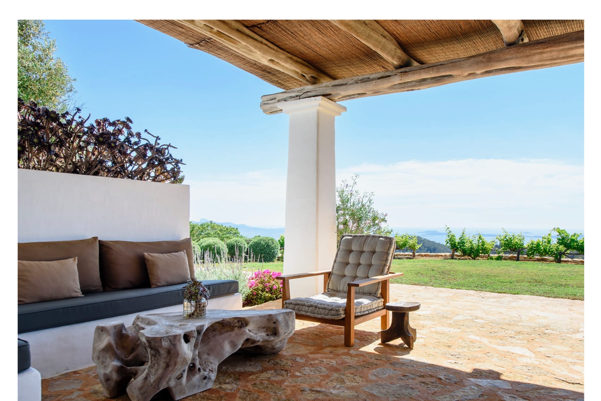 The lush, landscaped gardens provide total seclusion with no neighbours in sight. Additional highlights include a private paddle court and direct access to some of Ibiza’s most picturesque beaches.