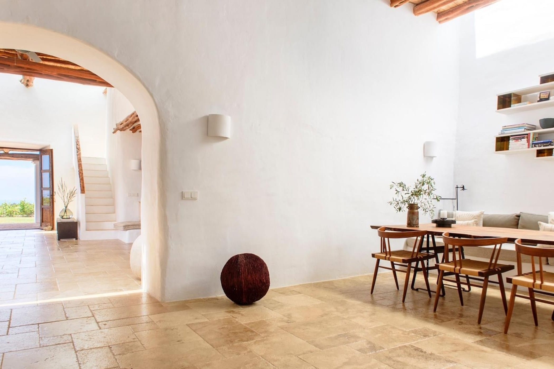 The meticulously renovated estate masterfully blends authentic Ibizan charm with contemporary sophistication. Inside, six spacious en-suite bedrooms each enjoy mesmerising Mediterranean views. The expansive living areas flow seamlessly onto terraces and a stunning infinity pool that appears to merge with the sea.