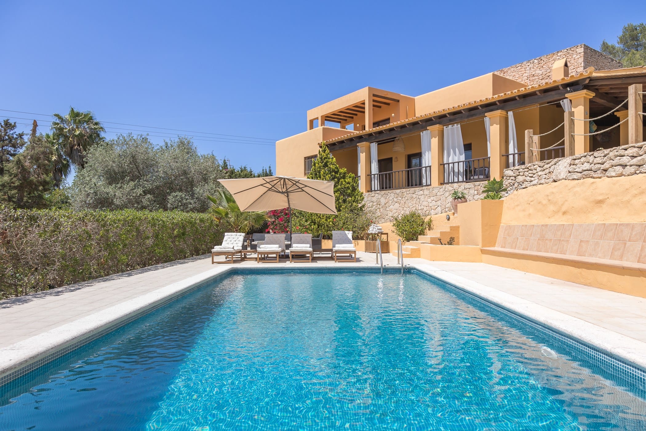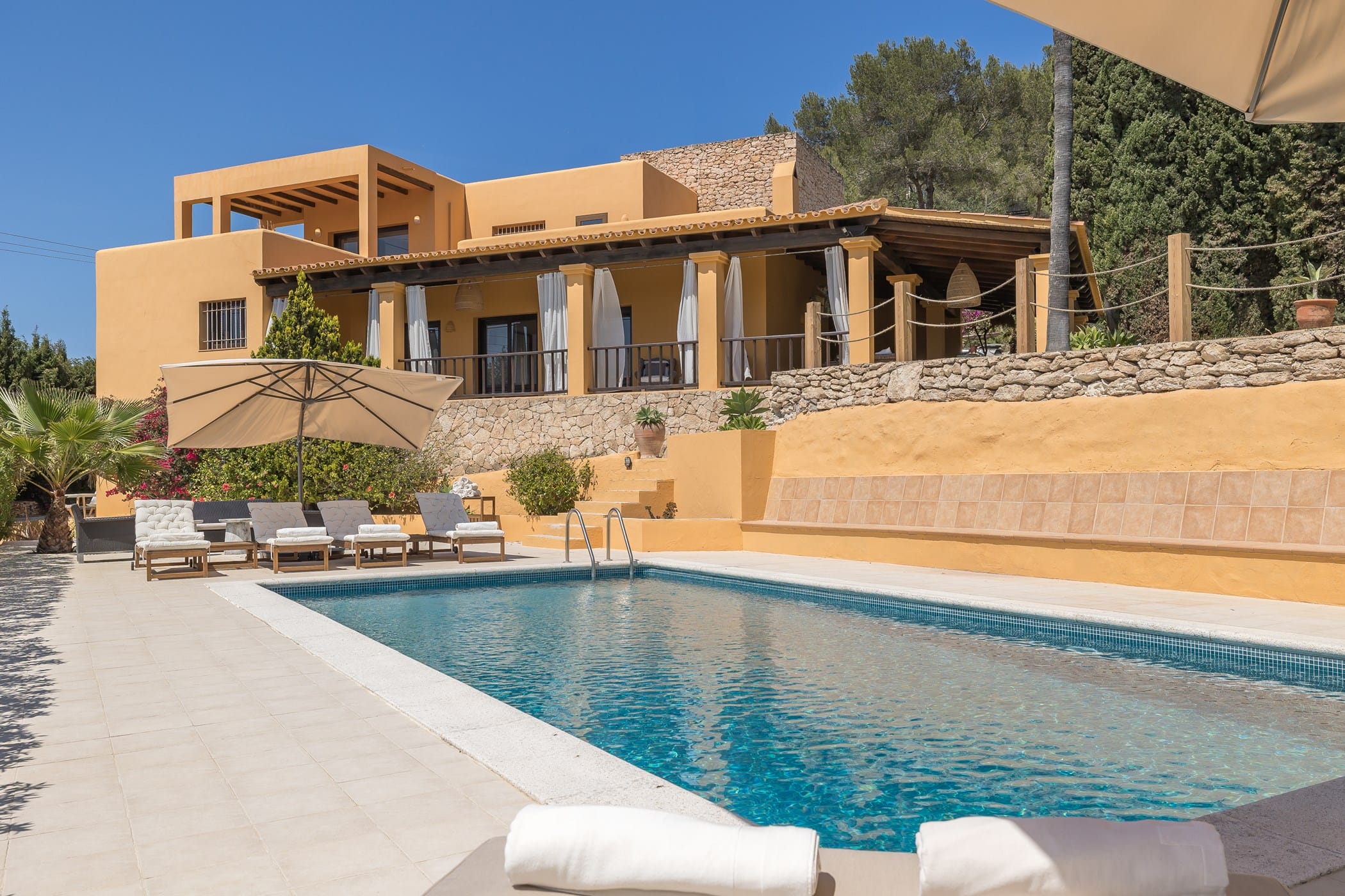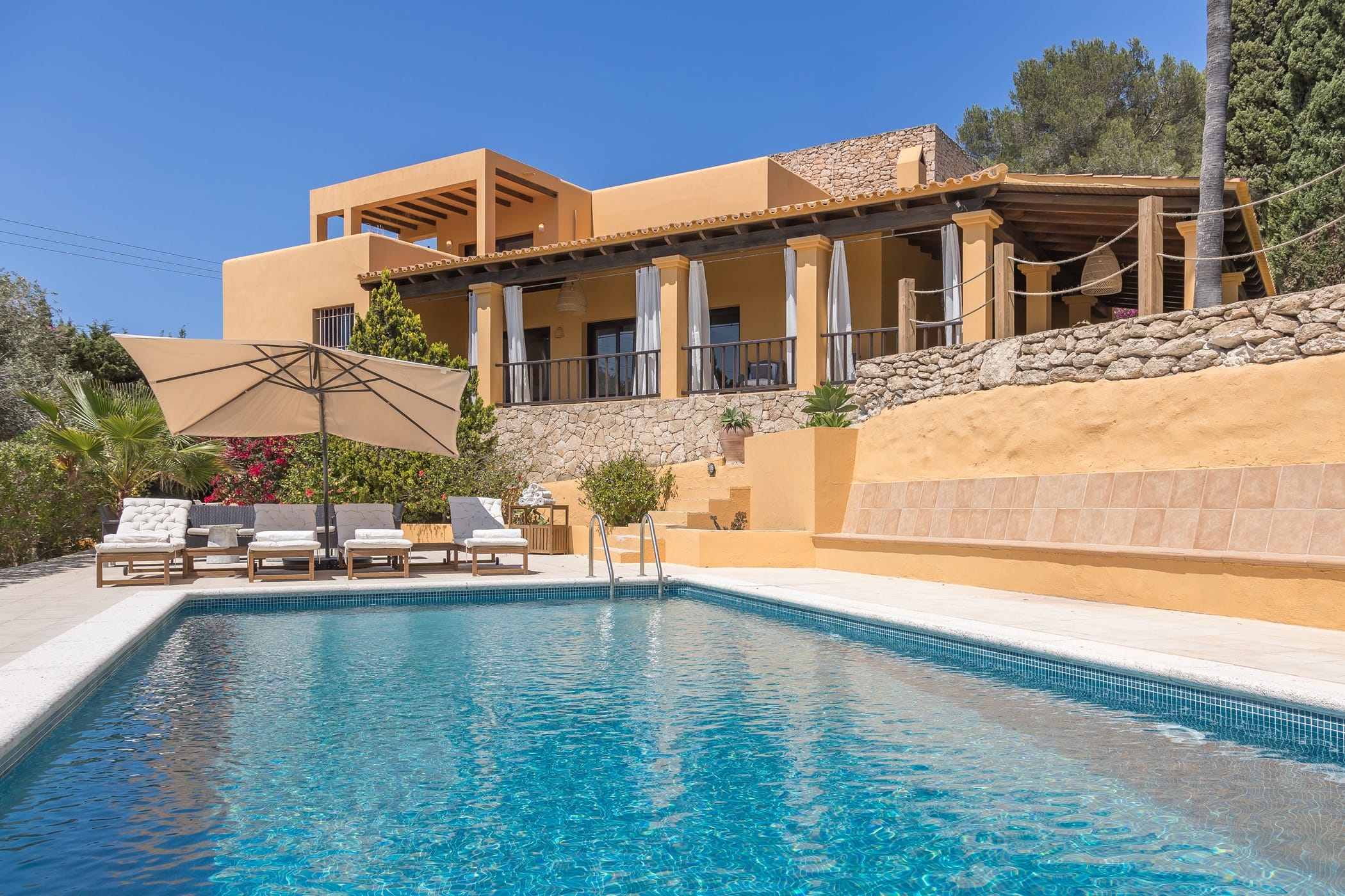 This elegant Ibicenco-style villa is located in the prestigious Can Pep Simó area of Ibiza. It combines traditional charm with modern comfort and offers excellent privacy on a spacious 4,000 m² plot.