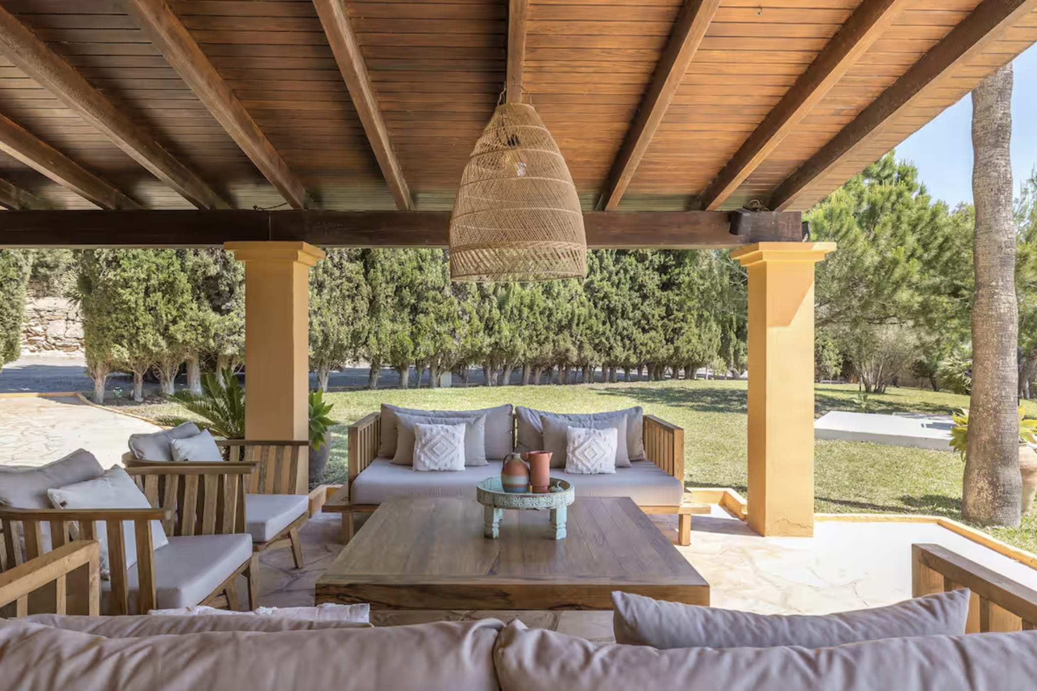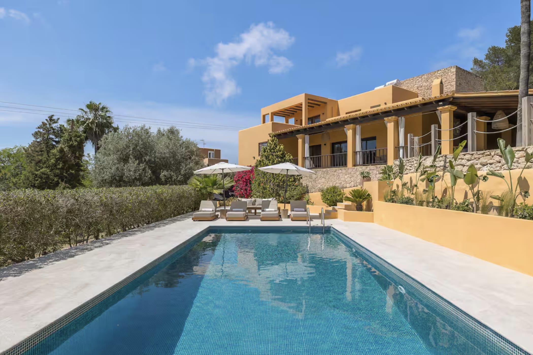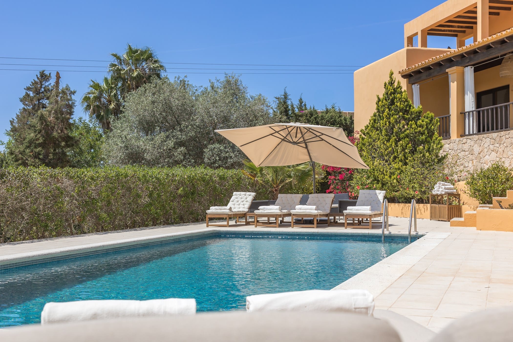 This elegant Ibicenco-style villa is located in the prestigious Can Pep Simó area of Ibiza. It combines traditional charm with modern comfort and offers excellent privacy on a spacious 4,000 m² plot.
