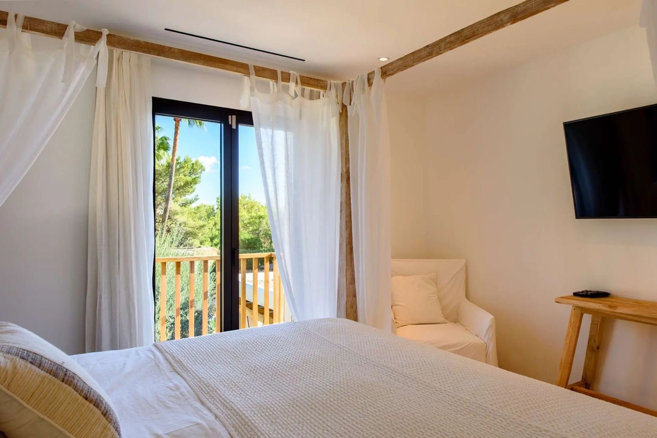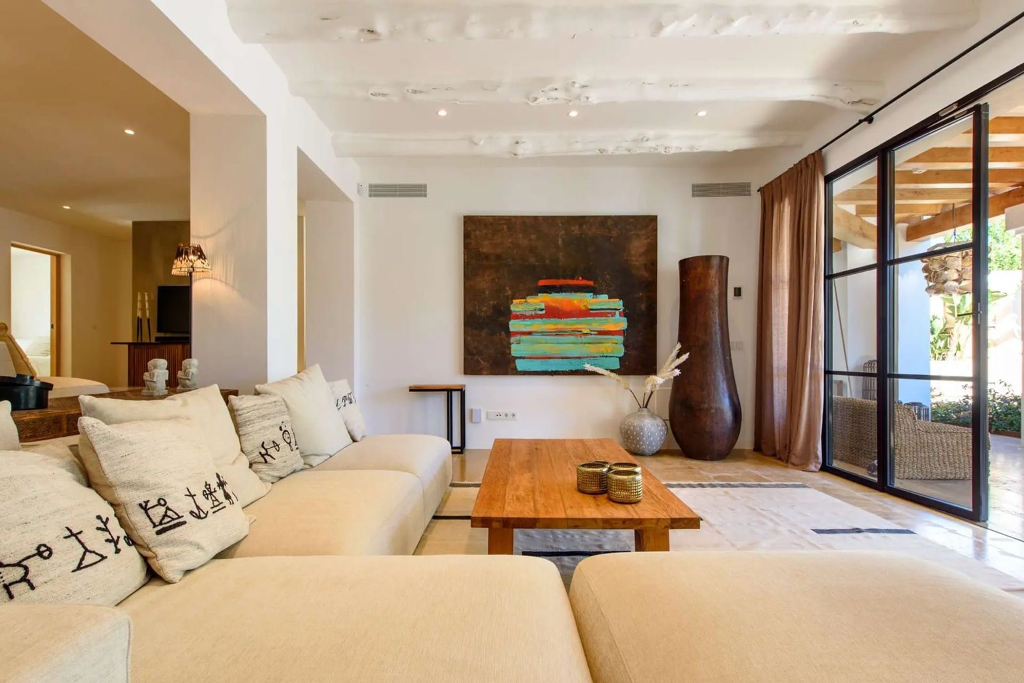 This beautifully renovated Blakstad-style finca offers refined, high-end living with warmth and authentic Ibizan character. Set on a private 3,000 m² landscaped garden with palm trees and valley views, it provides both seclusion and easy access to Sant Josep, Cala Bassa, and Cala Tarida.