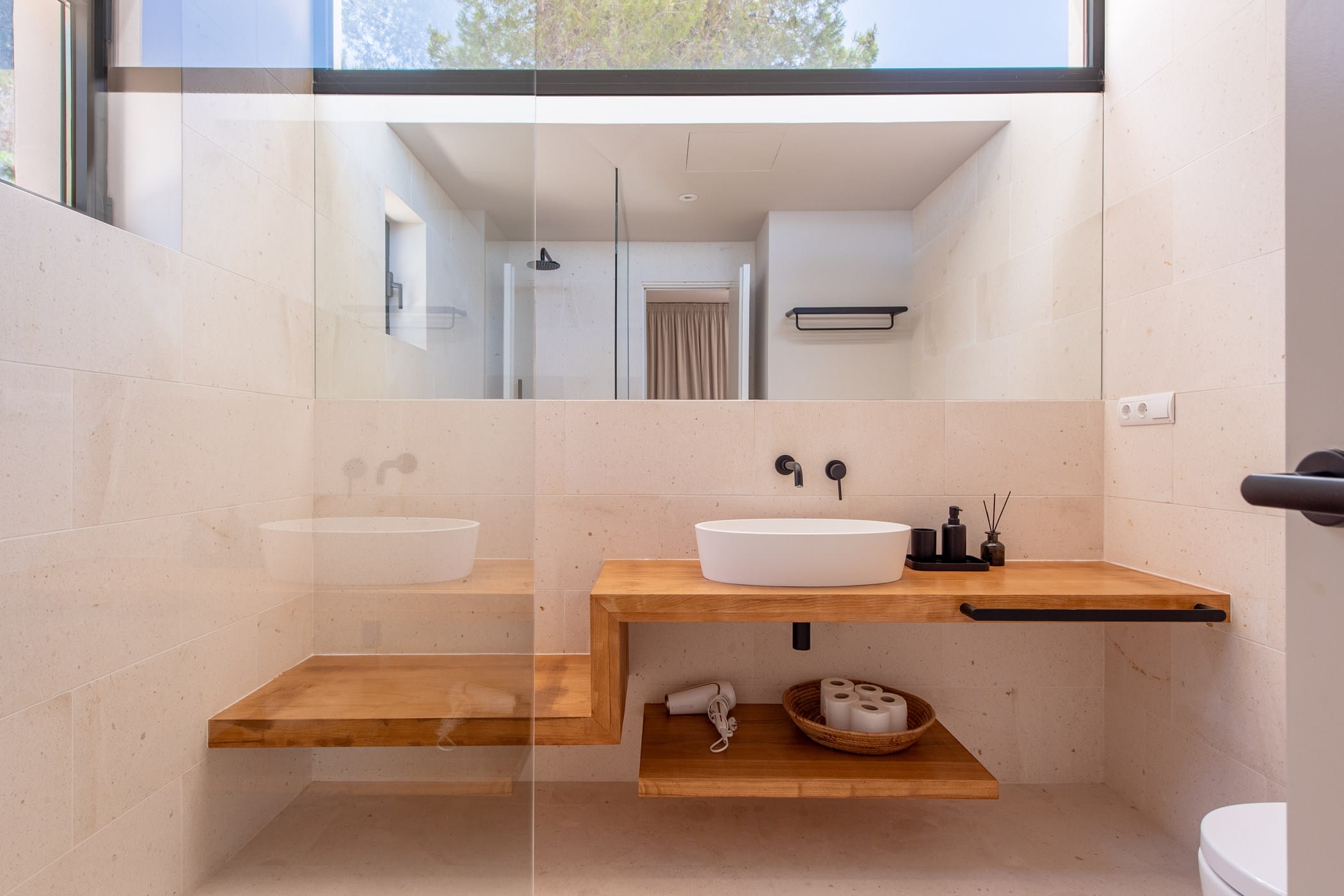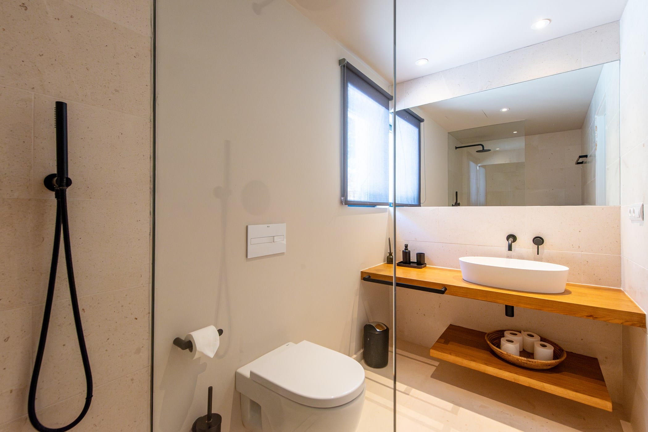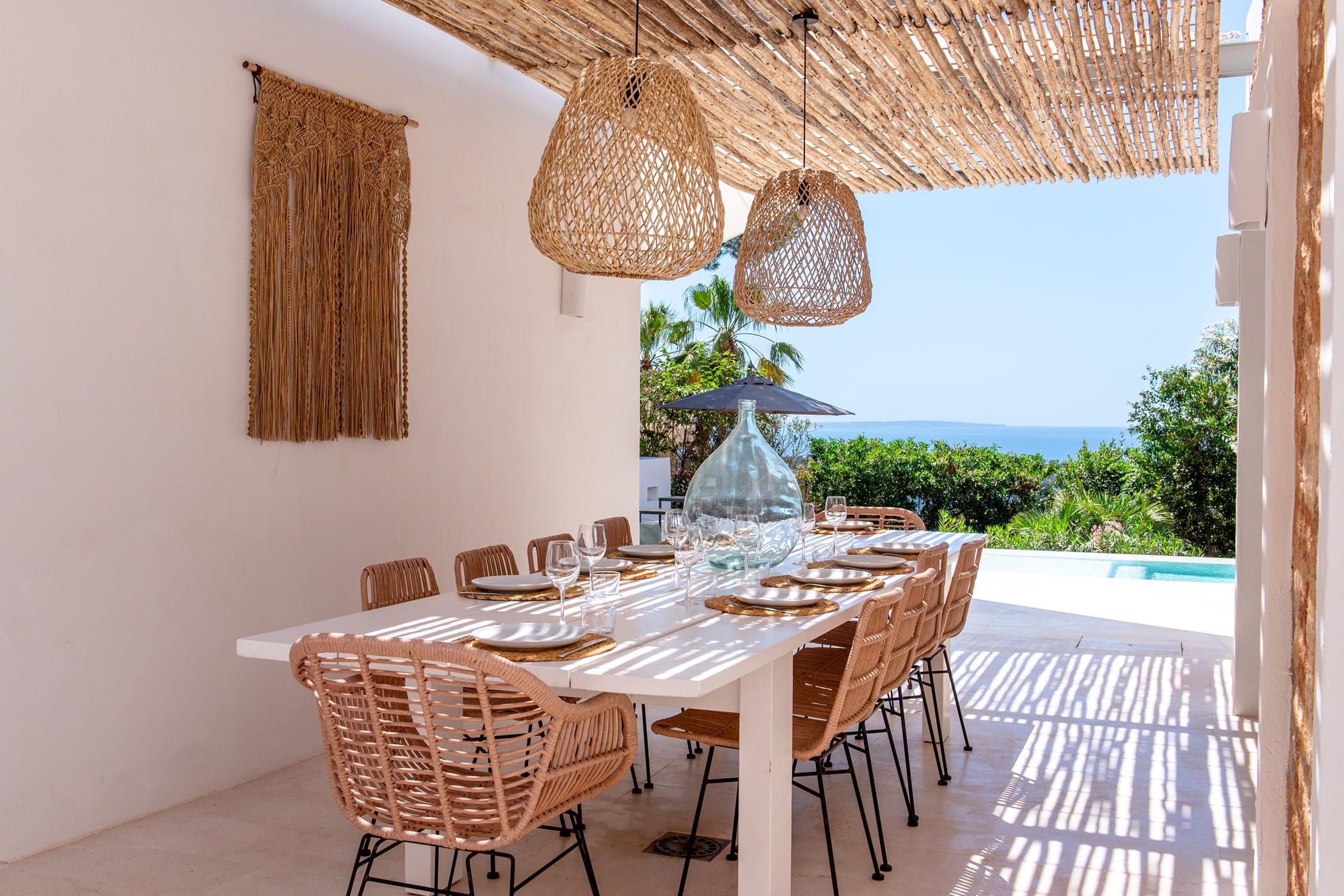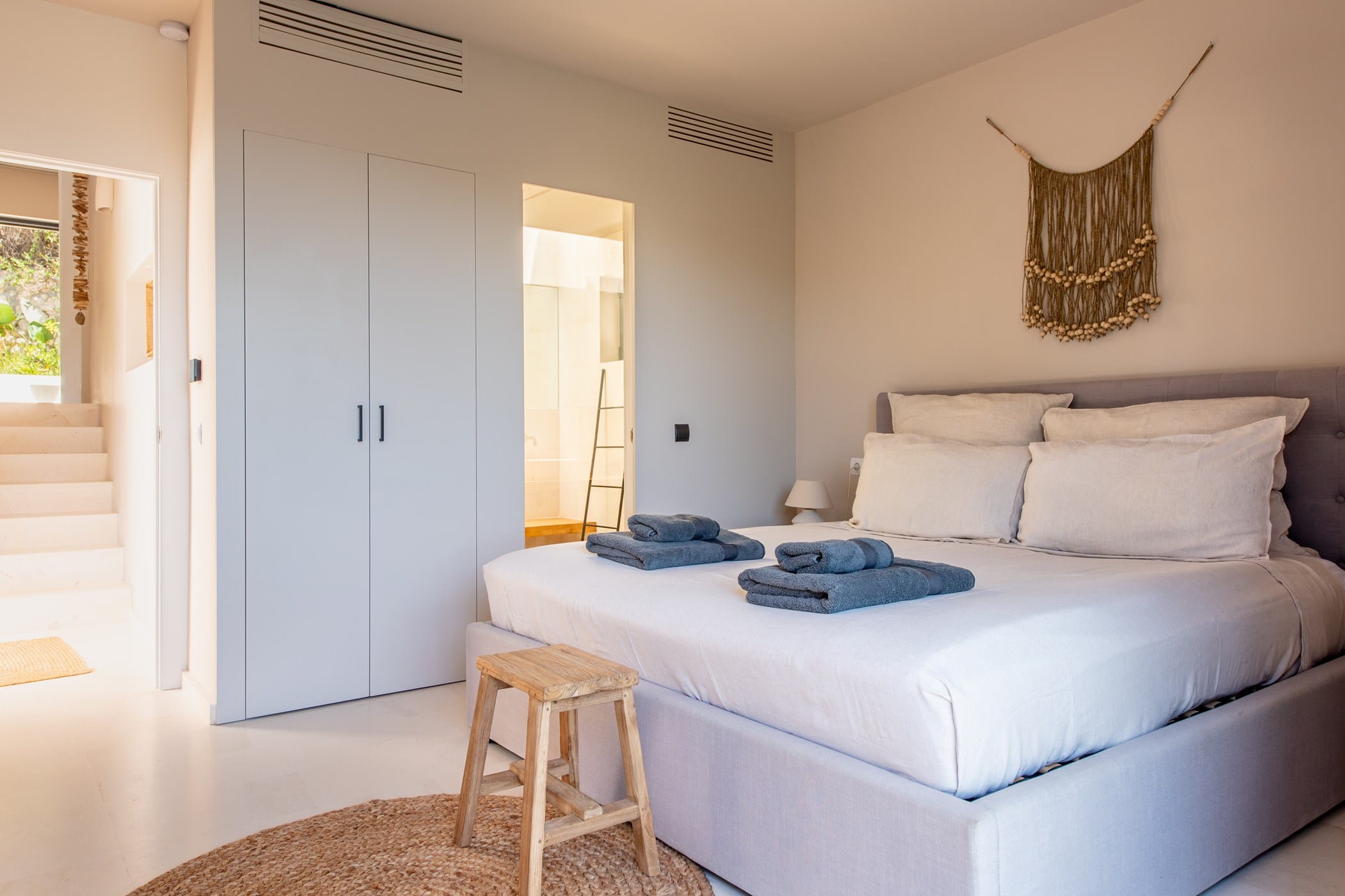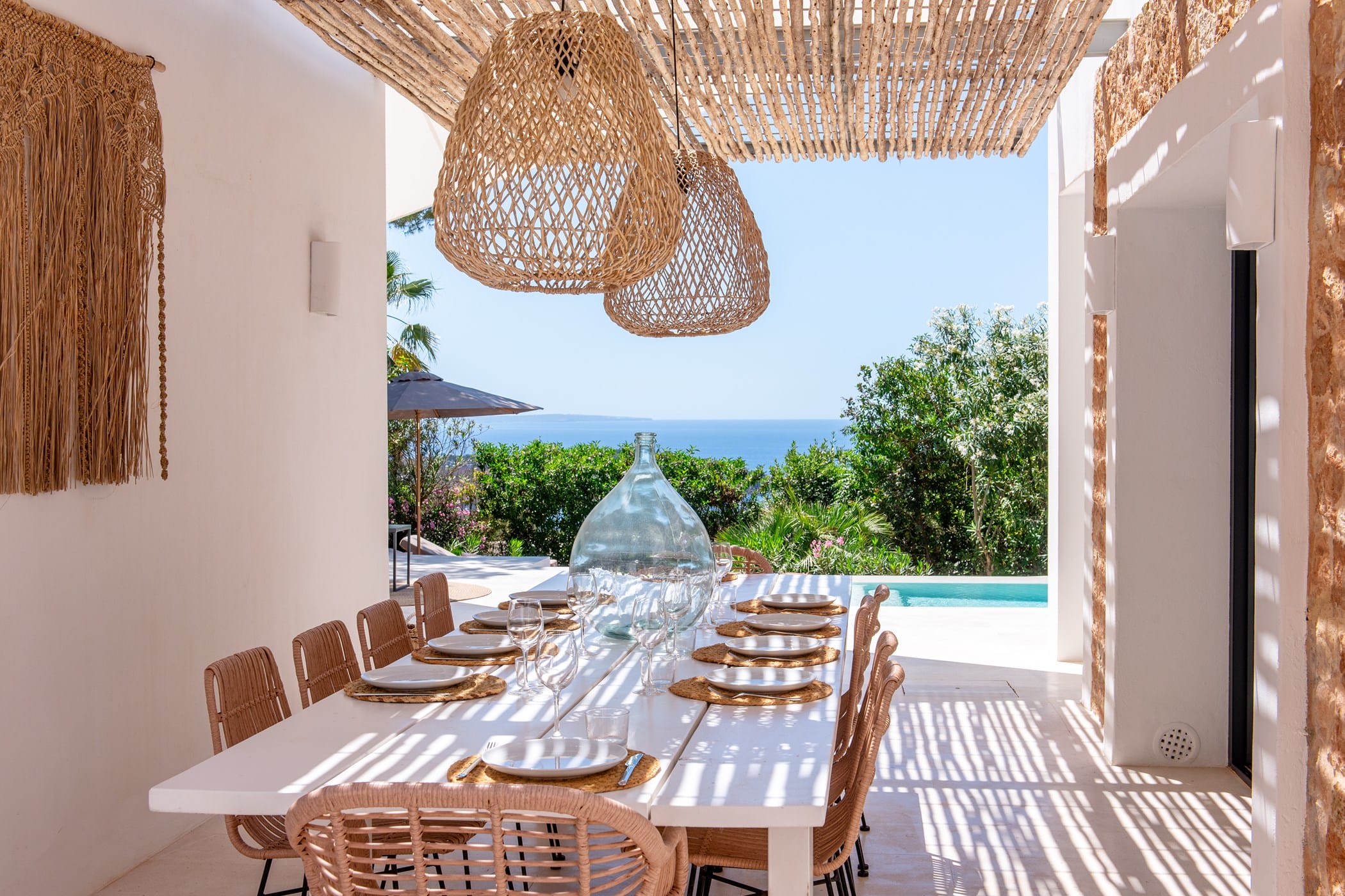 The upper level hosts the main house with bright, open-plan living and dining areas, a fully equipped modern kitchen, and well-appointed bedrooms, including a master suite with beautiful sea views. The lower level features a separate annex with three en-suite bedrooms, offering additional privacy for guests or extended family.