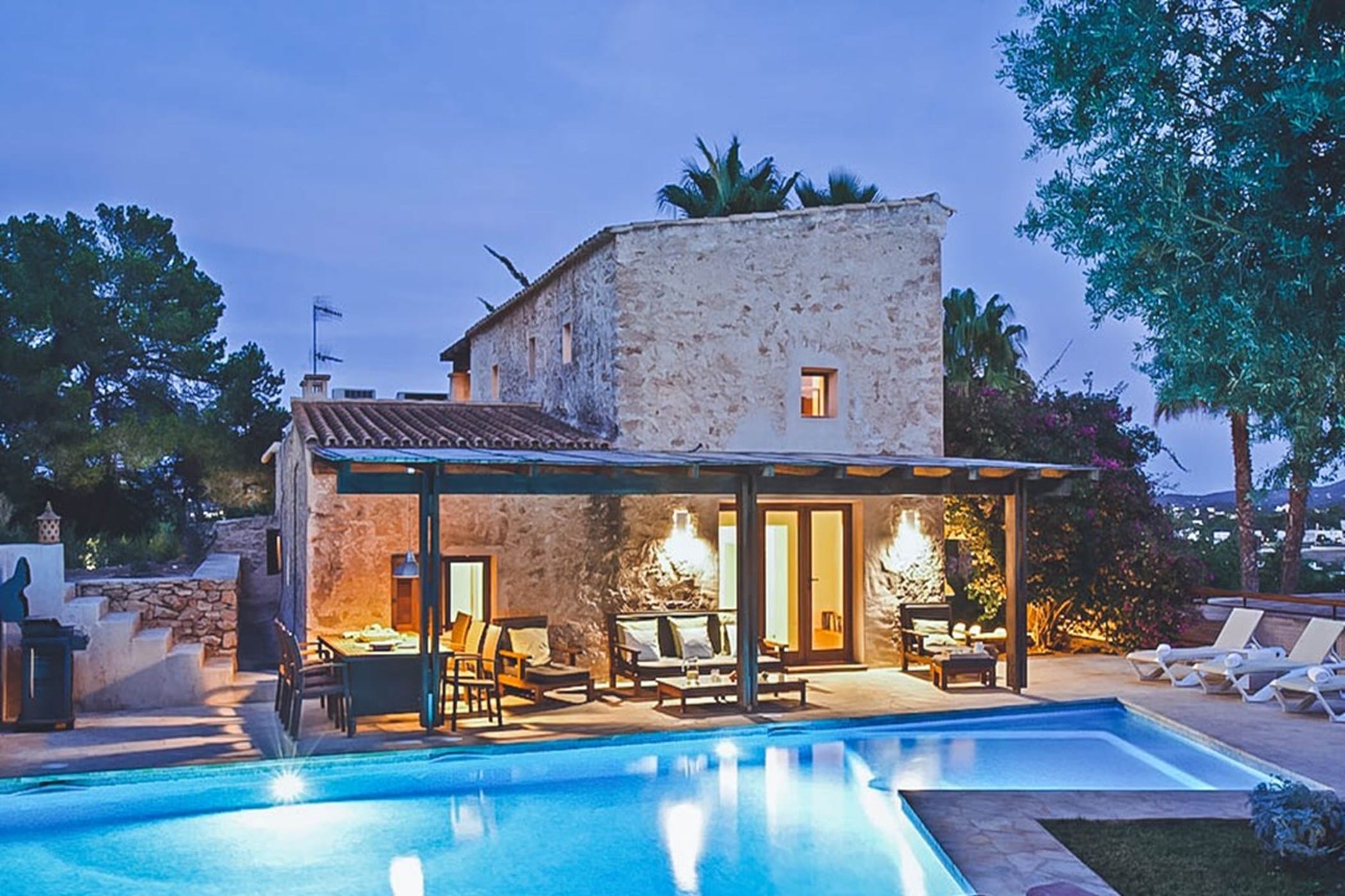 This charming traditional farmhouse is set on a hillside near the village of San Agustín, close to Ibiza’s sought-after west coast and famous sunset beaches. Combining authentic Ibicenco character with modern touches, it offers a peaceful base for exploring nearby coves such as Cala Bassa and Cala Conta.