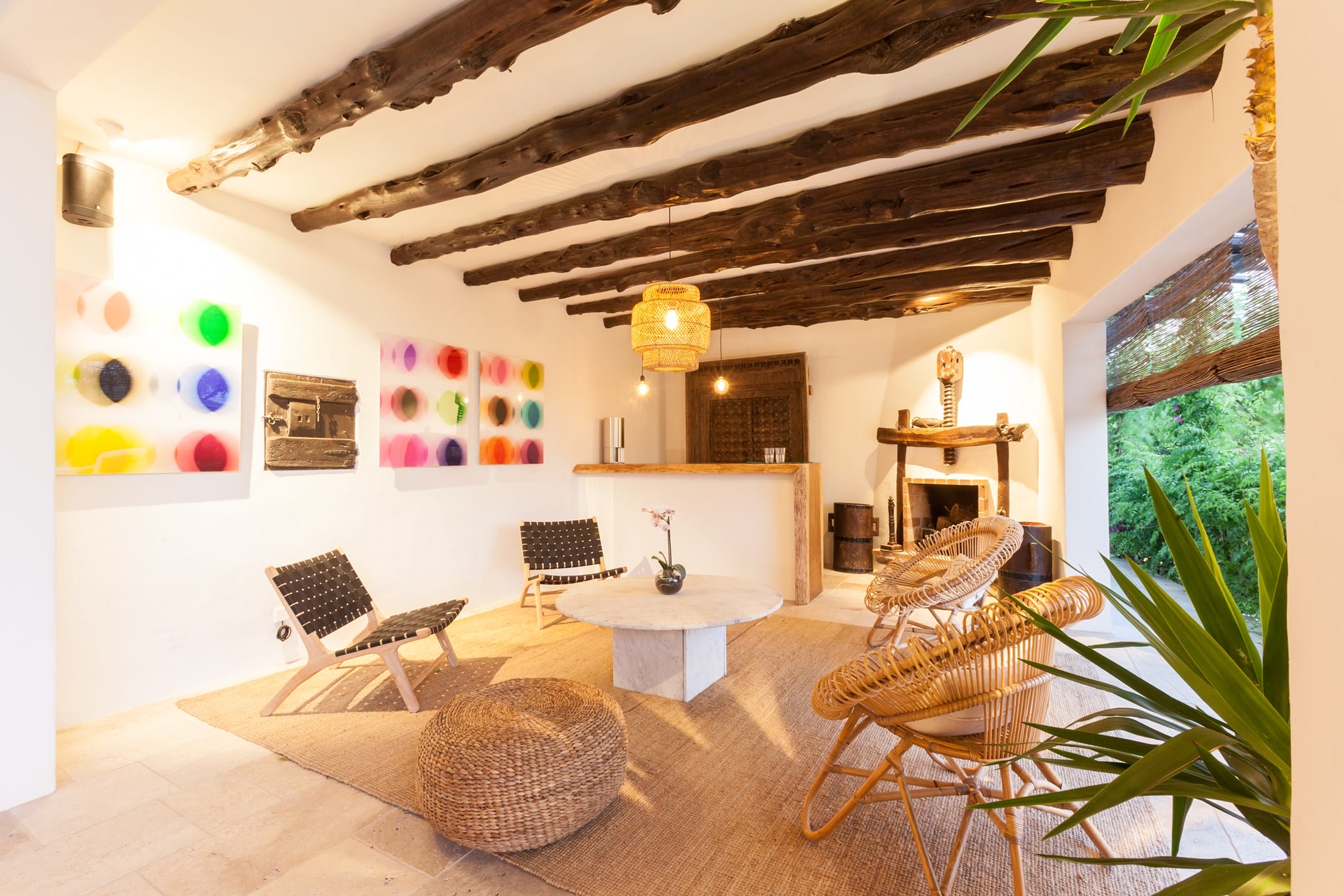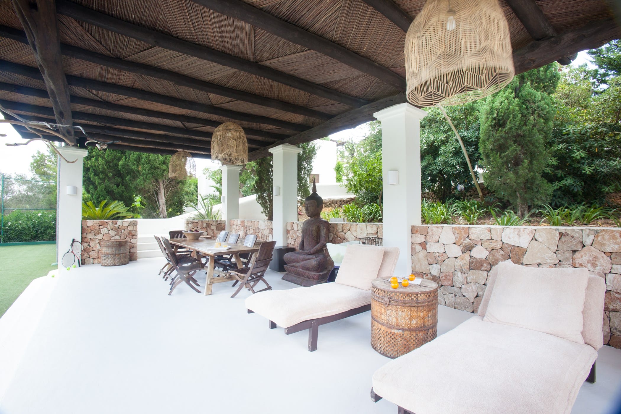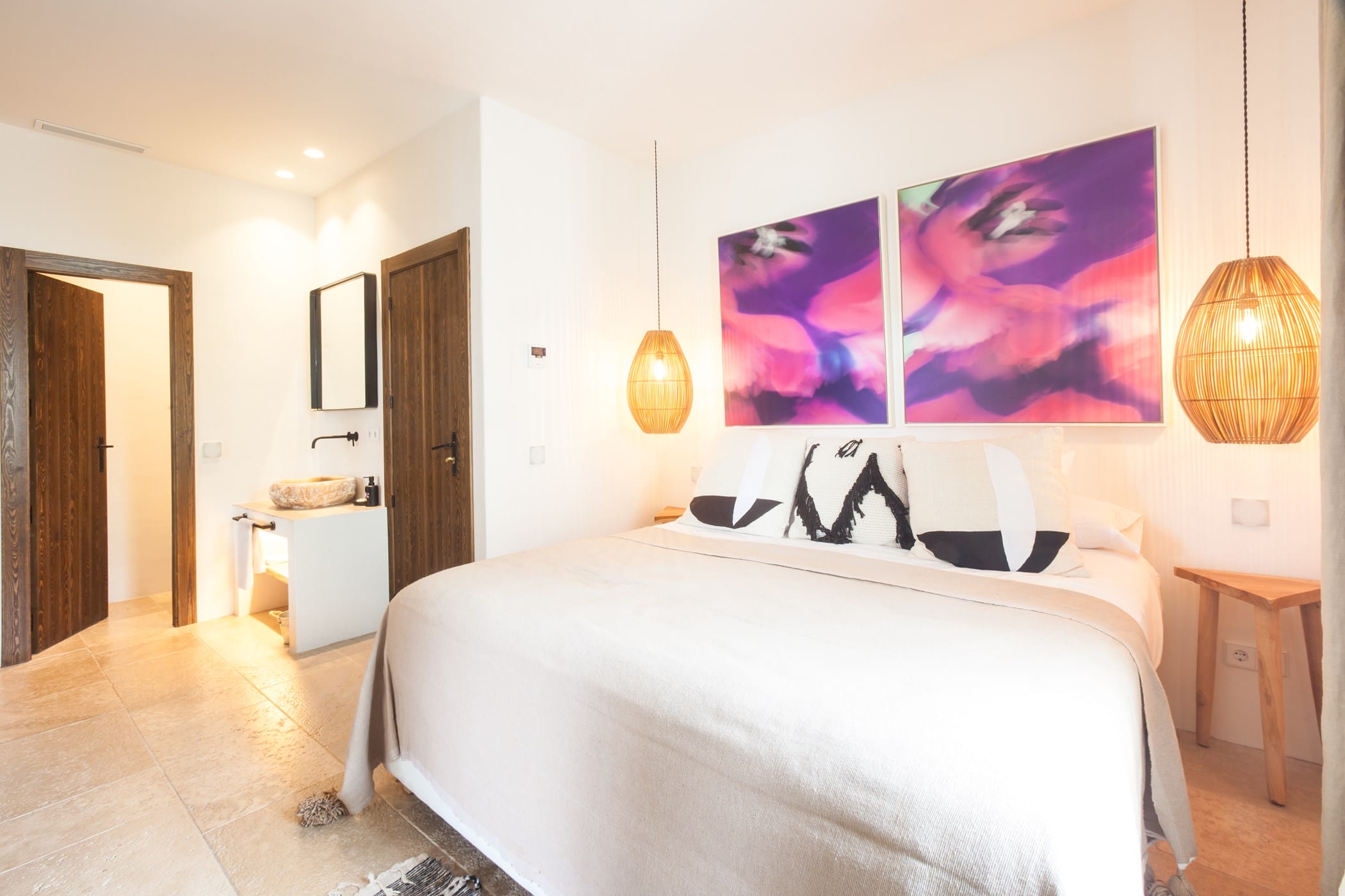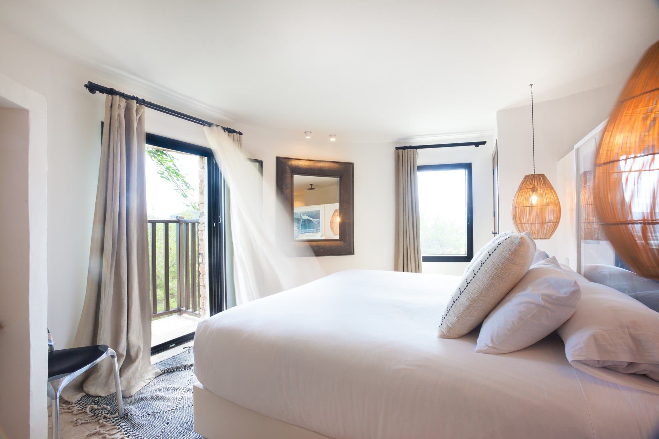 The property offers several en-suite bedrooms distributed between the main house and separate guest accommodations, ensuring privacy and comfort. Outdoors, guests can enjoy a pool, yoga platforms, wellness areas, and landscaped gardens. Combining luxury, space, and top-tier facilities, it provides an exceptional setting for a private and immersive Ibiza retreat.
