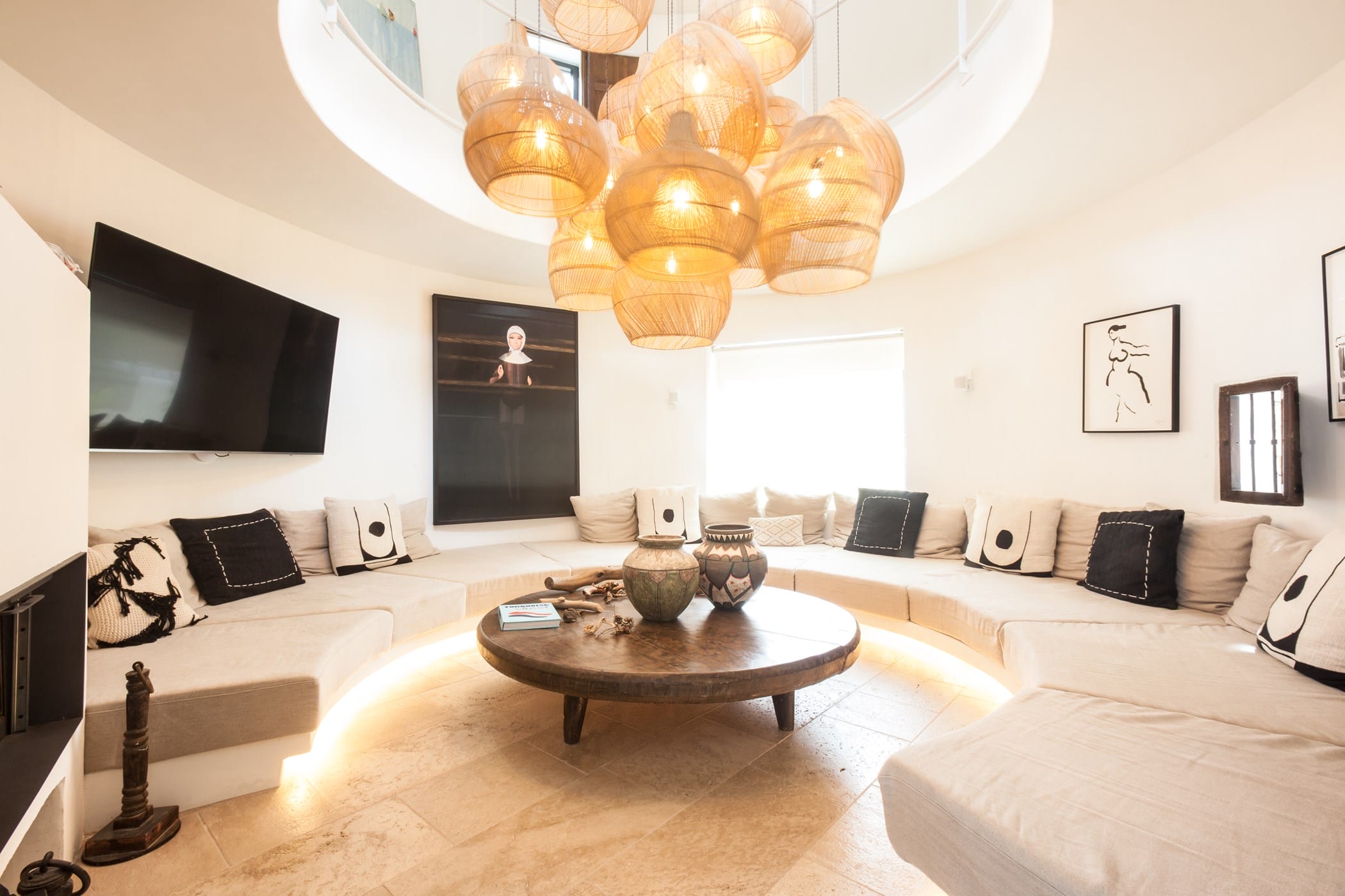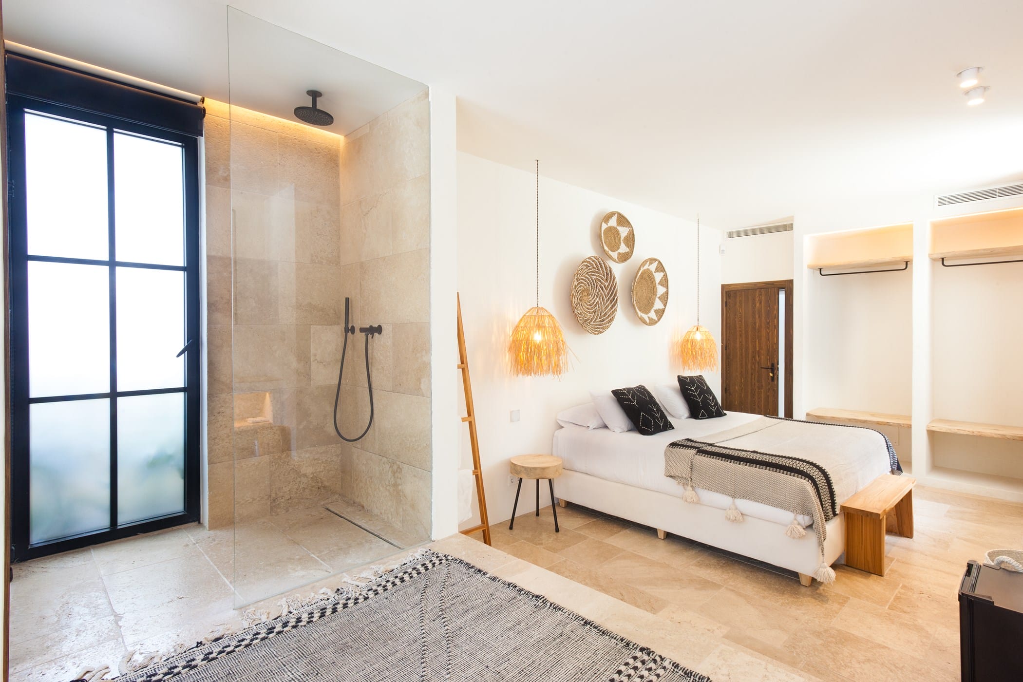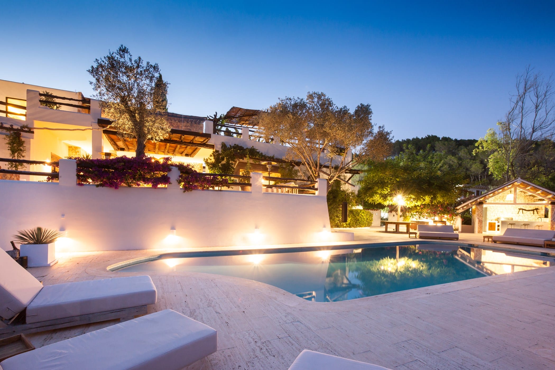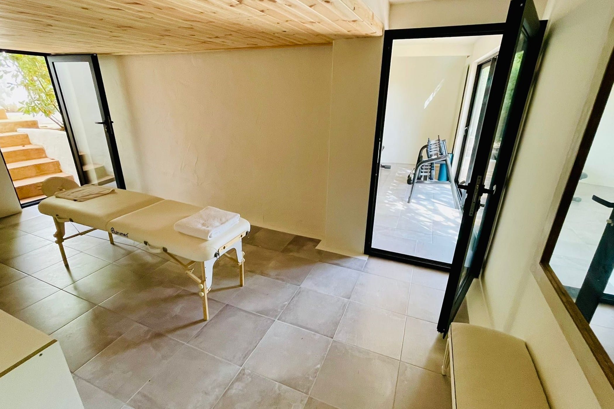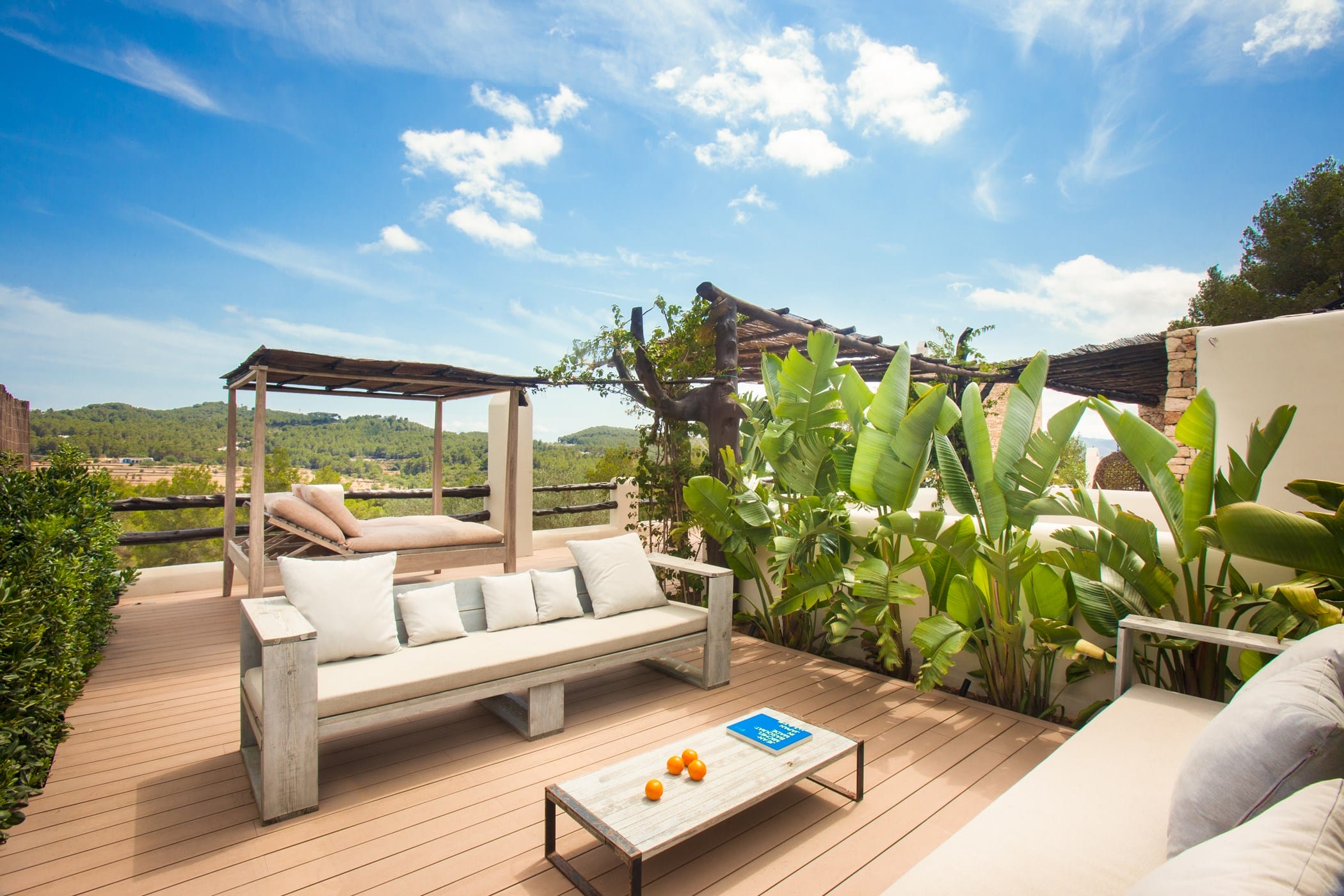 The property offers several en-suite bedrooms distributed between the main house and separate guest accommodations, ensuring privacy and comfort. Outdoors, guests can enjoy a pool, yoga platforms, wellness areas, and landscaped gardens. Combining luxury, space, and top-tier facilities, it provides an exceptional setting for a private and immersive Ibiza retreat.
