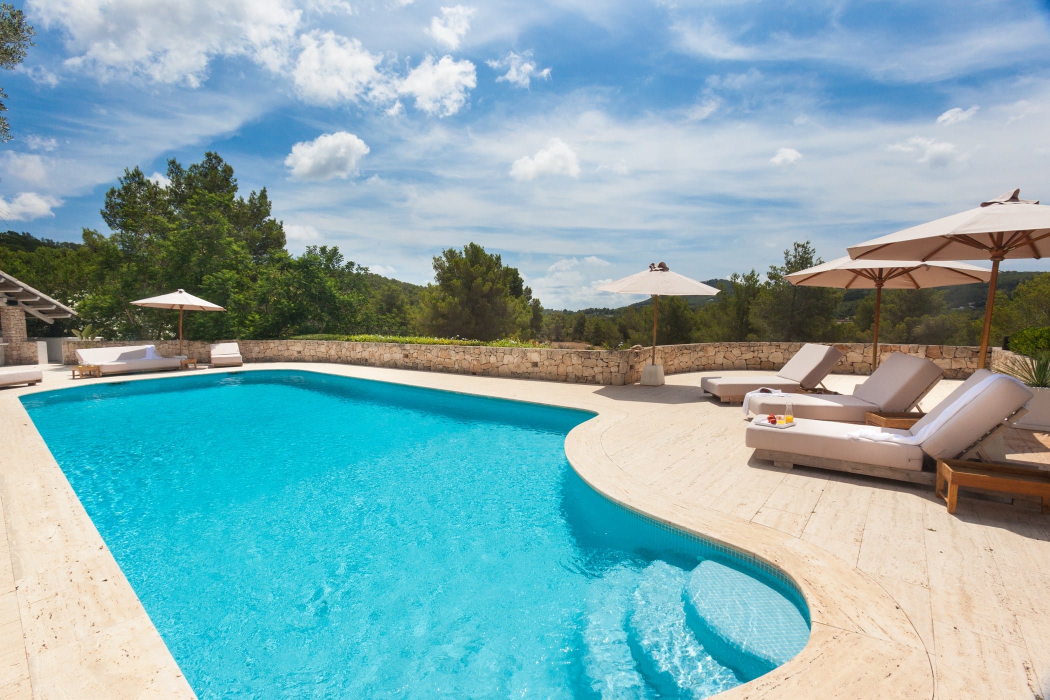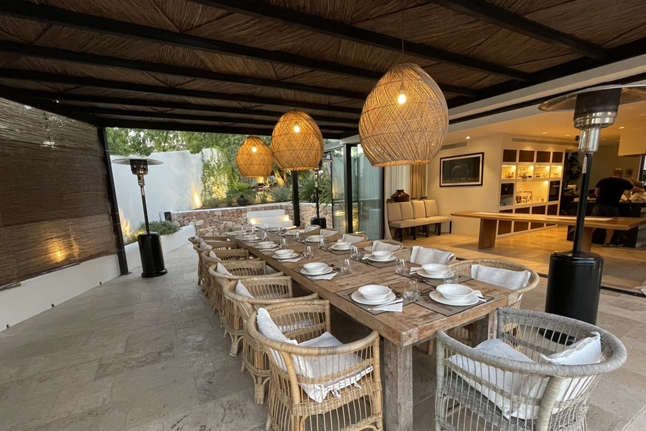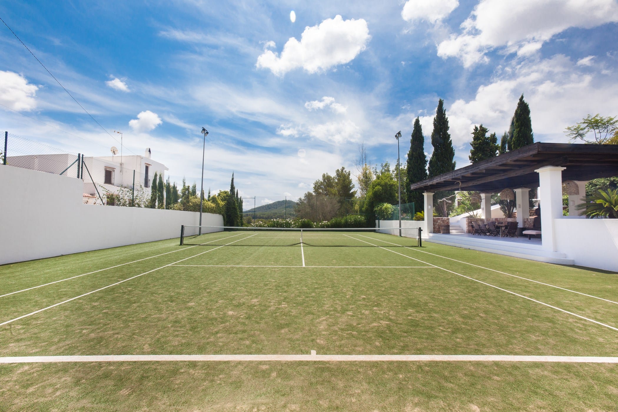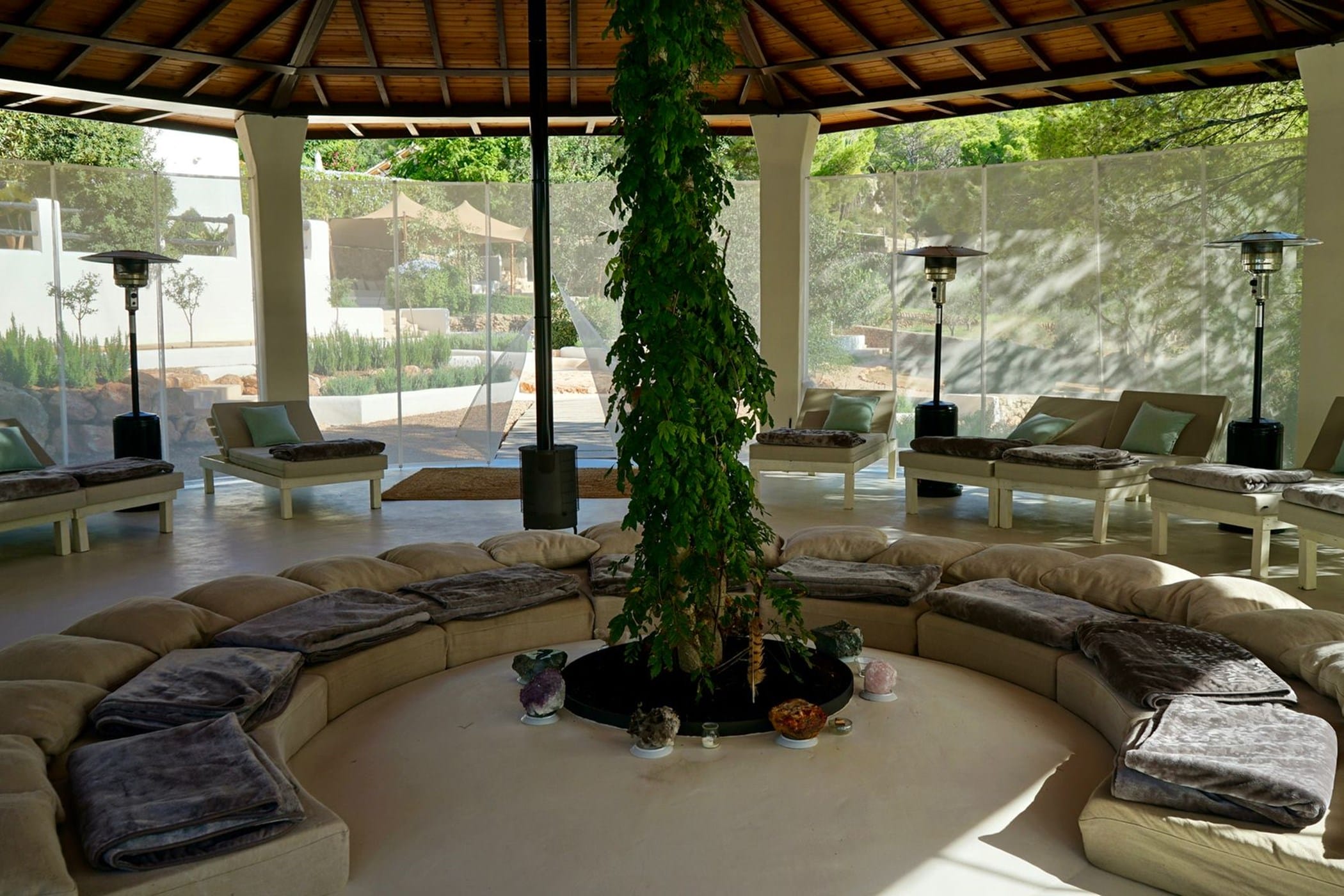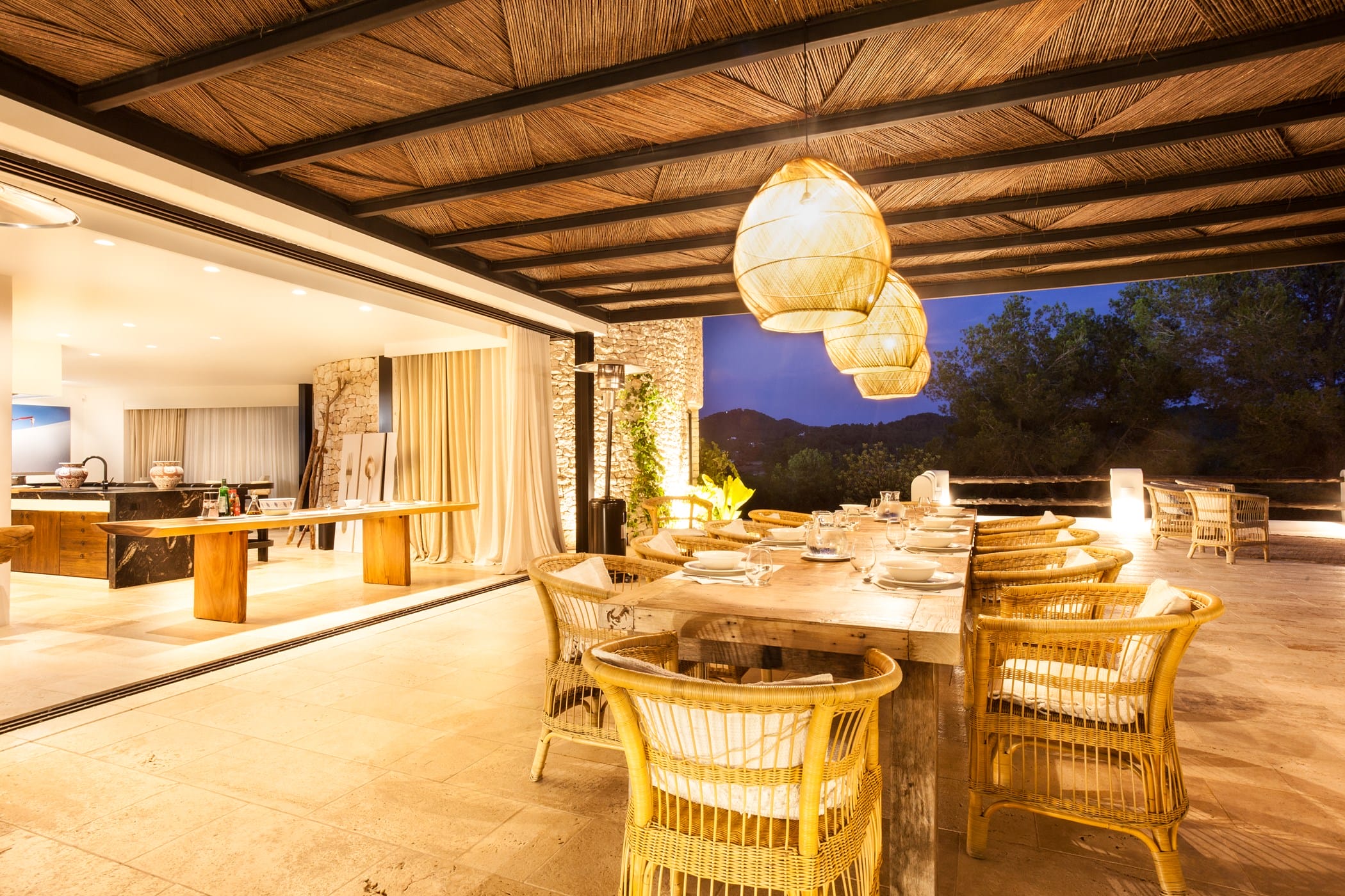 The property offers several en-suite bedrooms distributed between the main house and separate guest accommodations, ensuring privacy and comfort. Outdoors, guests can enjoy a pool, yoga platforms, wellness areas, and landscaped gardens. Combining luxury, space, and top-tier facilities, it provides an exceptional setting for a private and immersive Ibiza retreat.