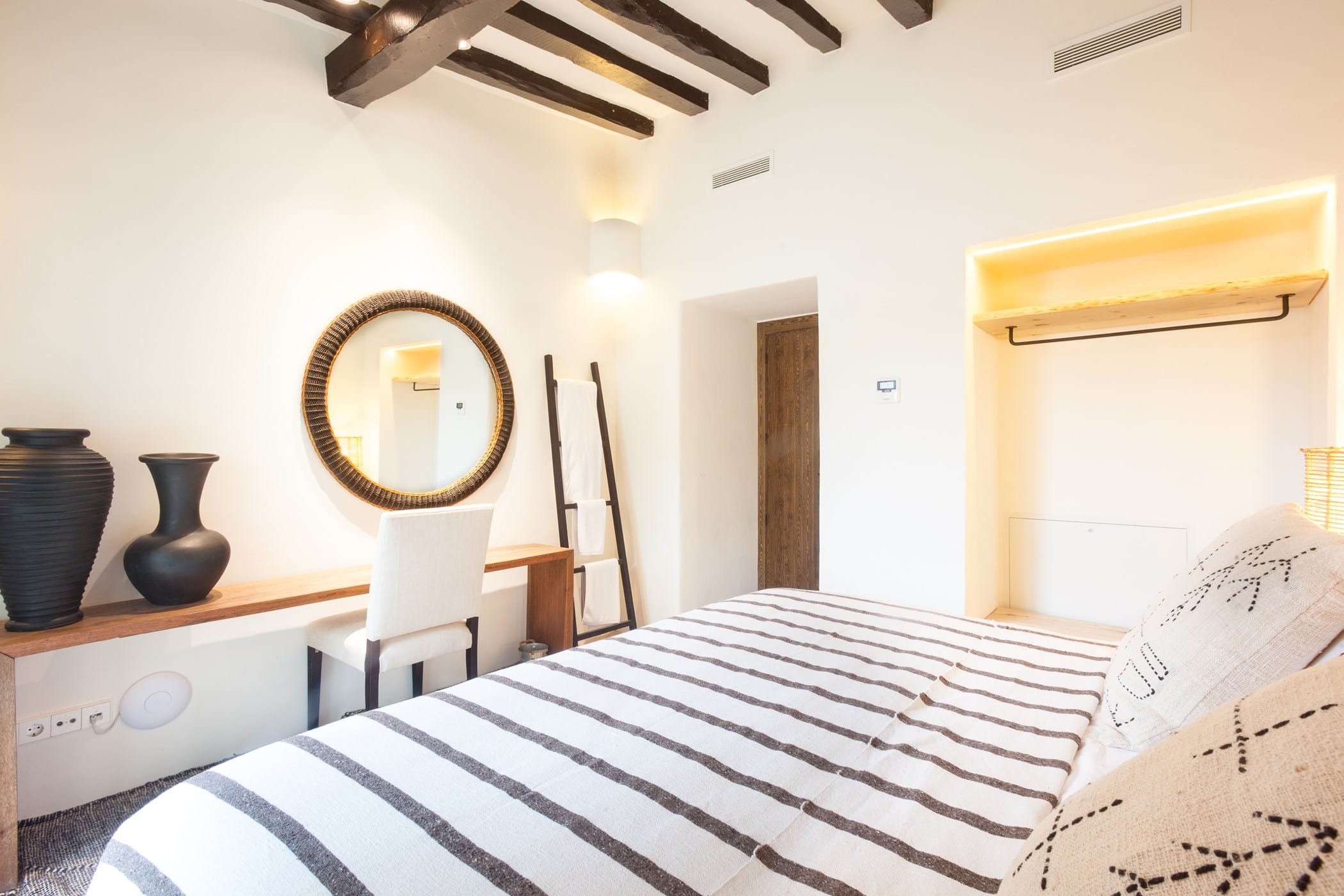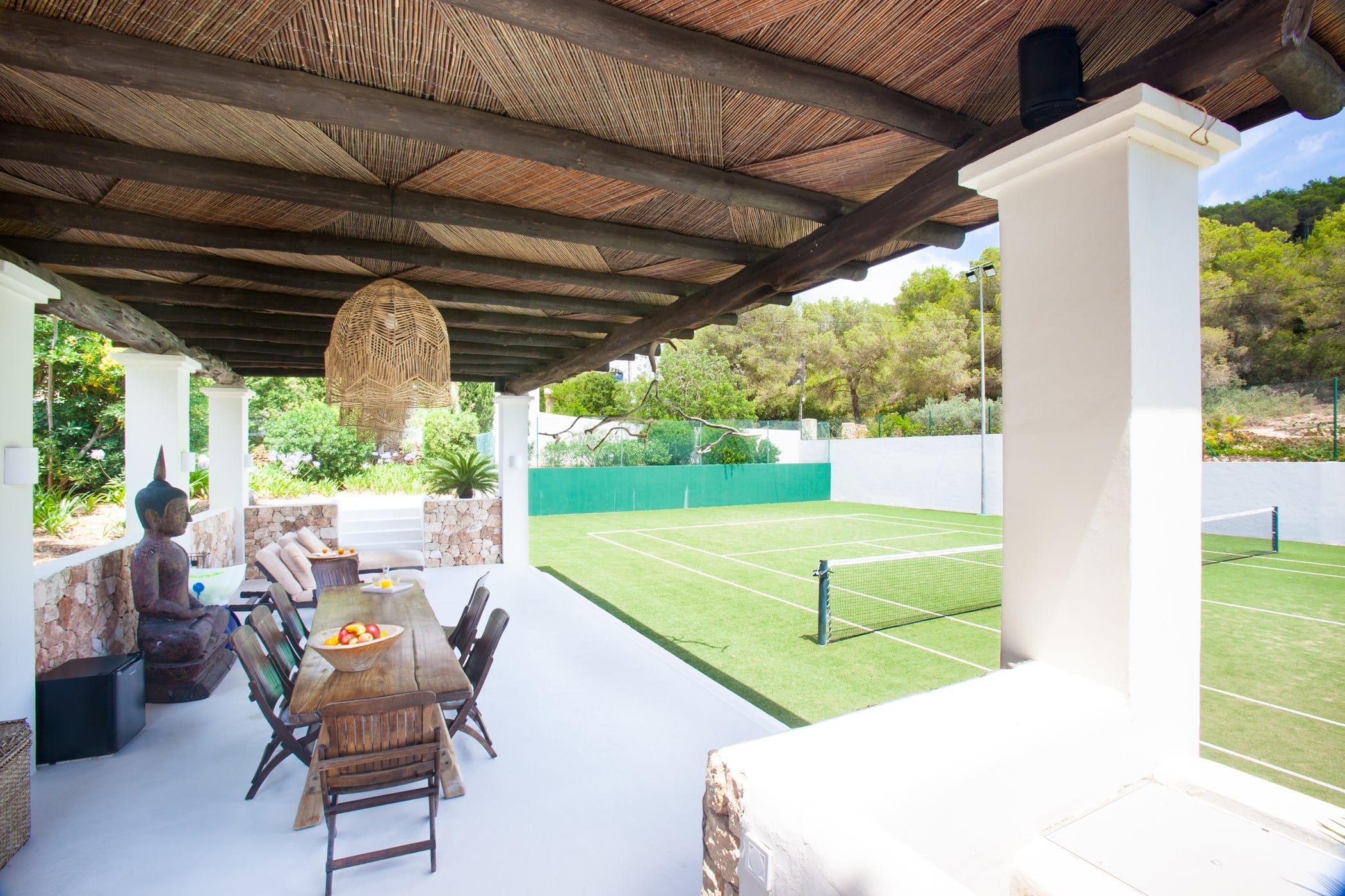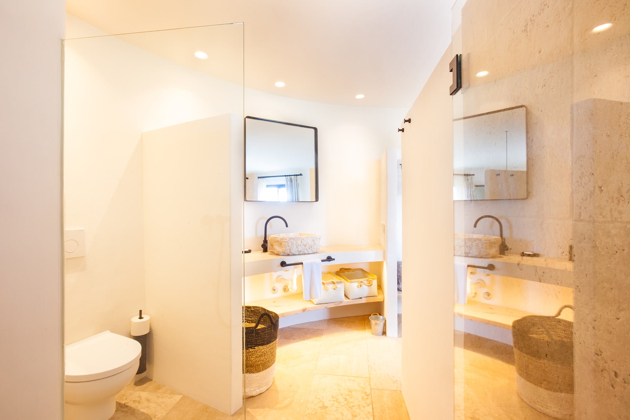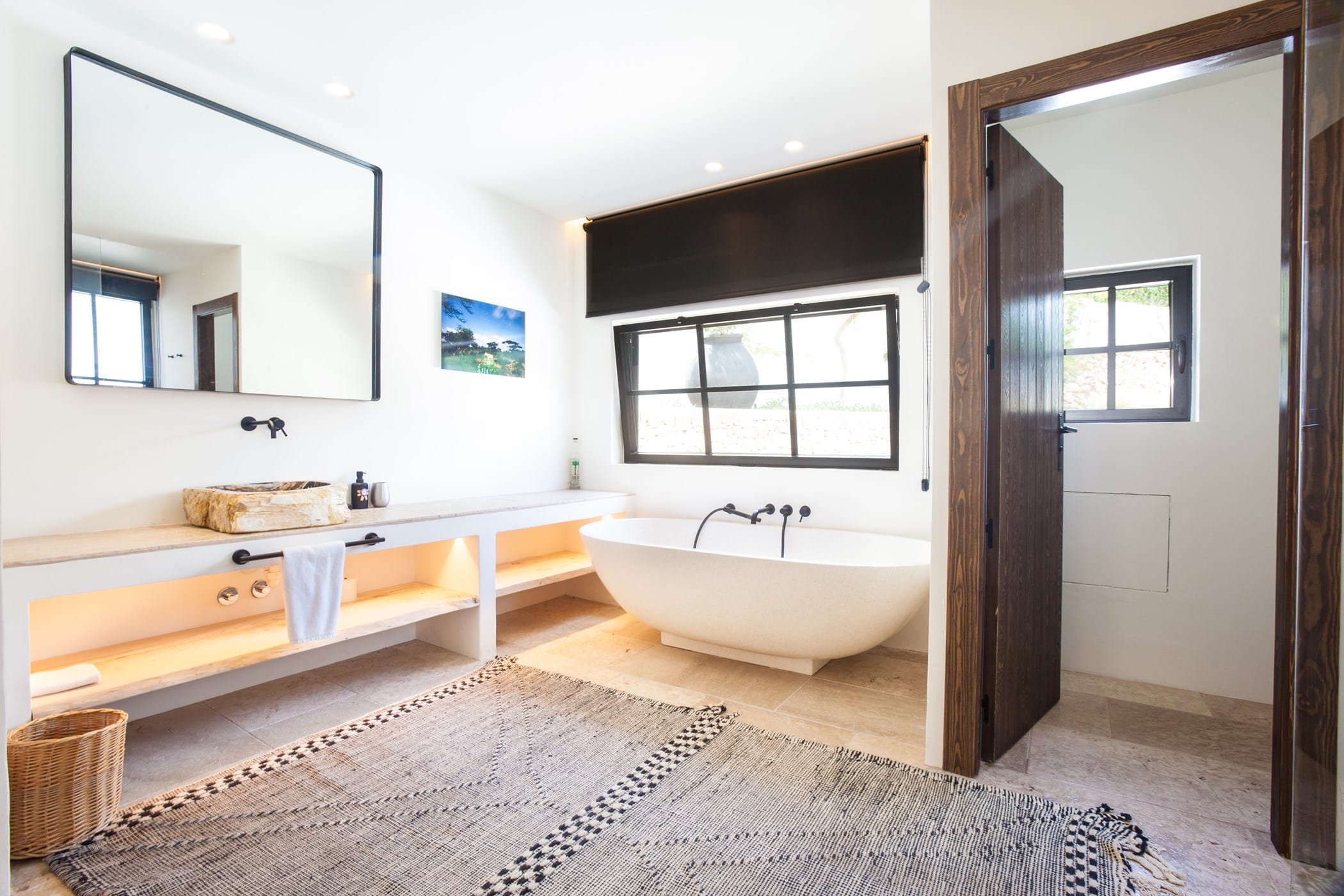 The property offers several en-suite bedrooms distributed between the main house and separate guest accommodations, ensuring privacy and comfort. Outdoors, guests can enjoy a pool, yoga platforms, wellness areas, and landscaped gardens. Combining luxury, space, and top-tier facilities, it provides an exceptional setting for a private and immersive Ibiza retreat.