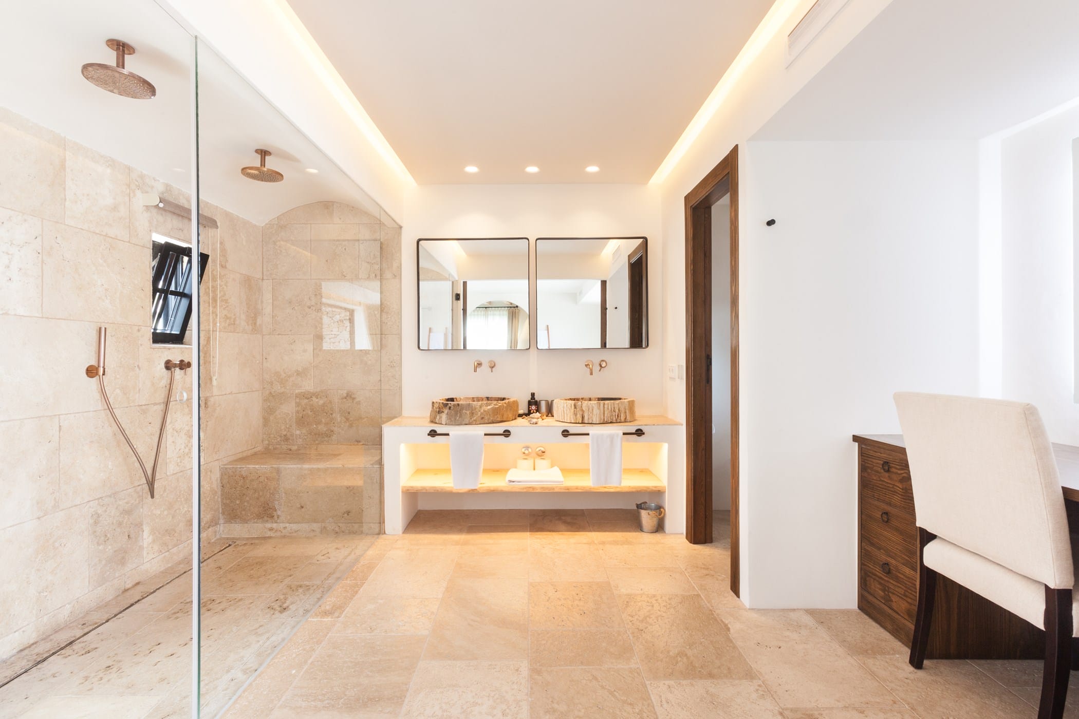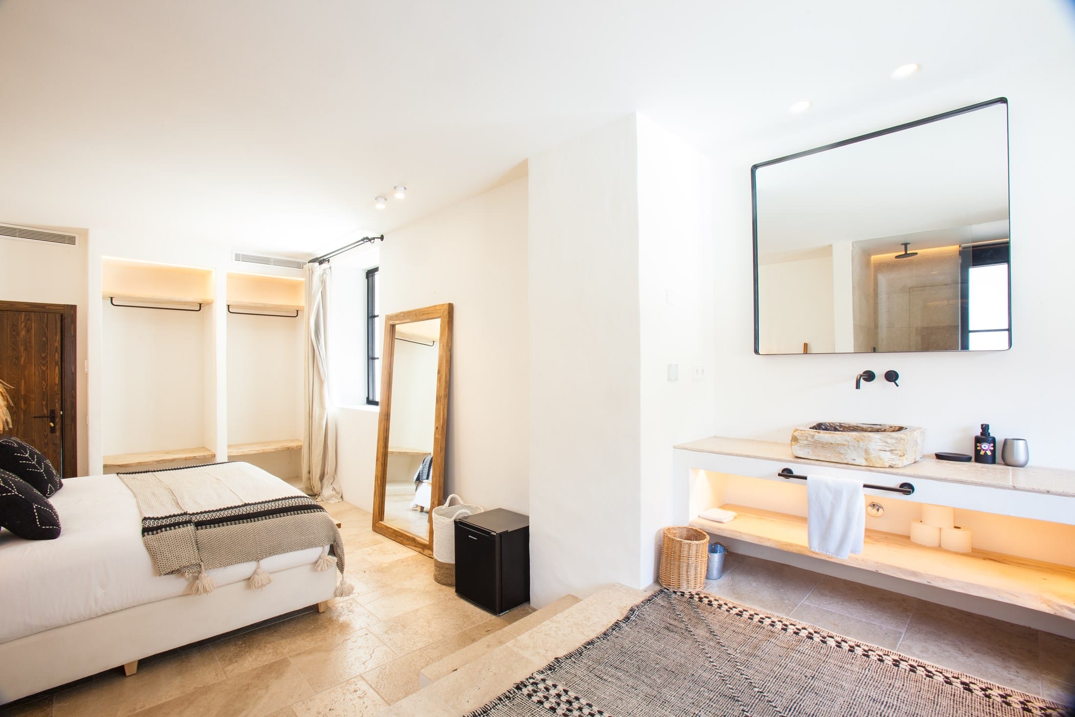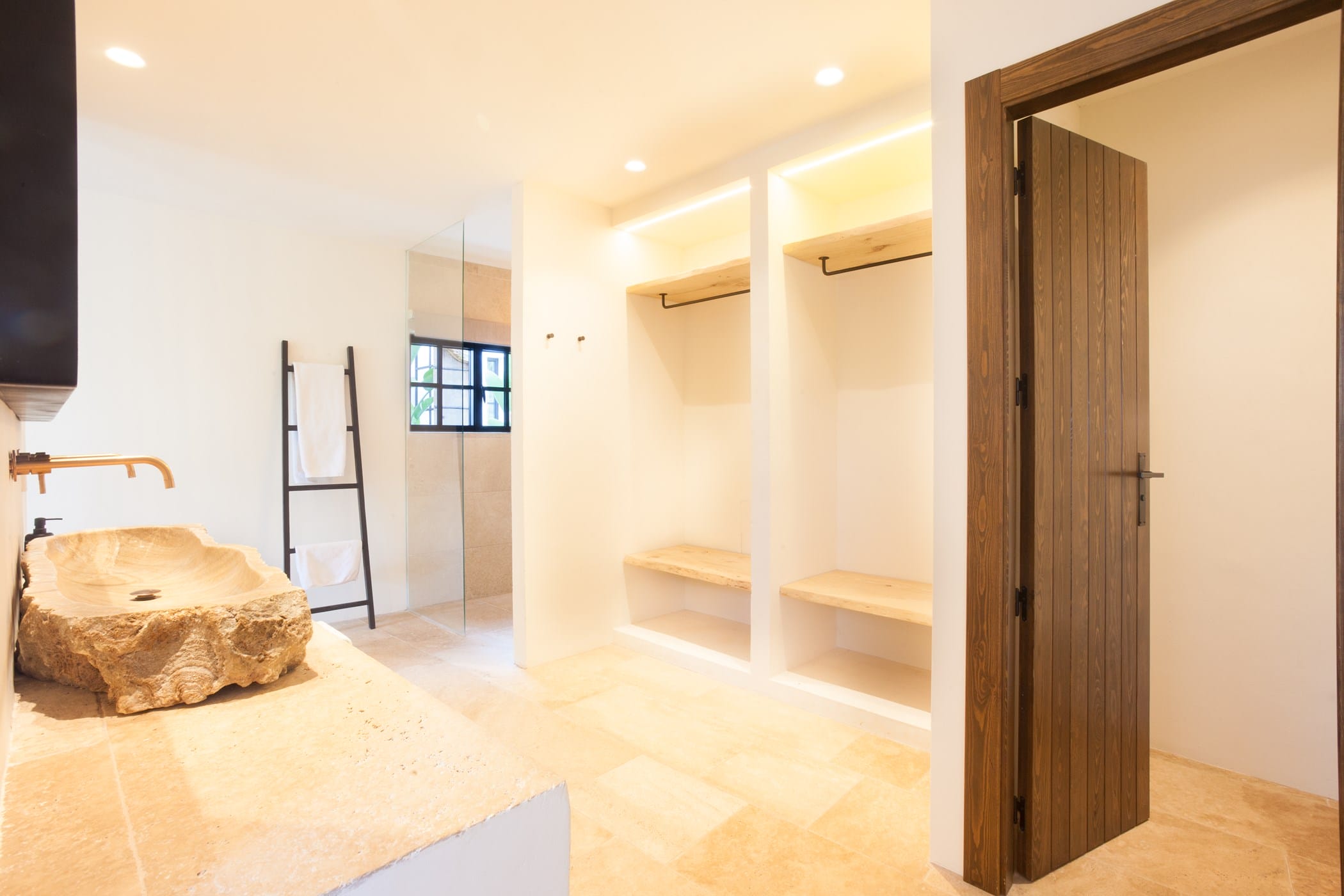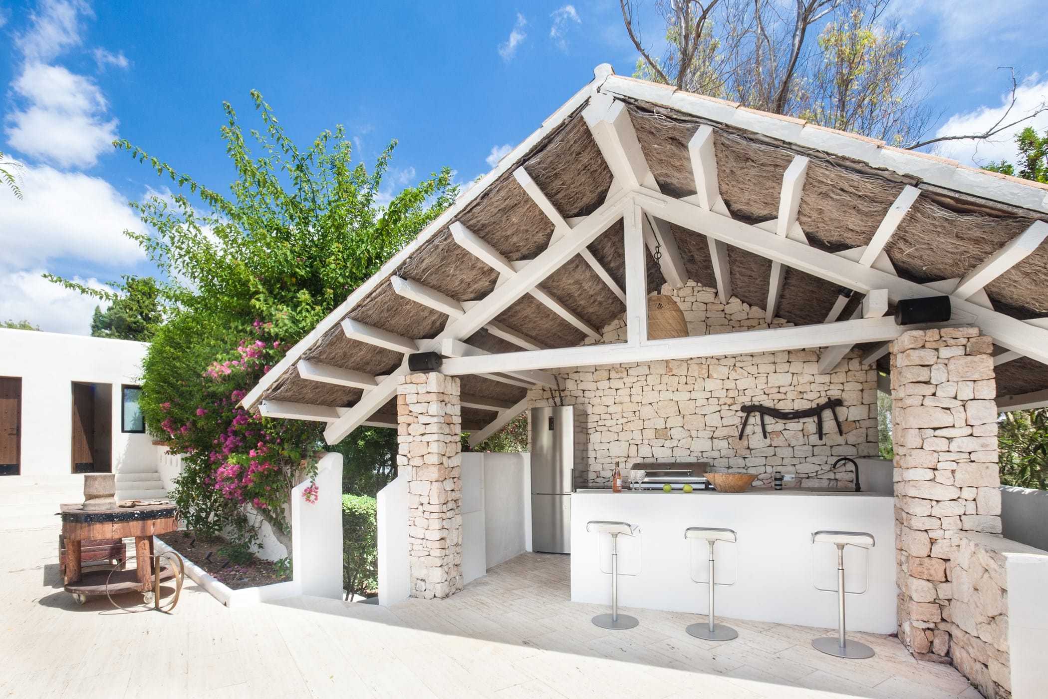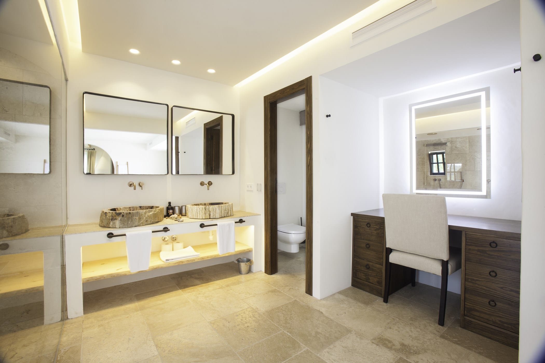 The property offers several en-suite bedrooms distributed between the main house and separate guest accommodations, ensuring privacy and comfort. Outdoors, guests can enjoy a pool, yoga platforms, wellness areas, and landscaped gardens. Combining luxury, space, and top-tier facilities, it provides an exceptional setting for a private and immersive Ibiza retreat.