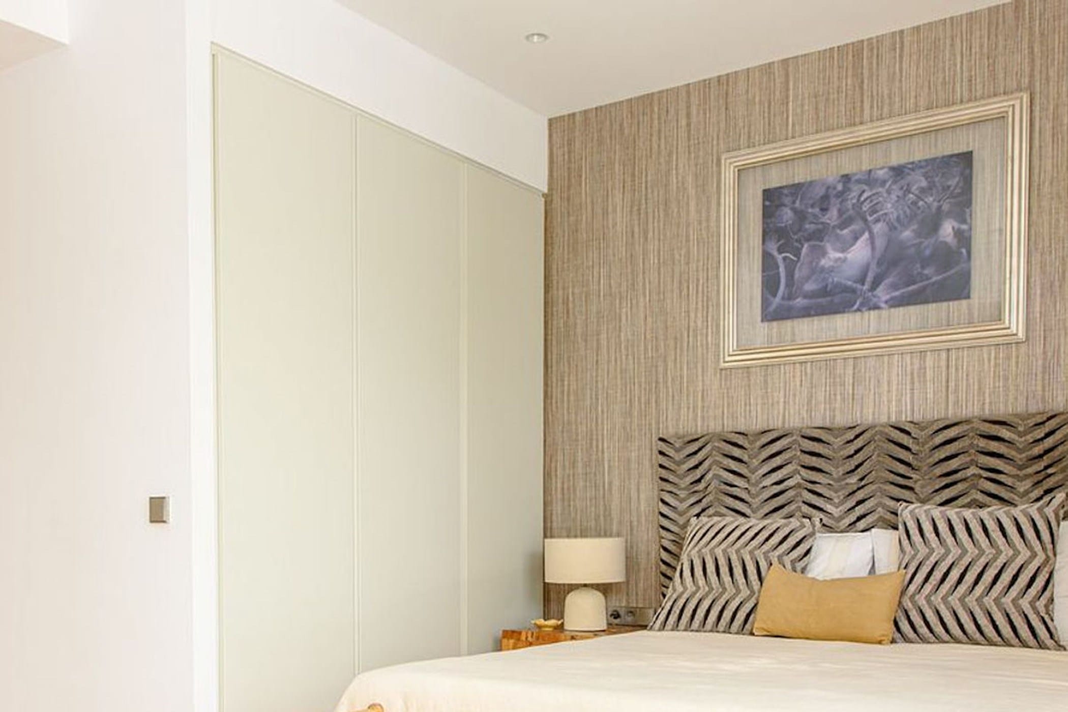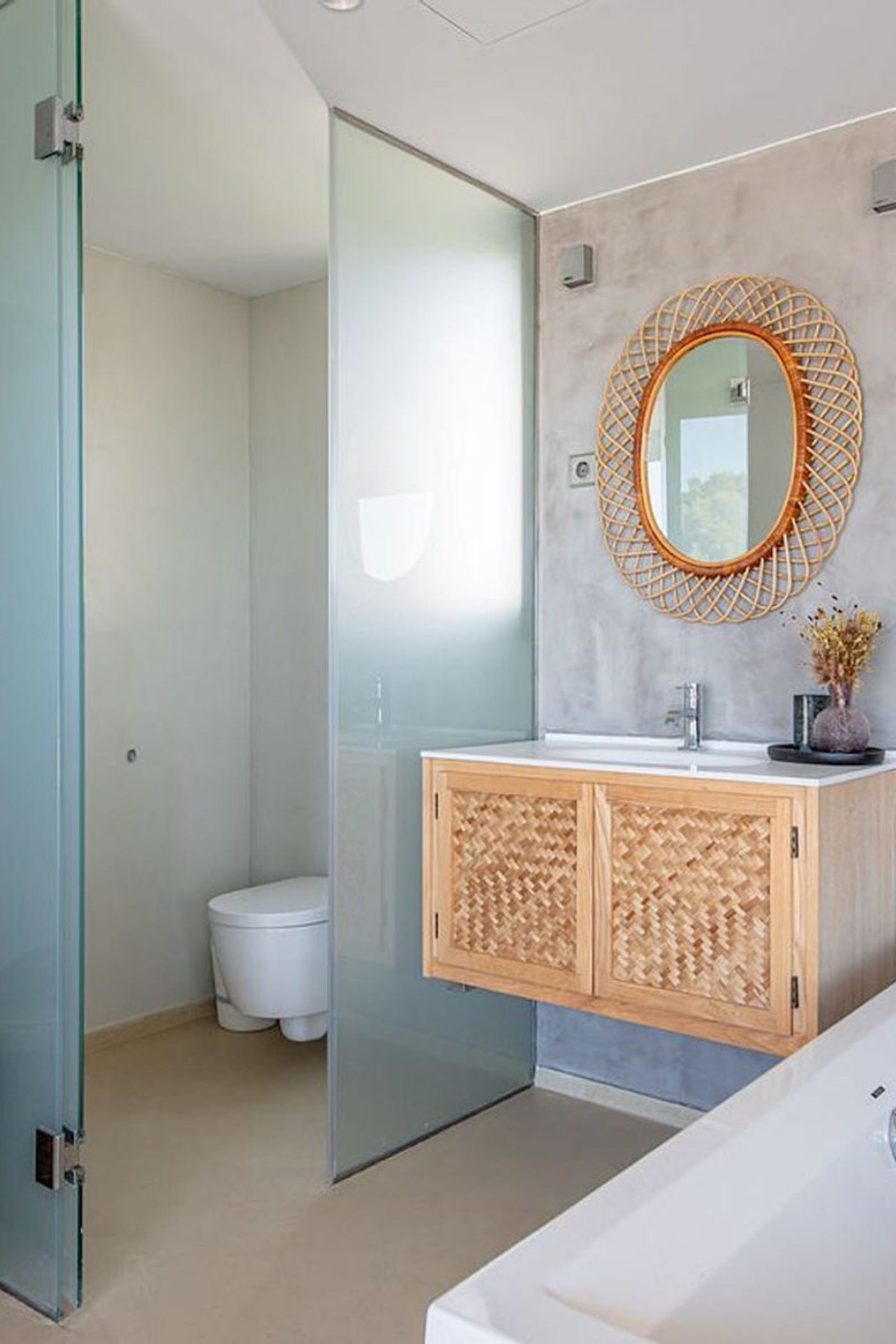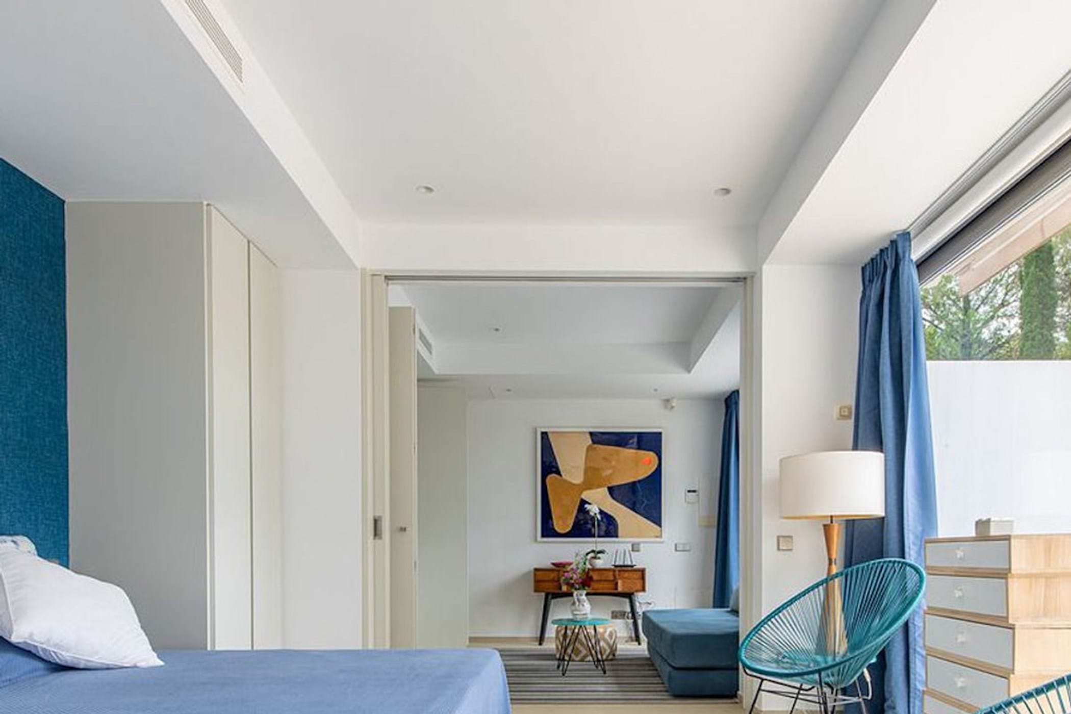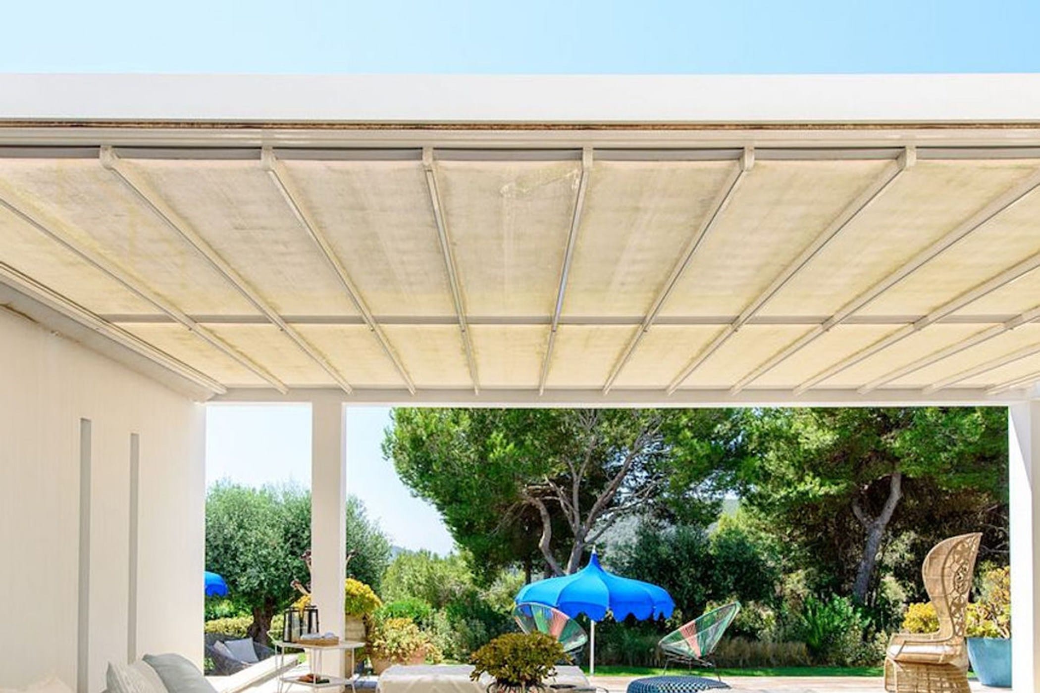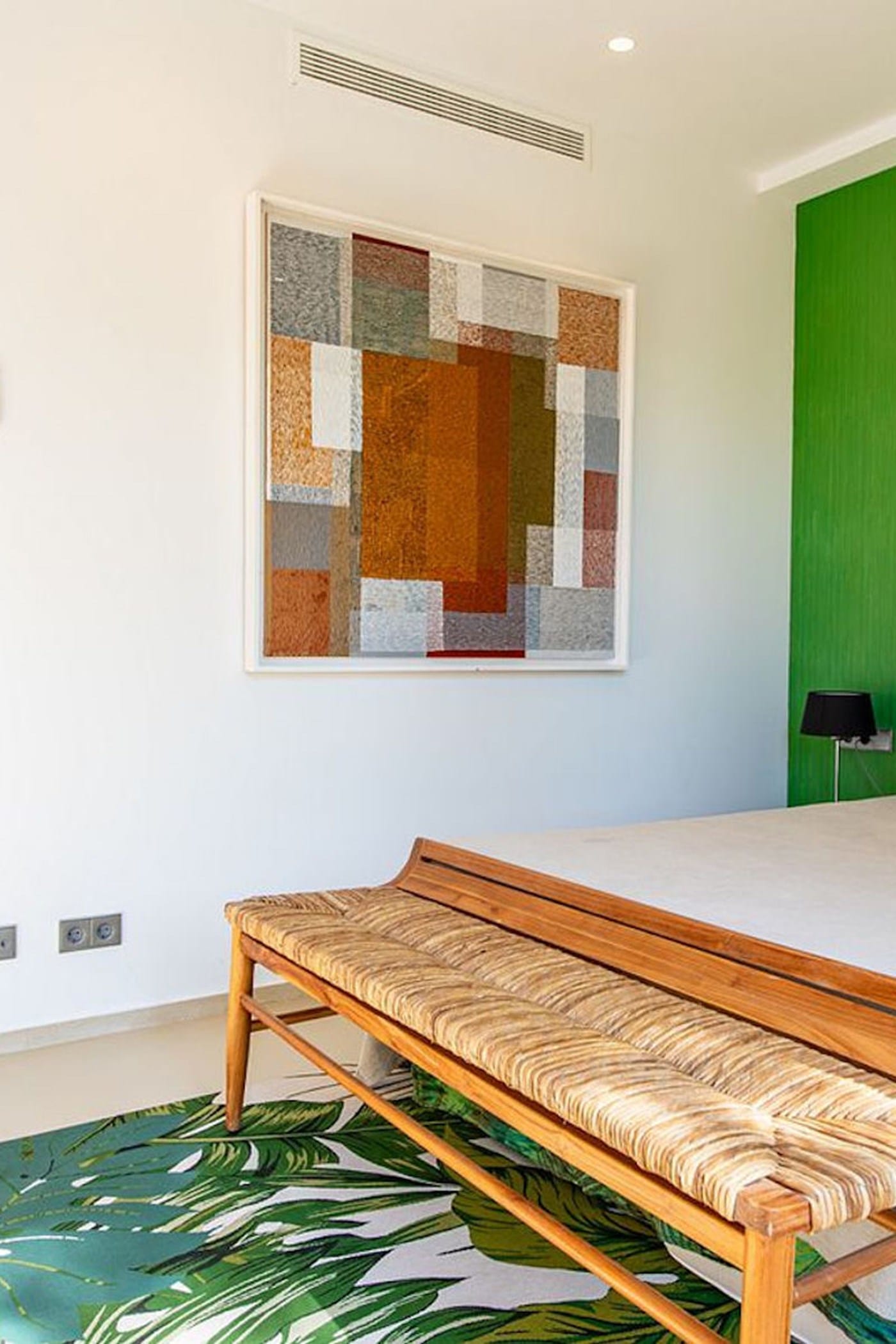 This modern 7-bedroom mansion, designed by renowned architect Jaime Serra, sits majestically on a hillside with beautiful views over green hills and Cala Jondal bay, home to the world-famous Blue Marlin beach club. Close to the charming village of San Jose and Ibiza Town.