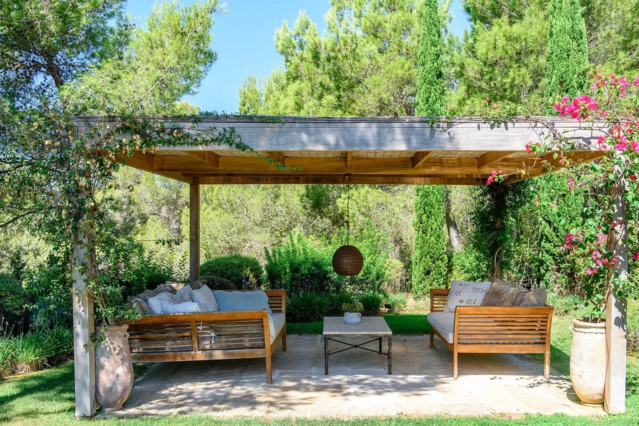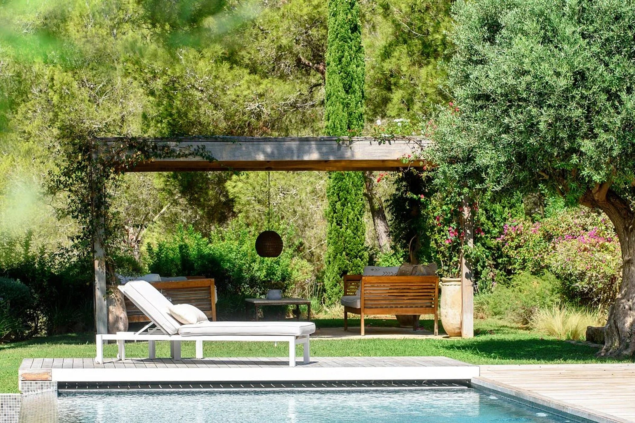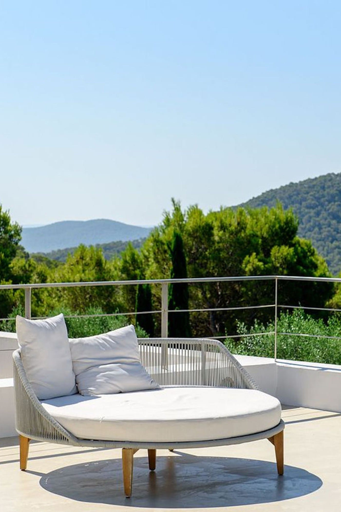 Set on a large private plot, the beautifully landscaped Mediterranean gardens include lush lawns, olive trees, mimosas, lavender, and a fountain surrounded by orange trees. The pool area offers spectacular sea views, complemented by a large chill-out pavilion and sunbeds.