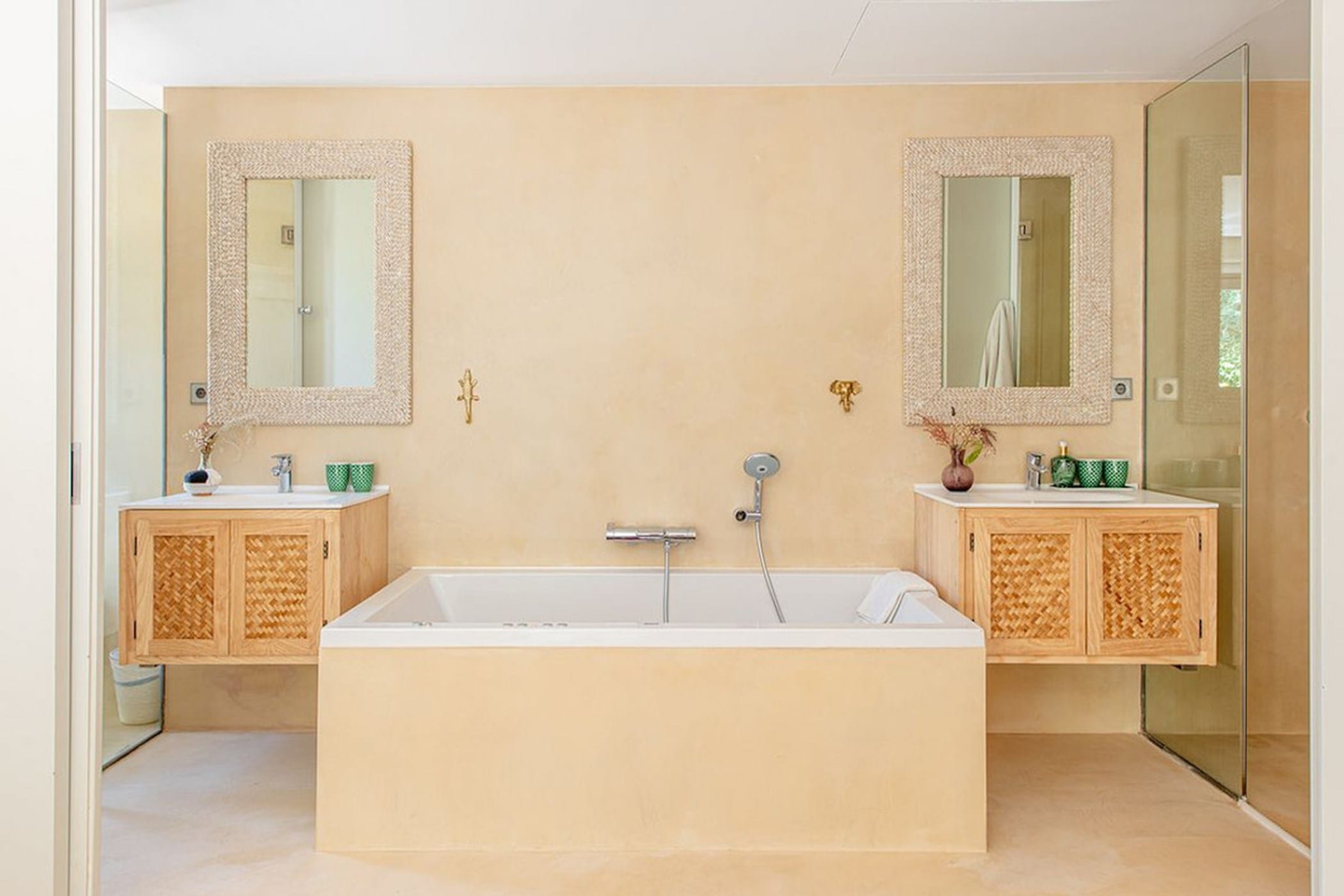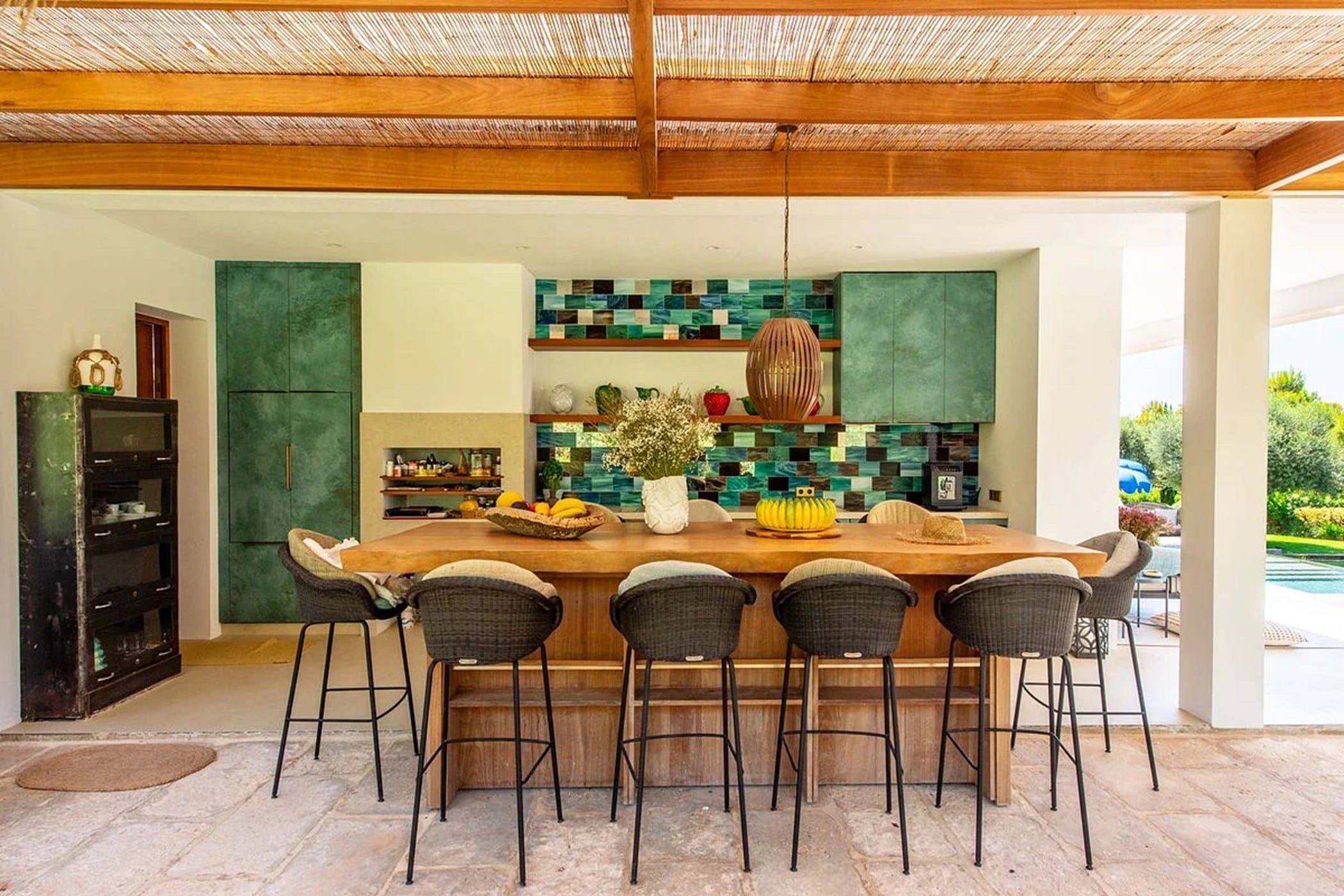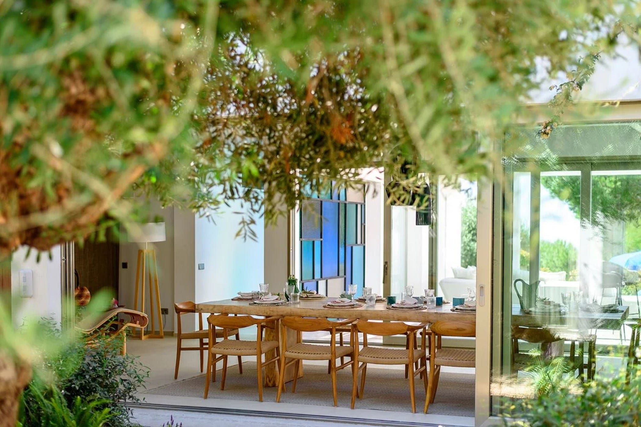 The villa features four bedrooms in the main house, two in a separate guest house, and a flexible studio (which can accommodate children or staff).