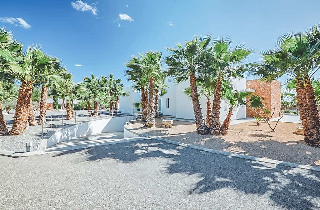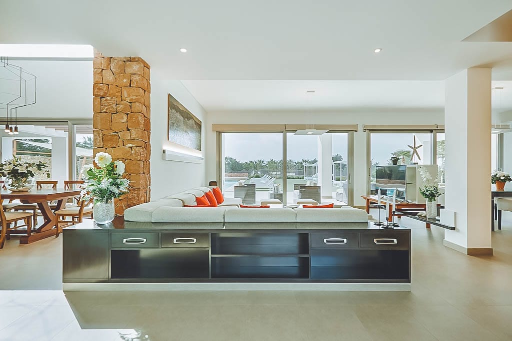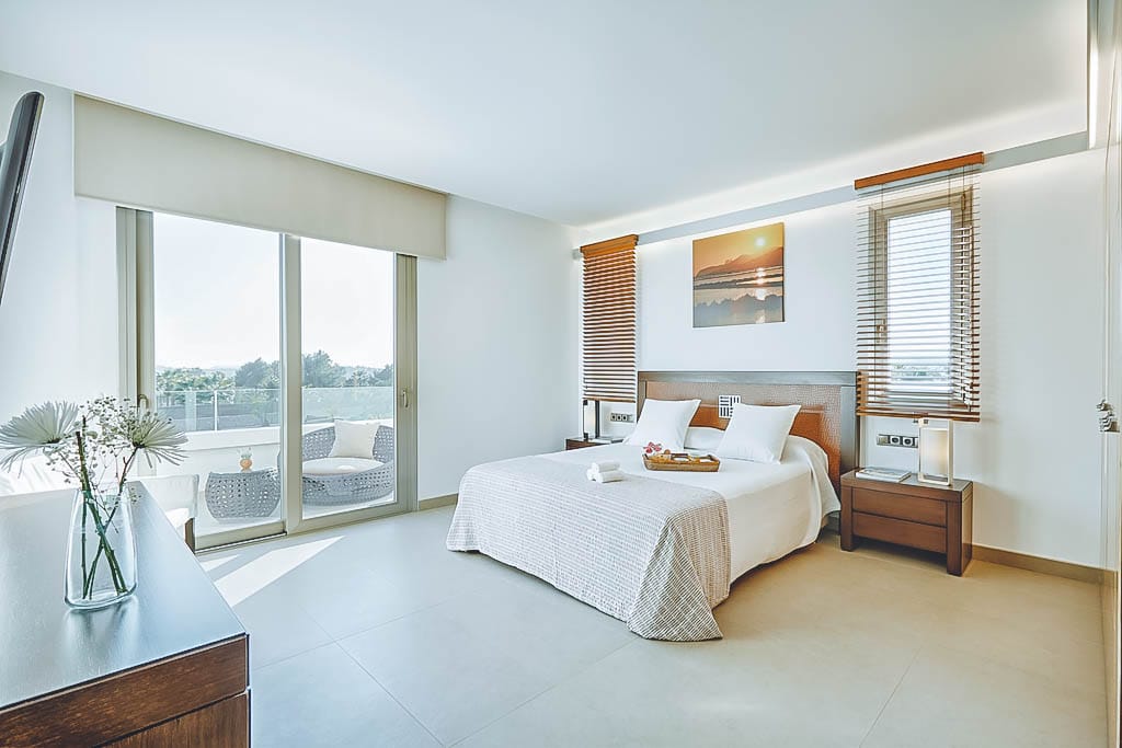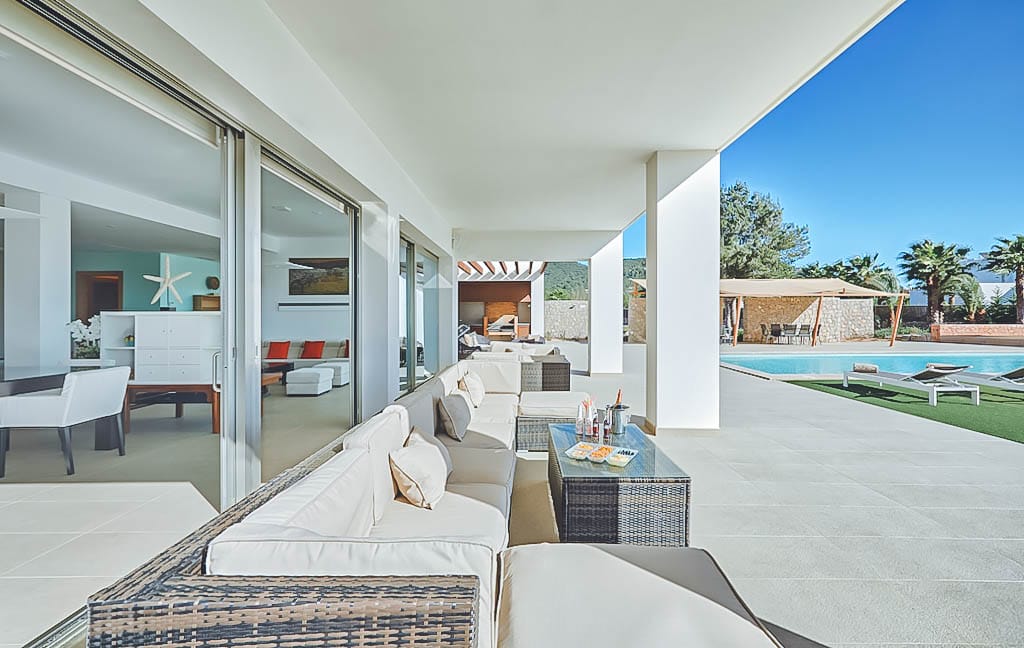 This stylish modern 7-bedroom villa is located in a quiet residential area of Jesús, close to Ibiza Town and a short drive from Talamanca beach.