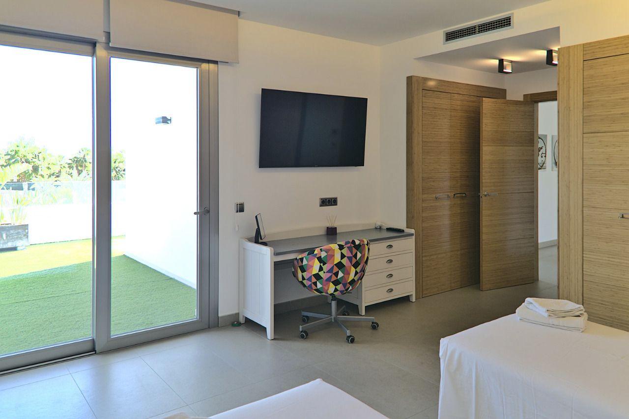 This modern 7-bedroom villa is located in a quiet residential area of Jesús, close to Ibiza Town and a short drive from popular southern beaches.