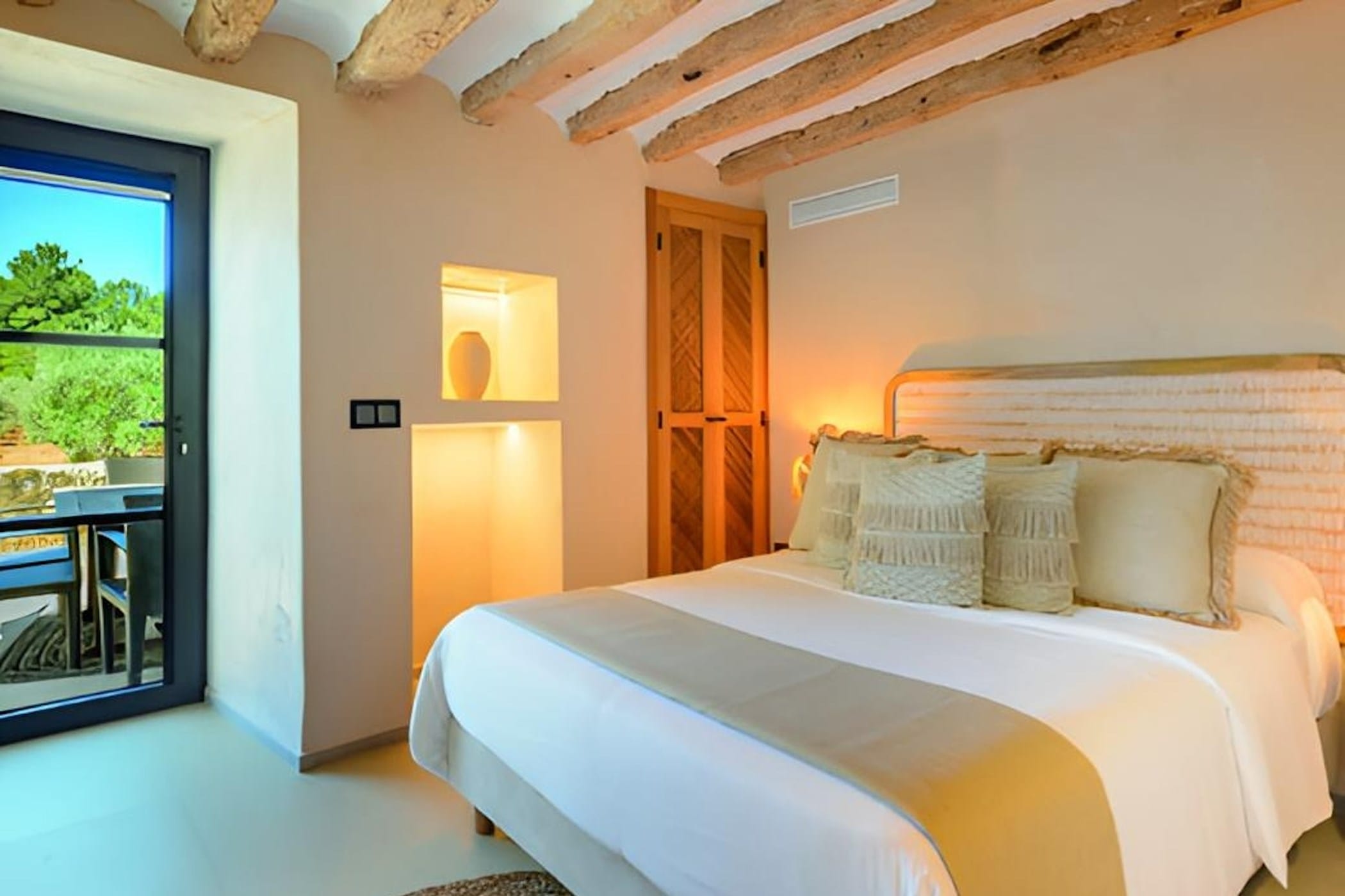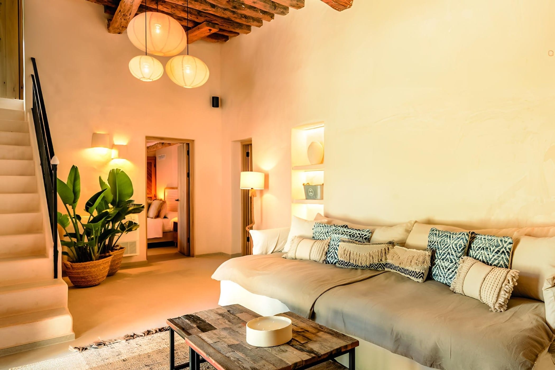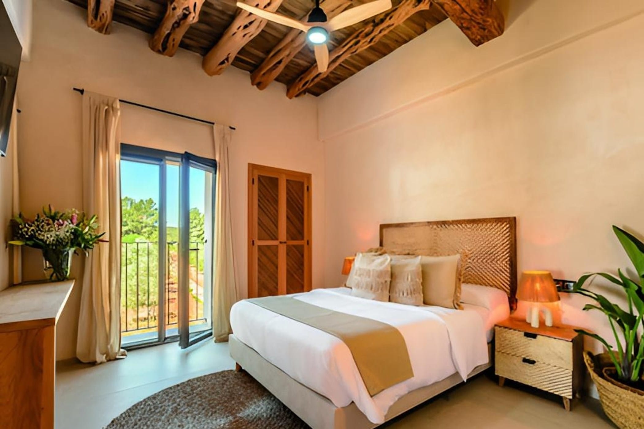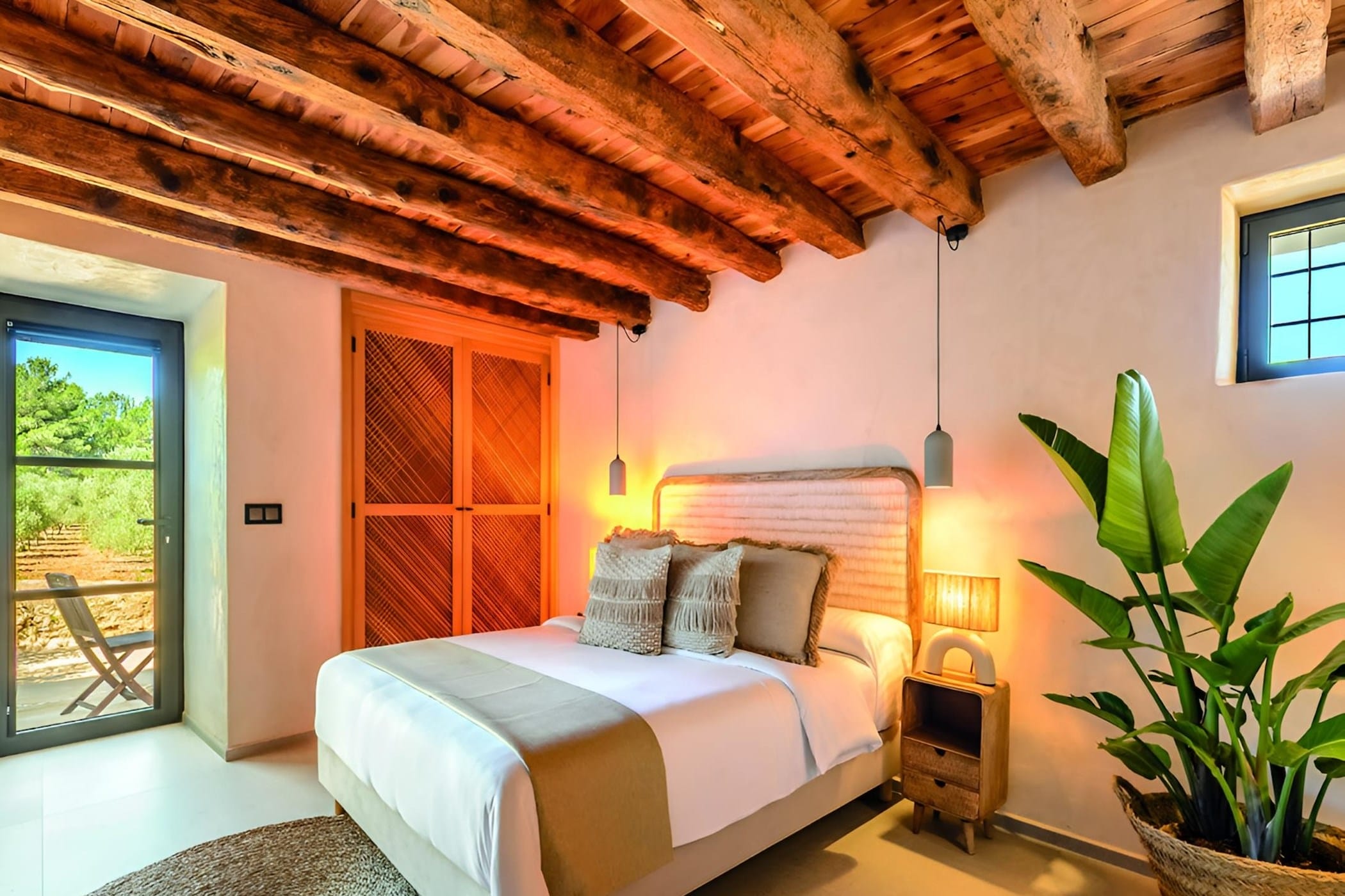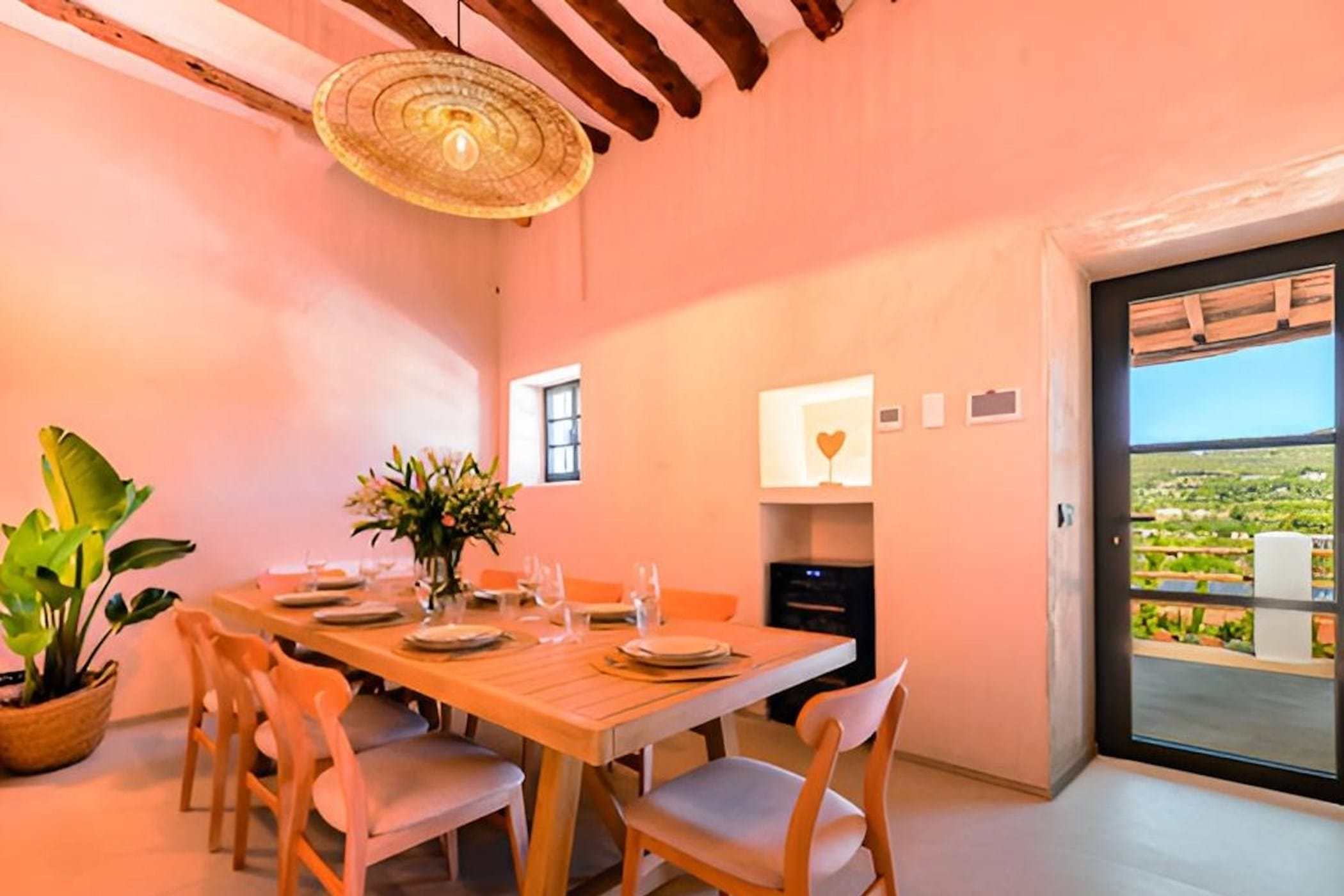 This charming 7-bedroom finca is nestled in the lush, peaceful surroundings of Jesús, offering a perfect blend of modern comfort, contemporary bohemian style, and authentic Mediterranean charm.