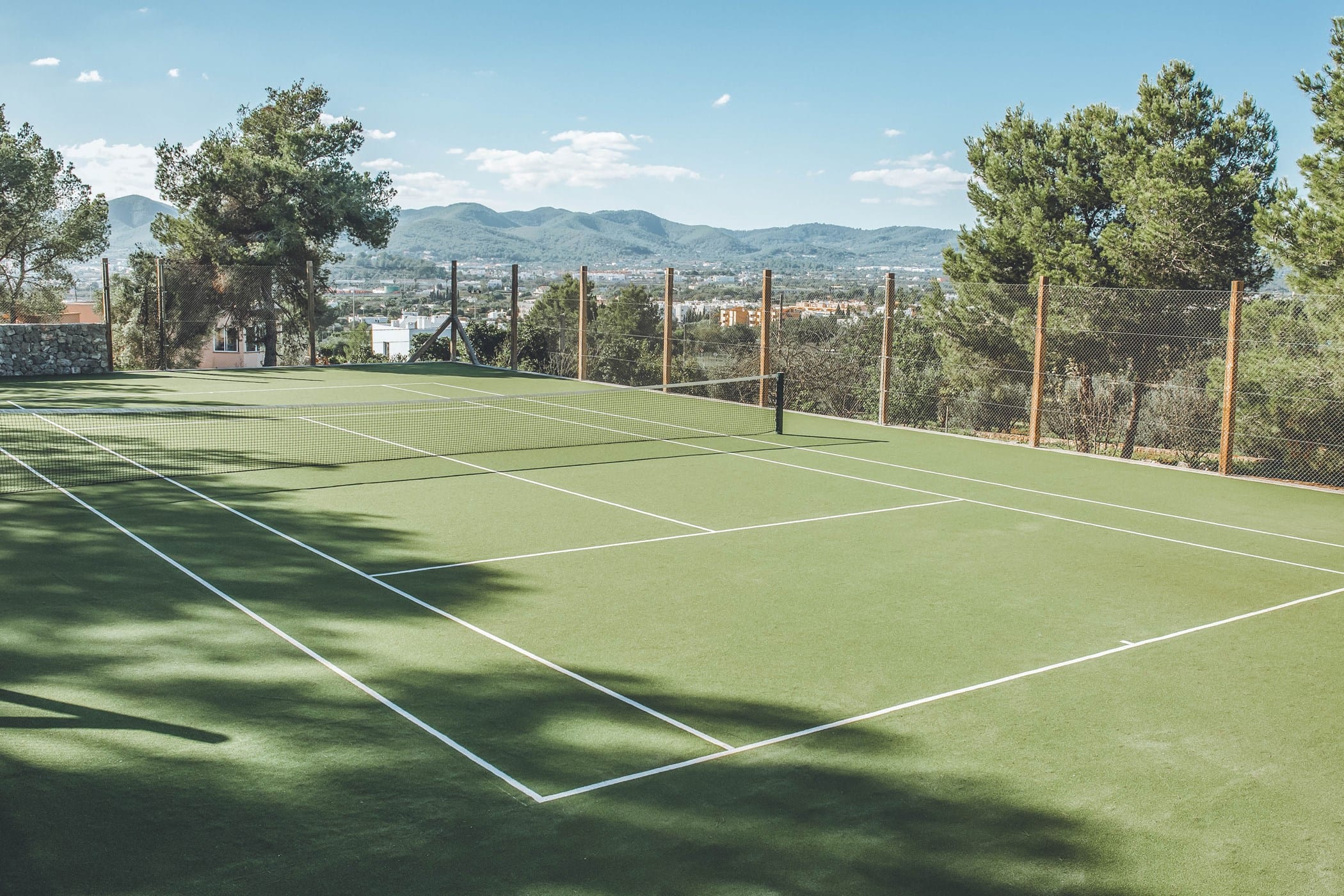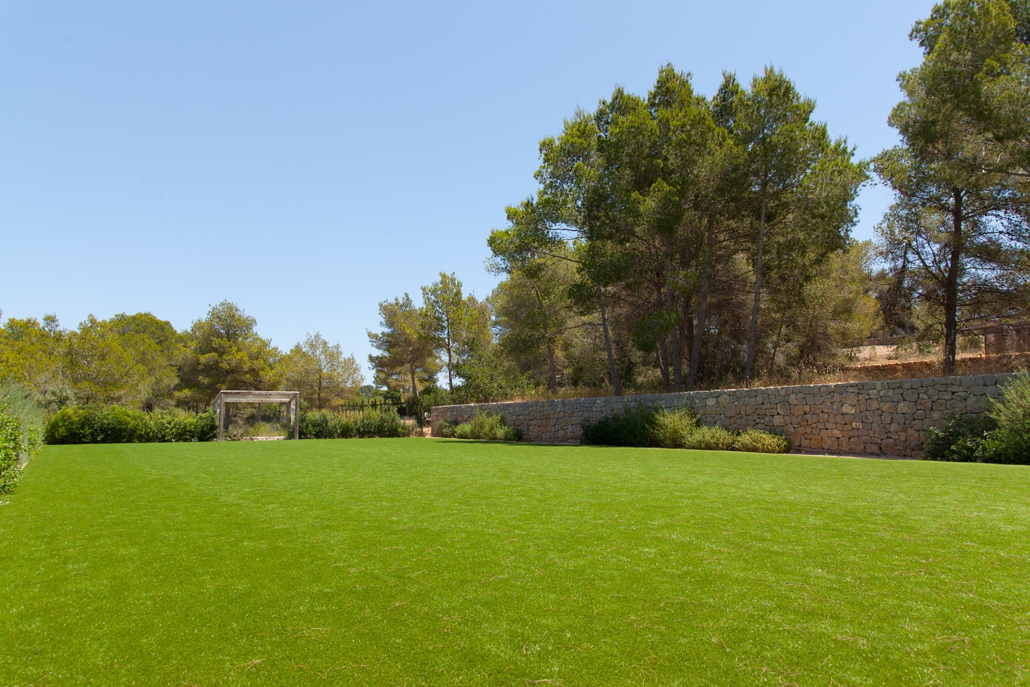 The expansive grounds include a freshwater swimming pool, private tennis court, padel court, mini football pitch, gym, cinema room, pool table, lush gardens, and multiple al-fresco dining and chill-out areas with a fully equipped outdoor kitchen.