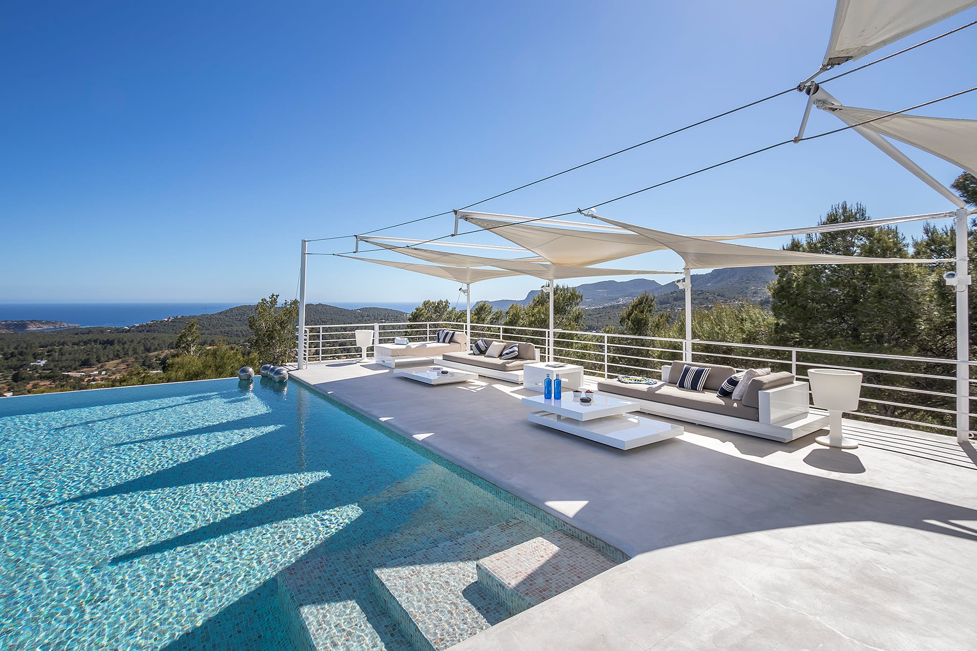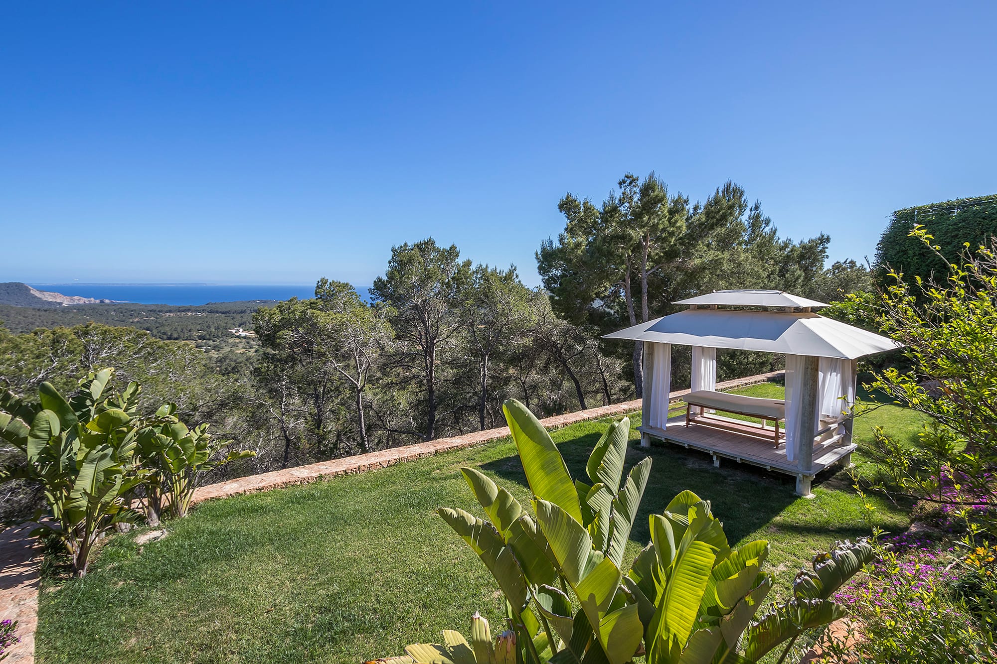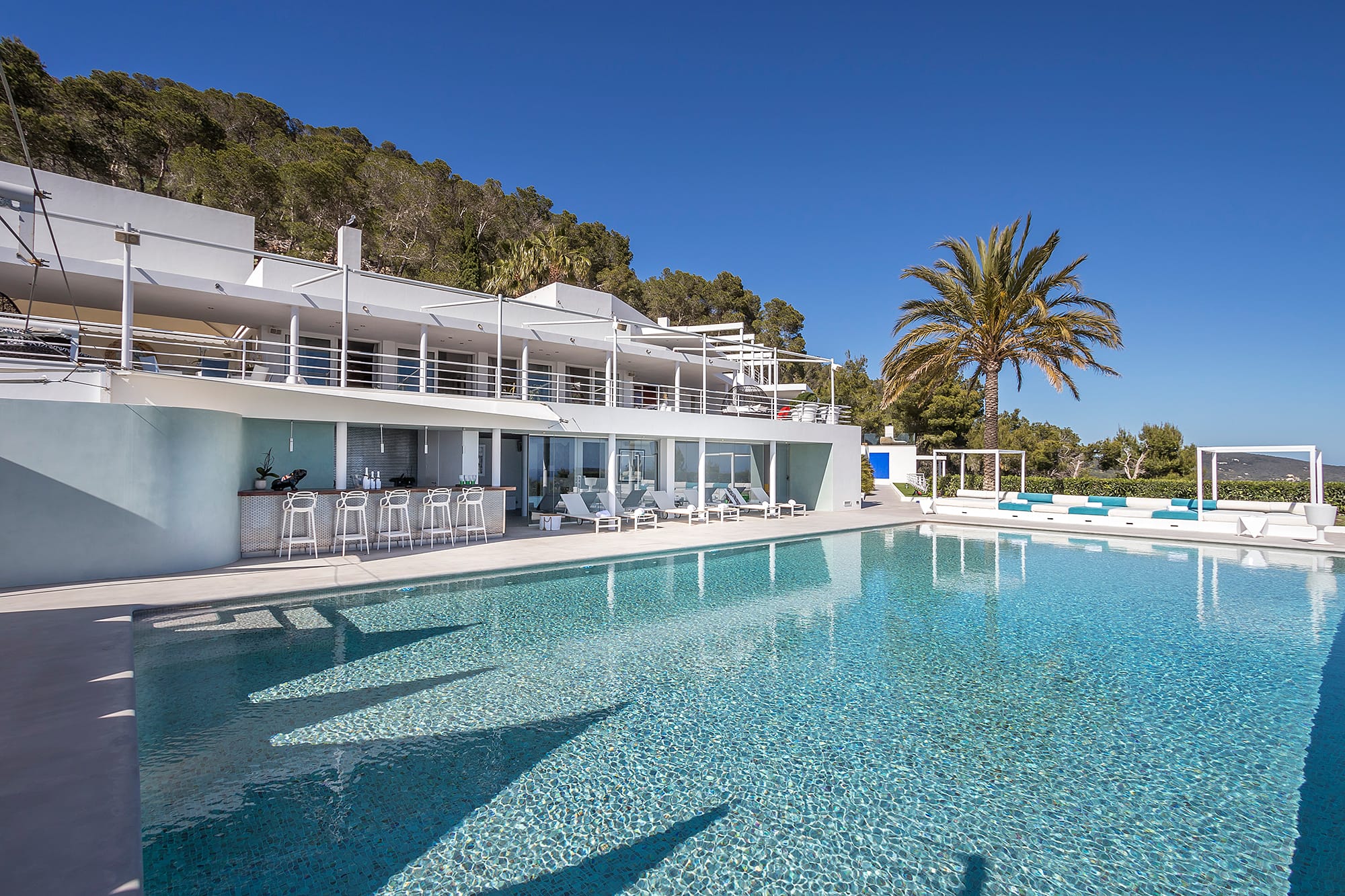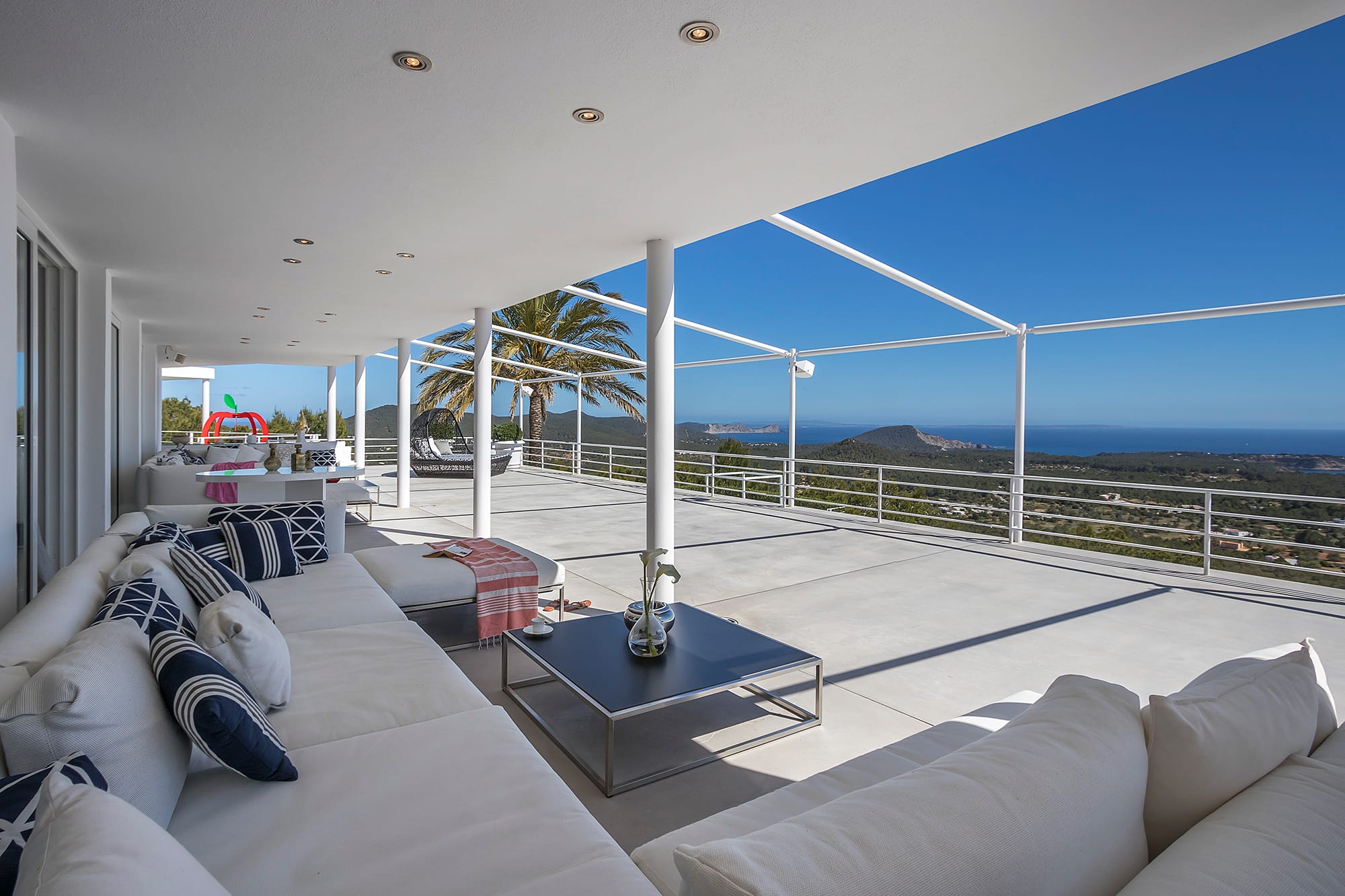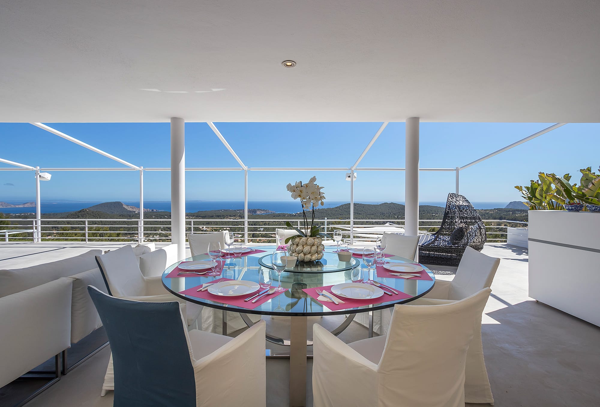 This refined Ibiza retreat offers sweeping panoramic views over the coastline and towards Formentera, set within lush Mediterranean surroundings that ensure privacy and tranquility. Its prime location provides a perfect balance between peaceful seclusion and easy access to nearby beaches and vibrant hotspots.