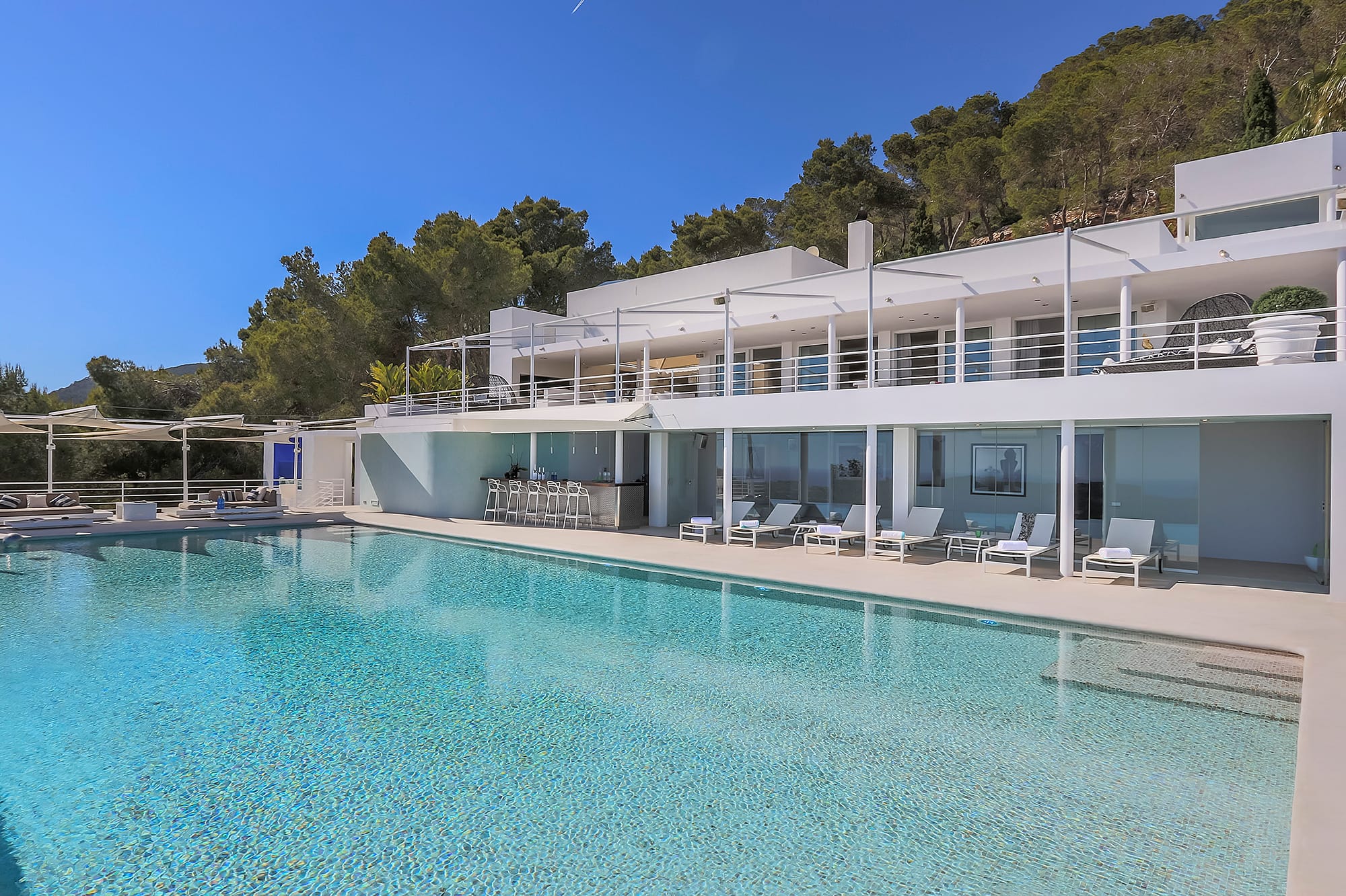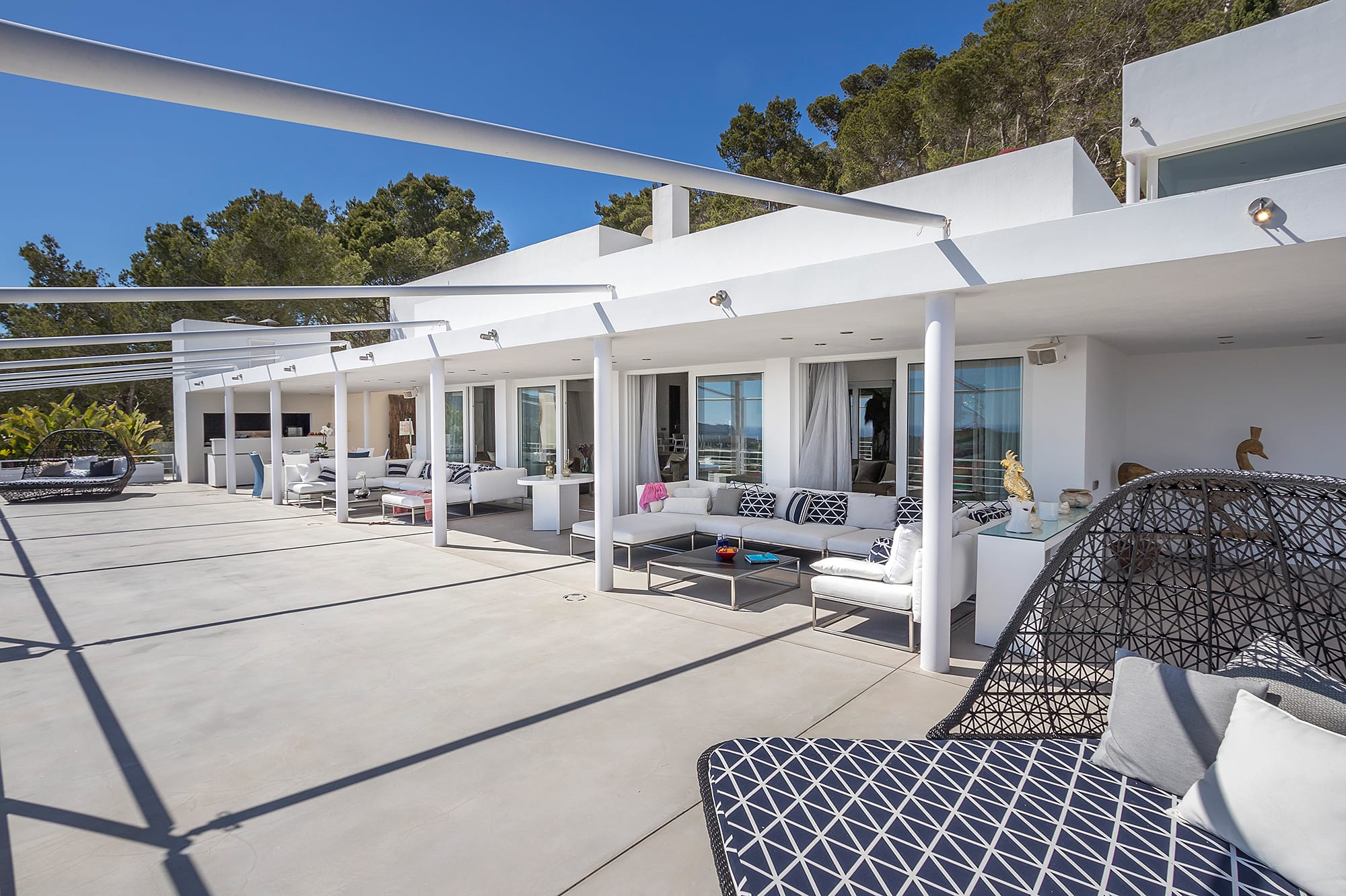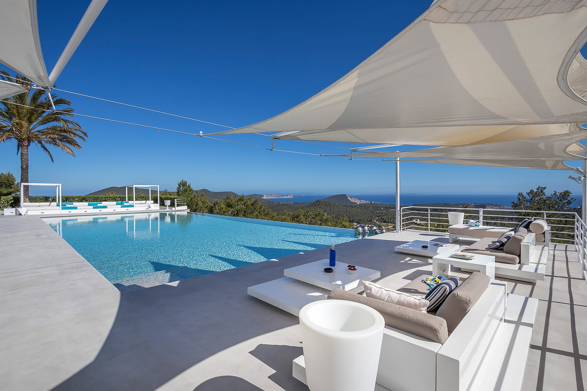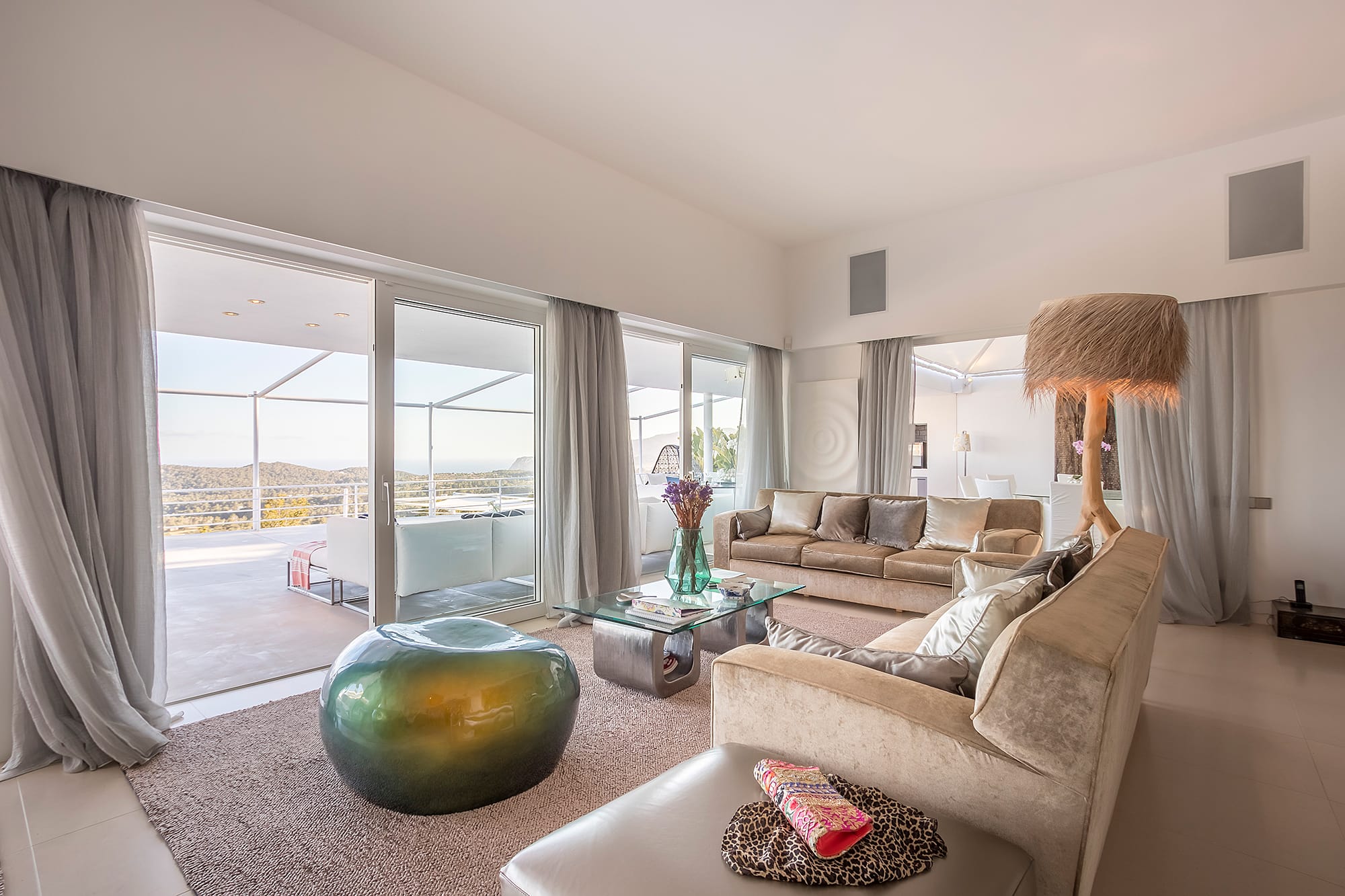 This refined Ibiza retreat offers sweeping panoramic views over the coastline and towards Formentera, set within lush Mediterranean surroundings that ensure privacy and tranquility. Its prime location provides a perfect balance between peaceful seclusion and easy access to nearby beaches and vibrant hotspots.