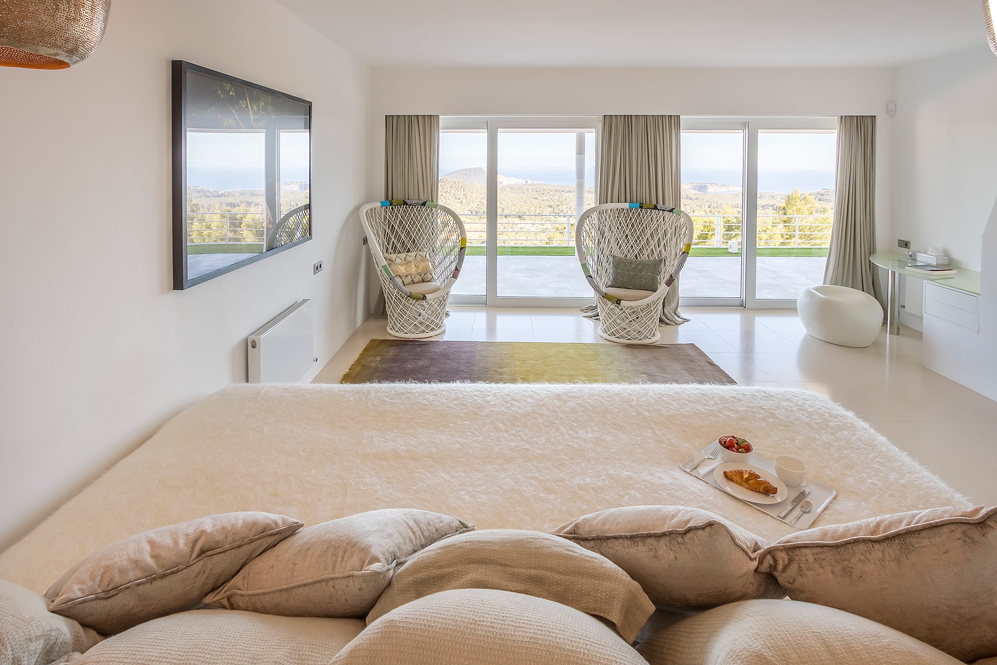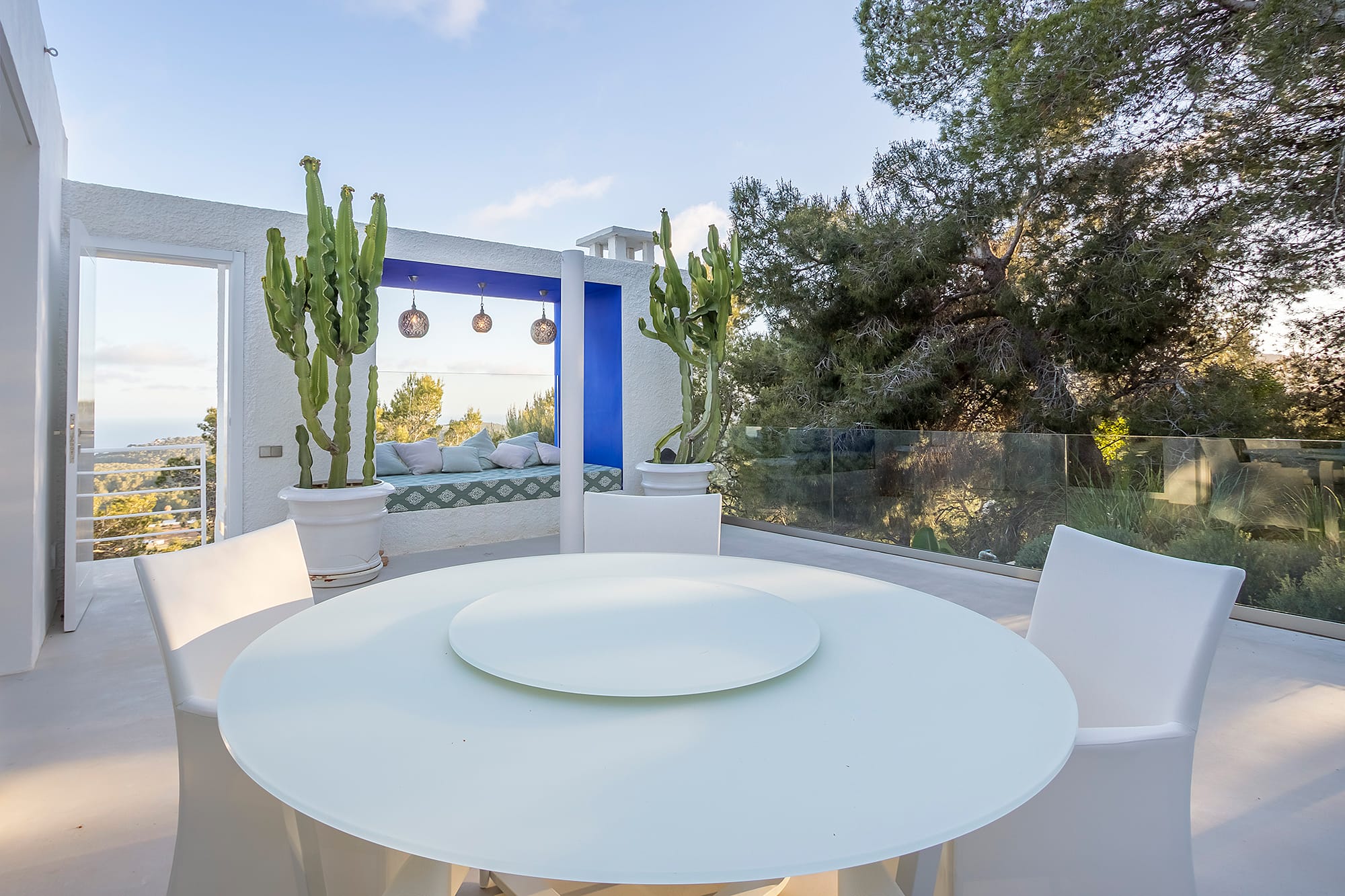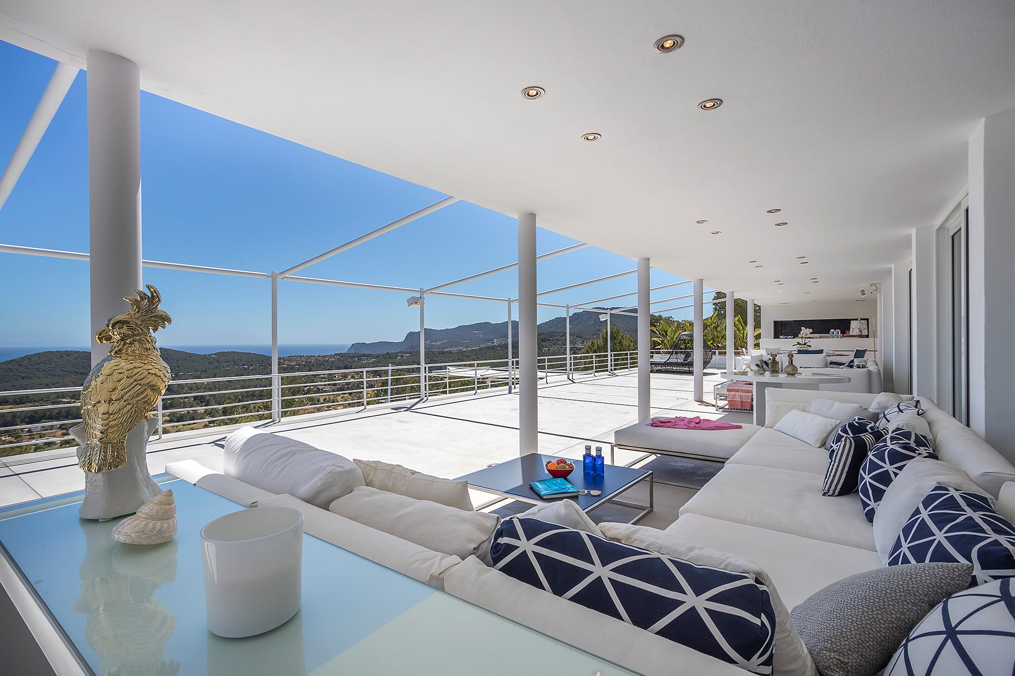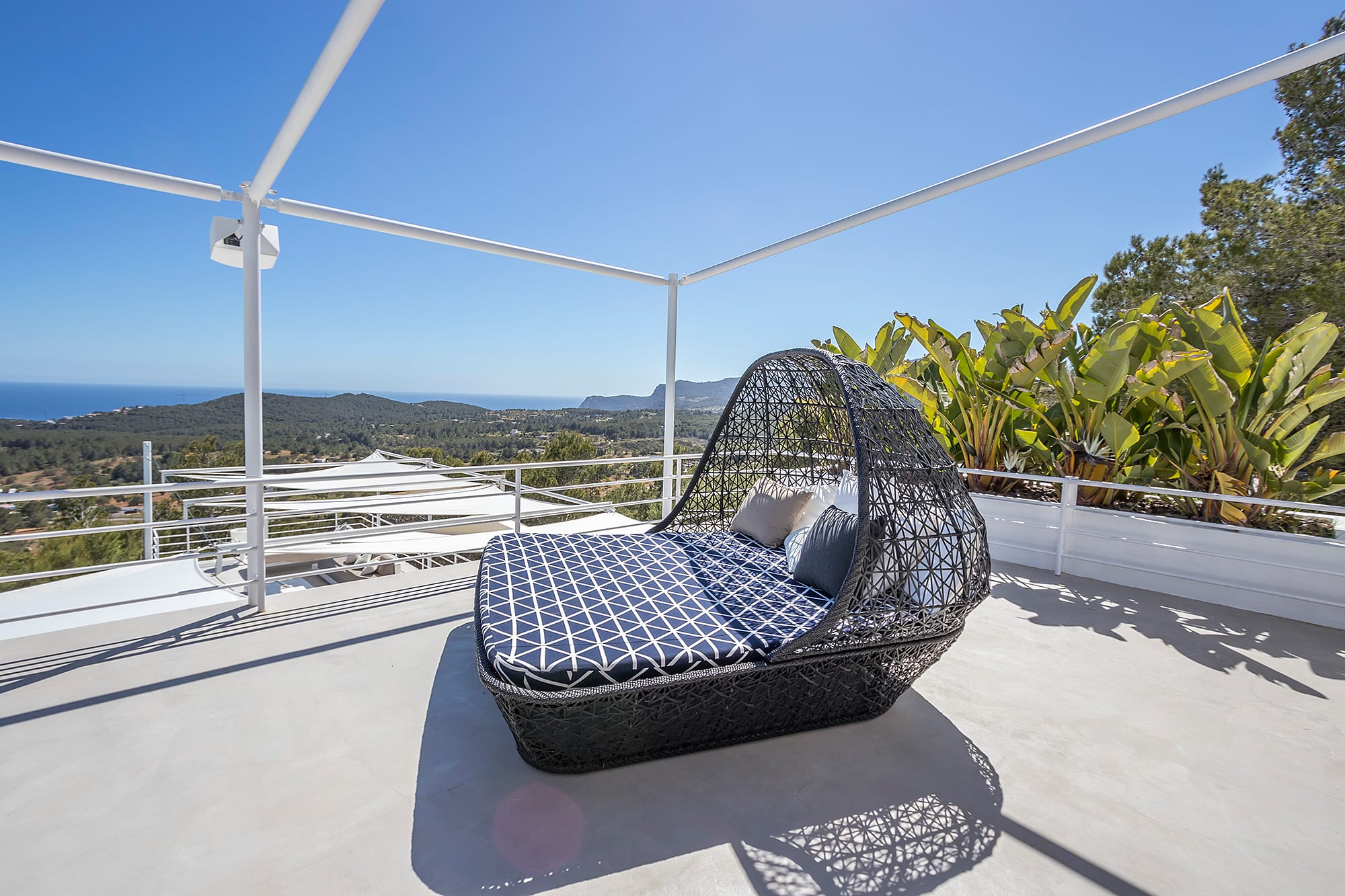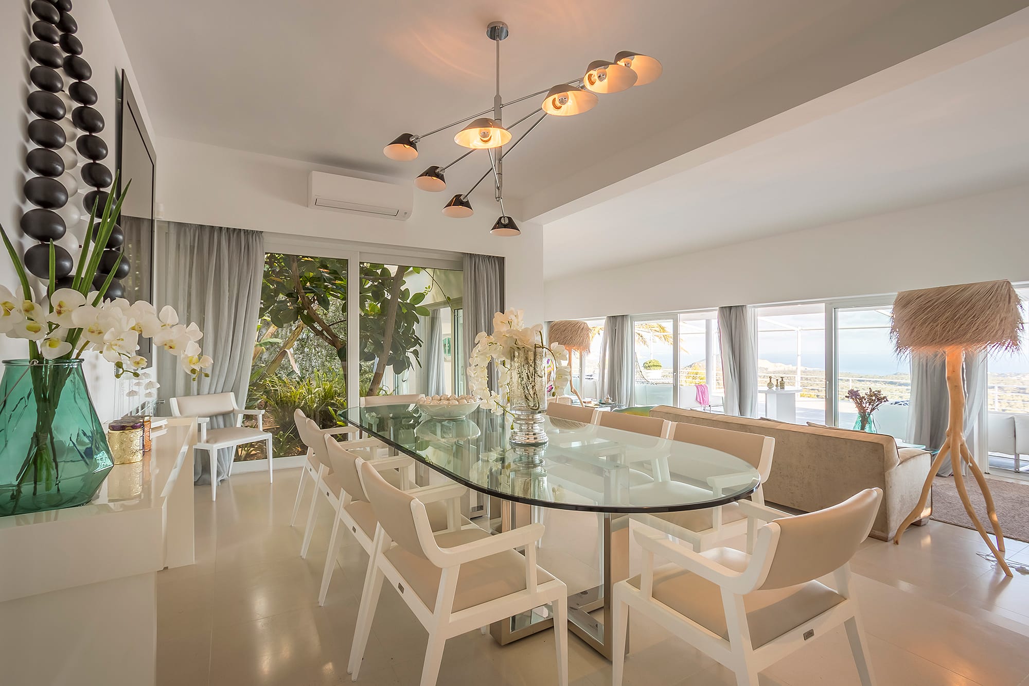 This refined Ibiza retreat offers sweeping panoramic views over the coastline and towards Formentera, set within lush Mediterranean surroundings that ensure privacy and tranquility. Its prime location provides a perfect balance between peaceful seclusion and easy access to nearby beaches and vibrant hotspots.