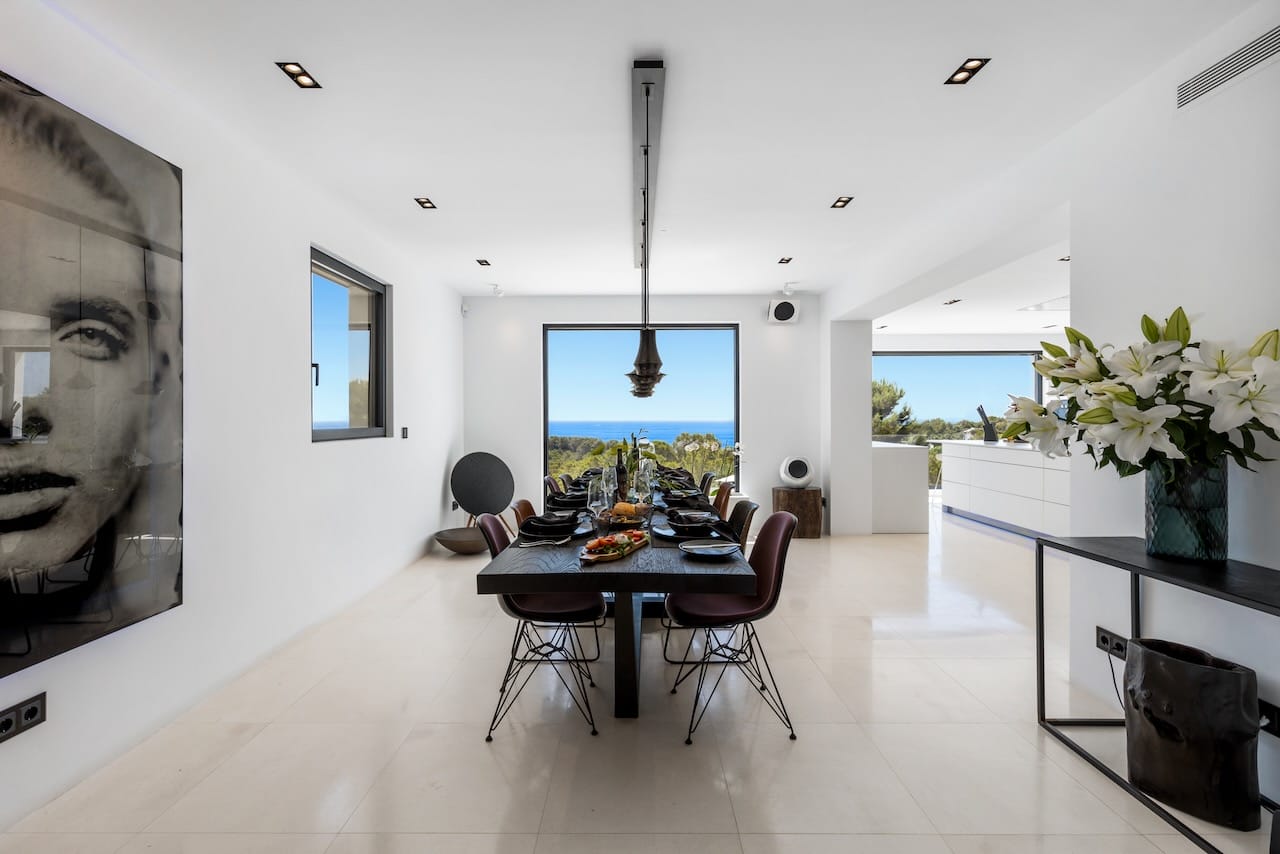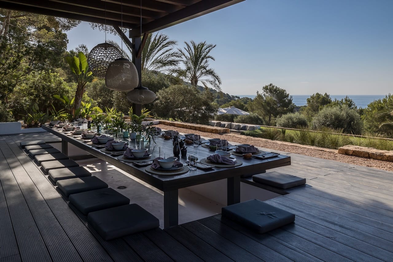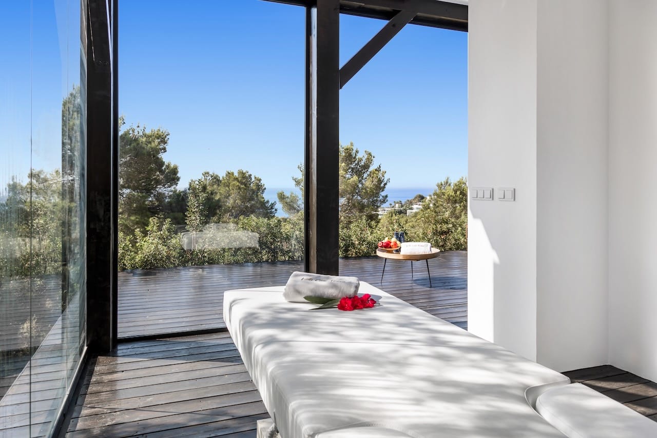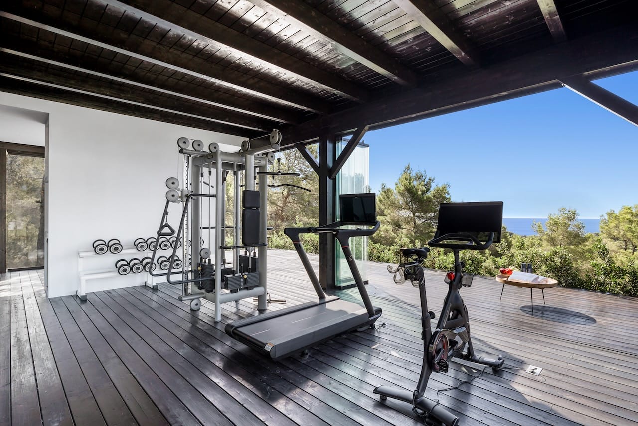 Additional amenities include a fully equipped gym, wellness and treatment areas, and dedicated spaces for relaxation and entertainment. Combining luxury, service, and breathtaking surroundings, it offers an unforgettable Ibiza experience ideal for both private retreats and exclusive gatherings.