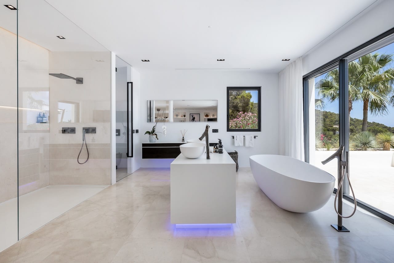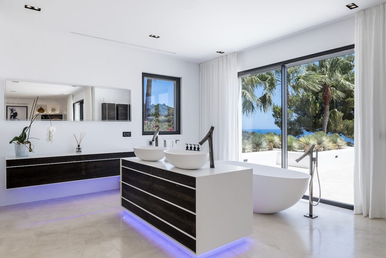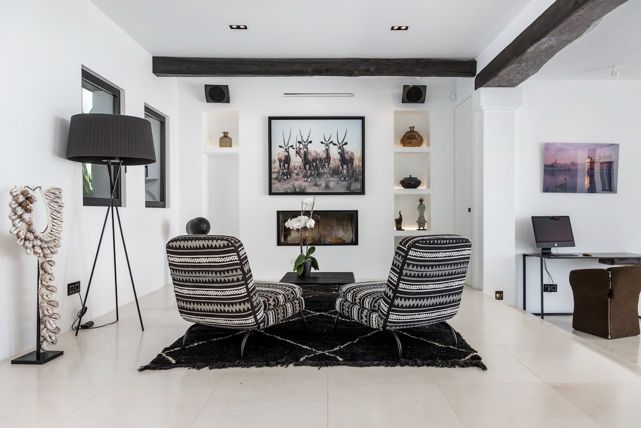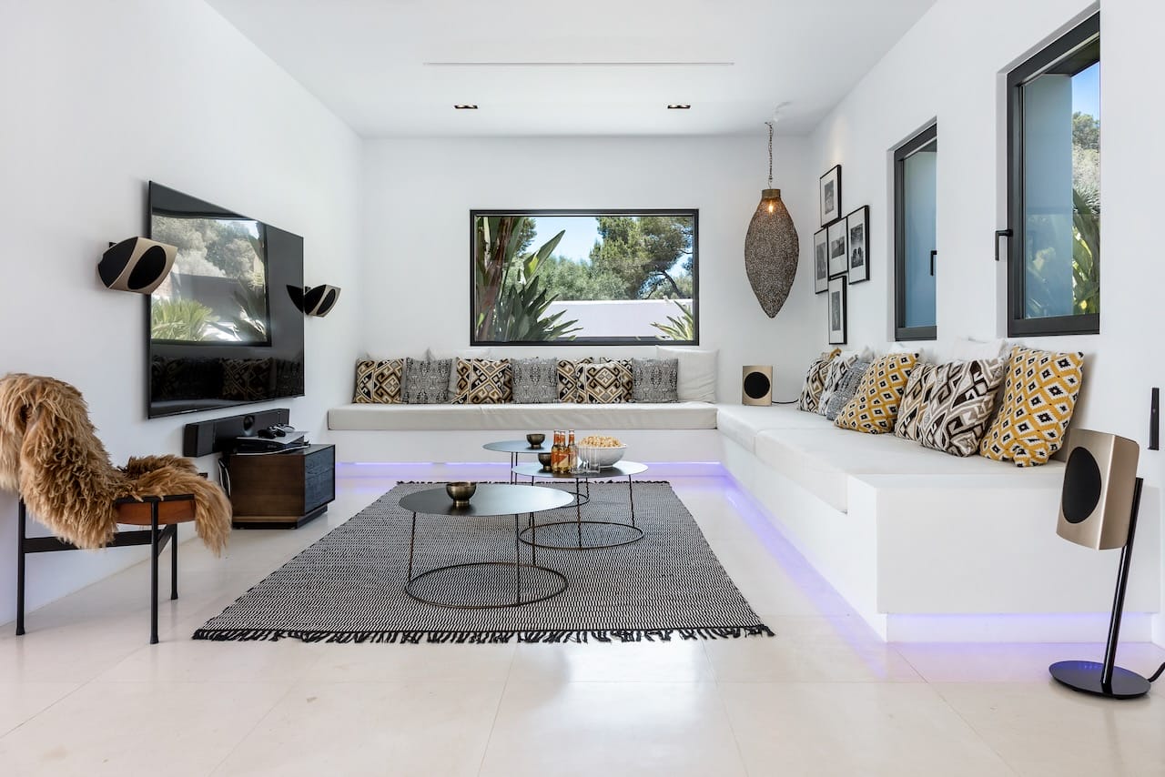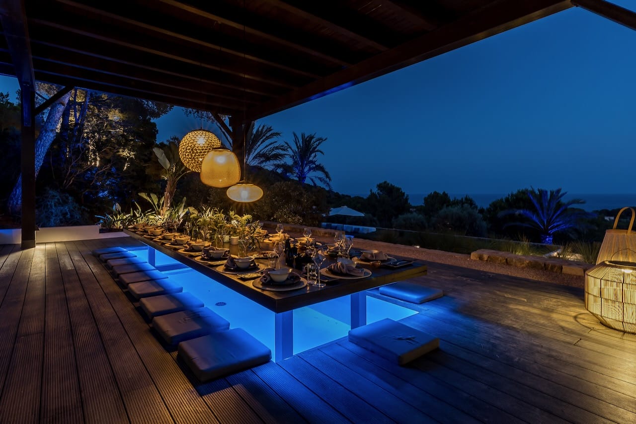 Additional amenities include a fully equipped gym, wellness and treatment areas, and dedicated spaces for relaxation and entertainment. Combining luxury, service, and breathtaking surroundings, it offers an unforgettable Ibiza experience ideal for both private retreats and exclusive gatherings.