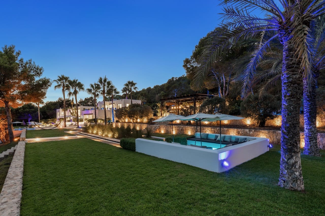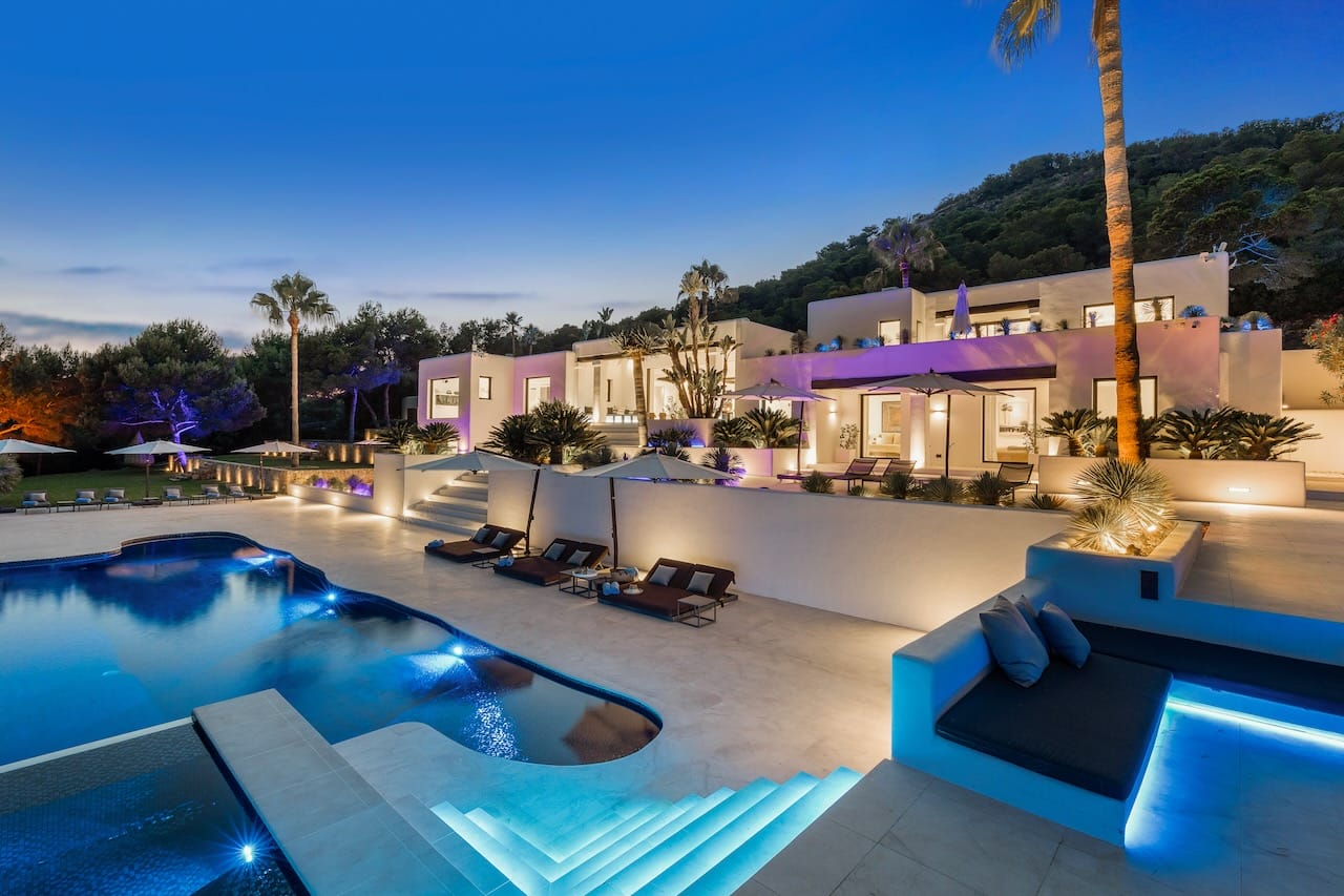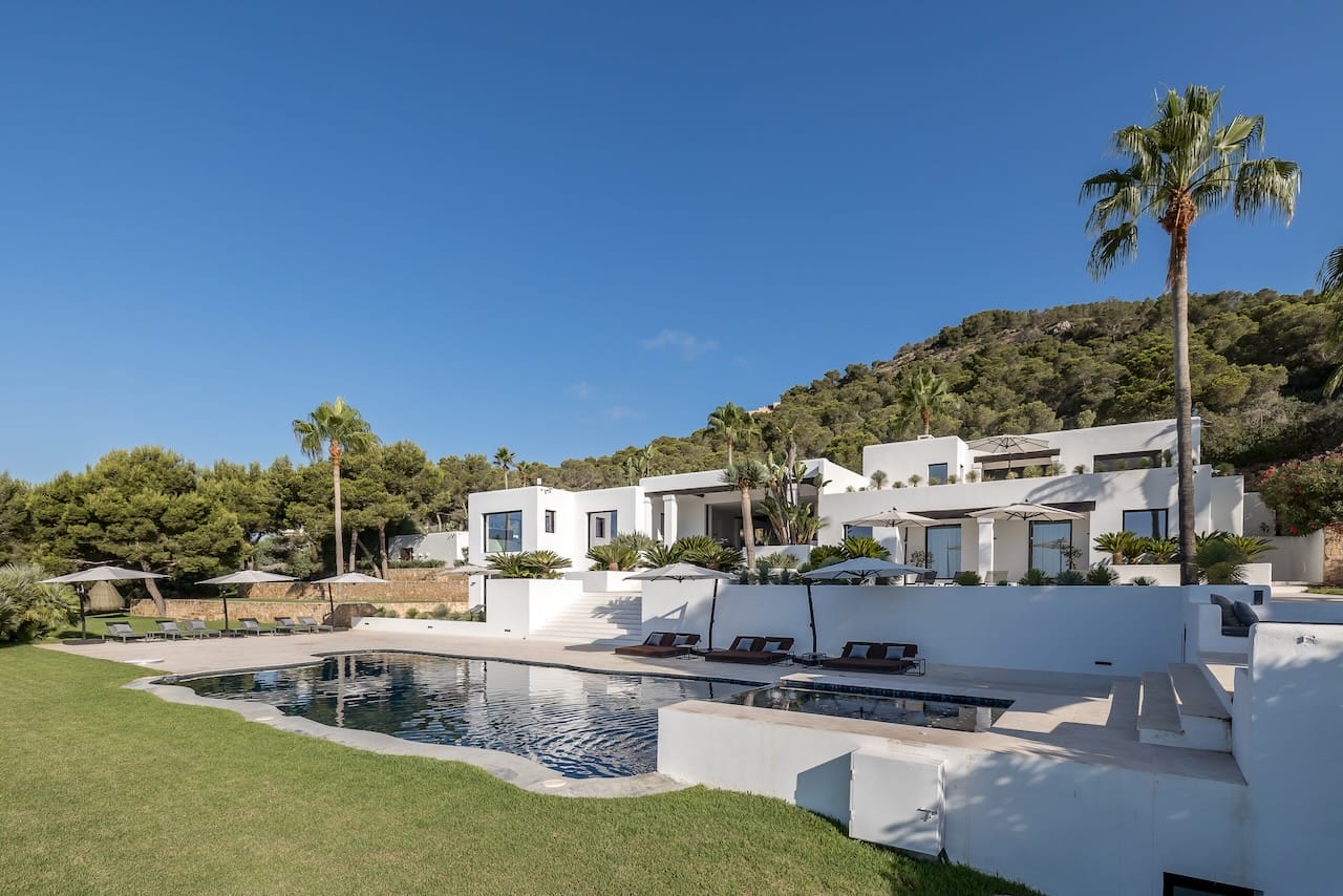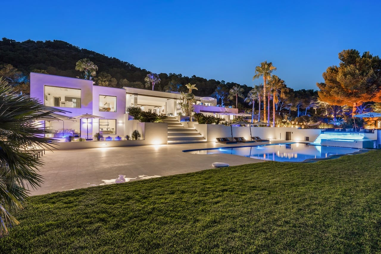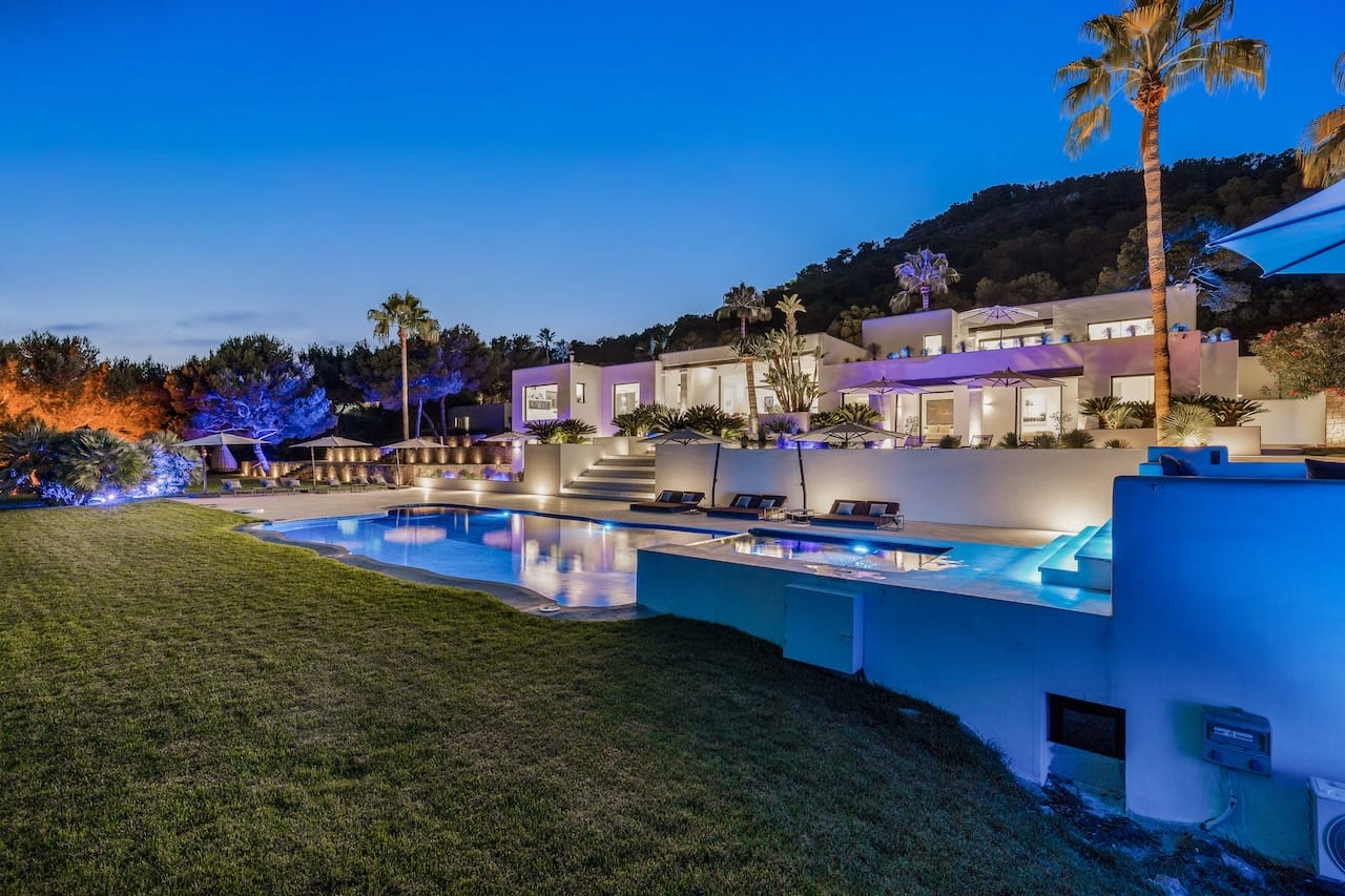 This iconic Ibiza super villa is a masterpiece of modern design, set within expansive landscaped gardens in one of the island’s most exclusive areas. Offering sweeping sea views extending to Formentera, it combines privacy, space, and easy access to Ibiza Town and nearby الساحhores.