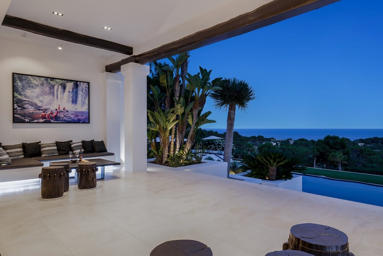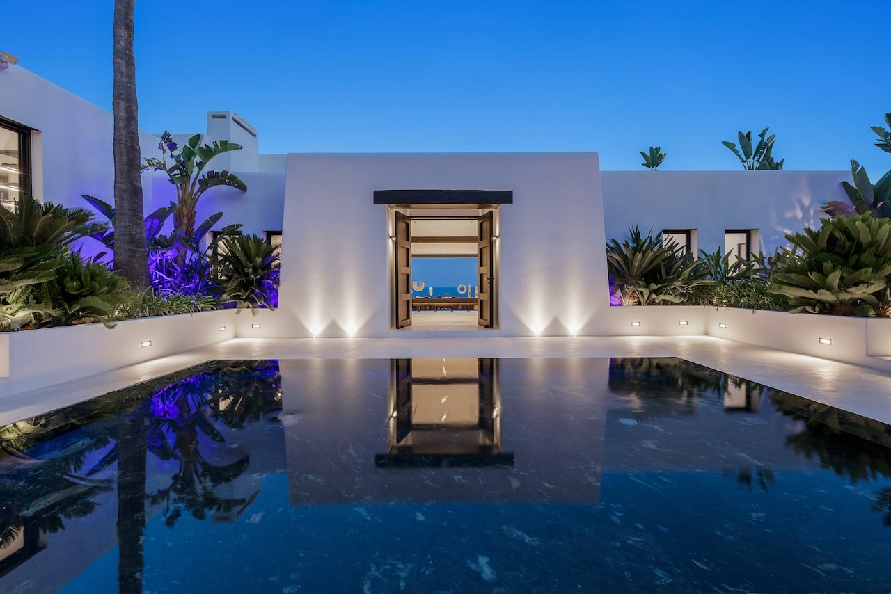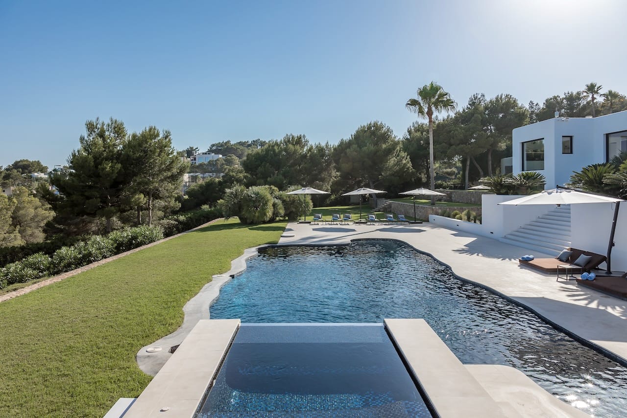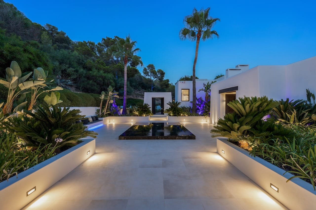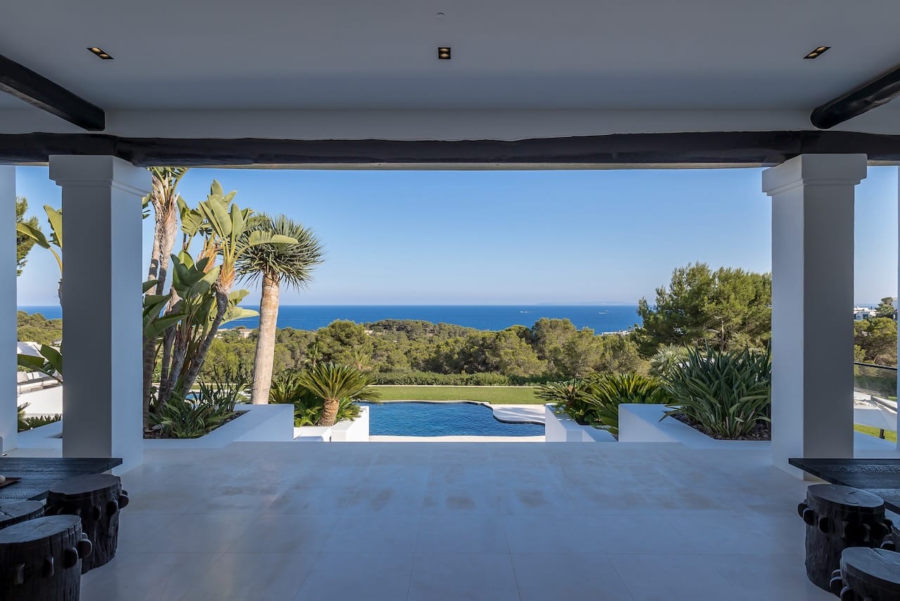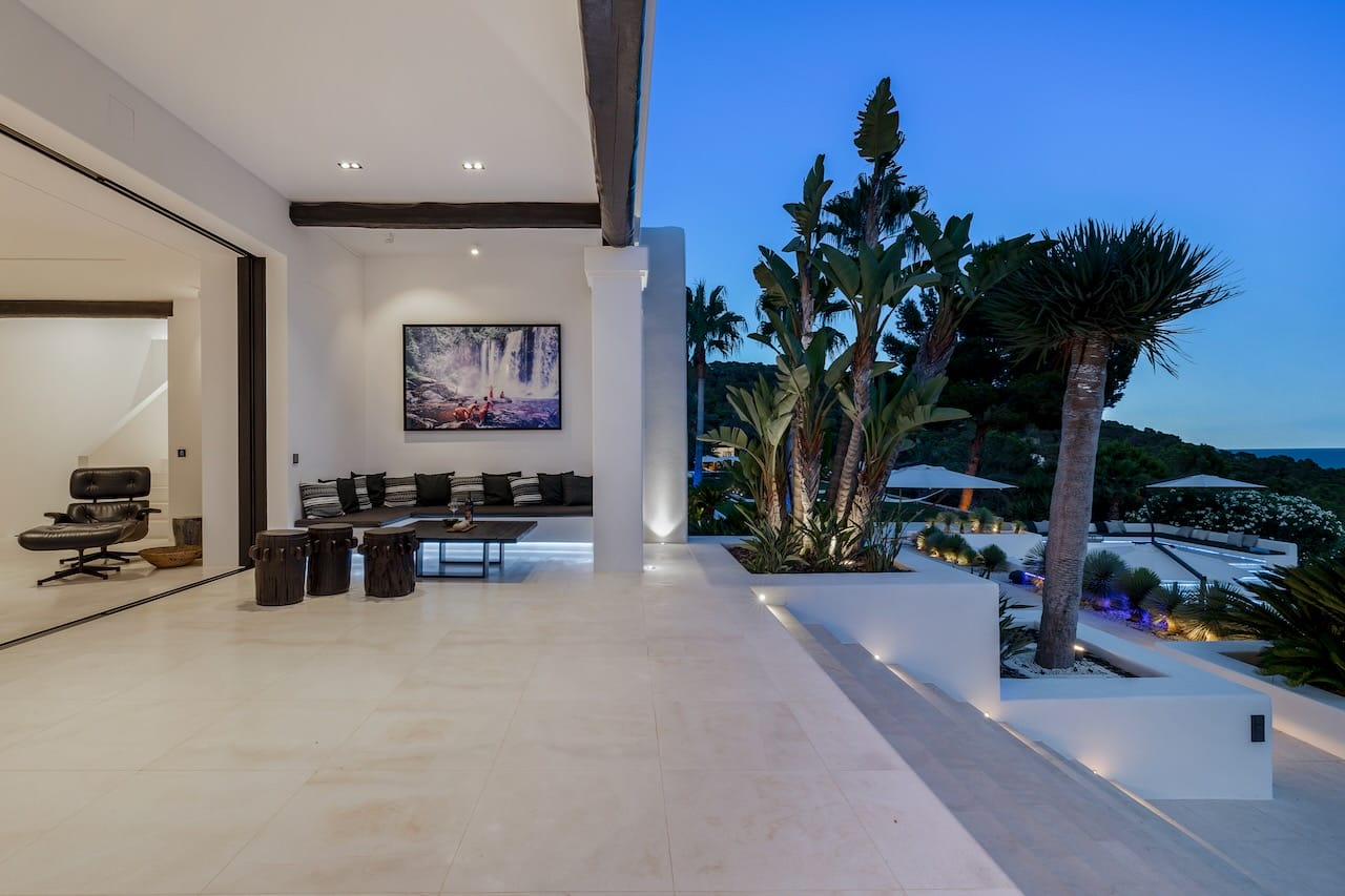 This iconic Ibiza super villa is a masterpiece of modern design, set within expansive landscaped gardens in one of the island’s most exclusive areas. Offering sweeping sea views extending to Formentera, it combines privacy, space, and easy access to Ibiza Town and nearby الساحhores.