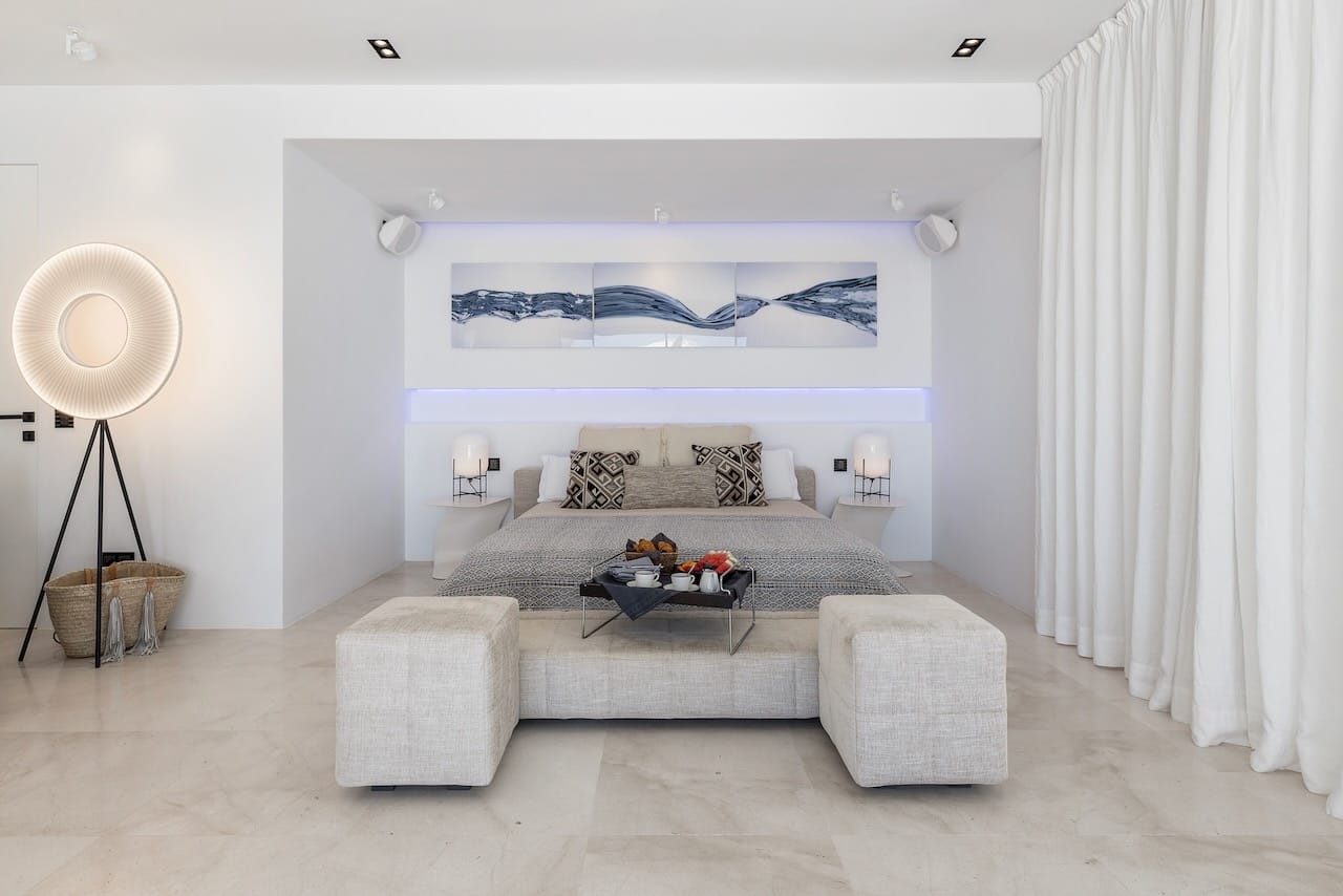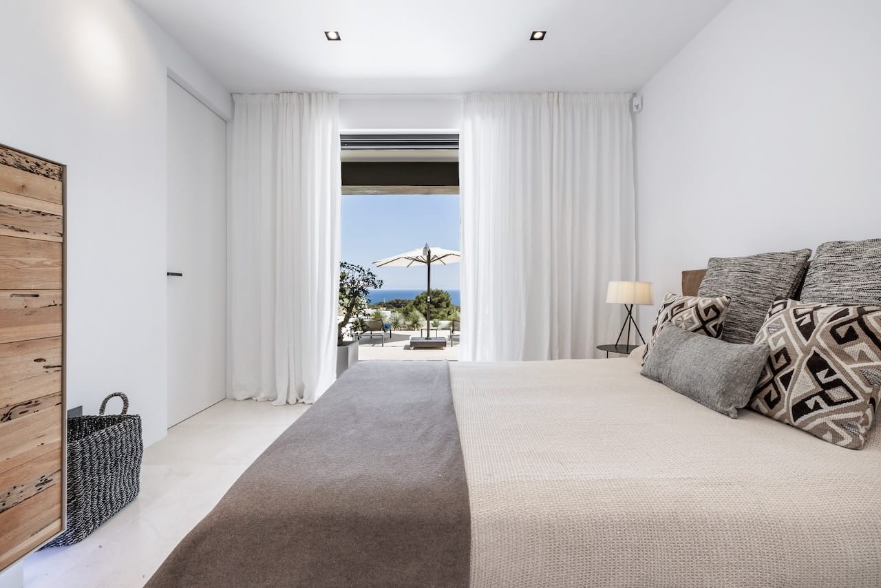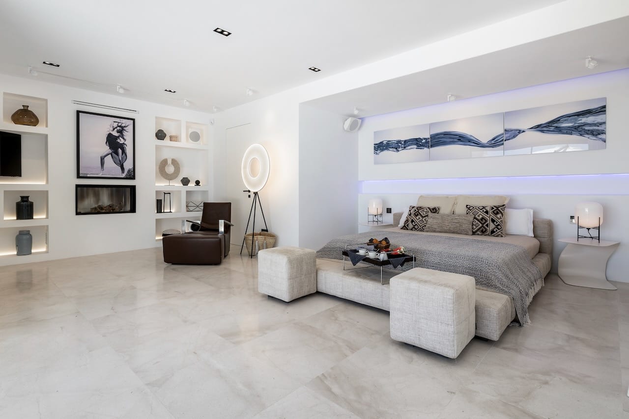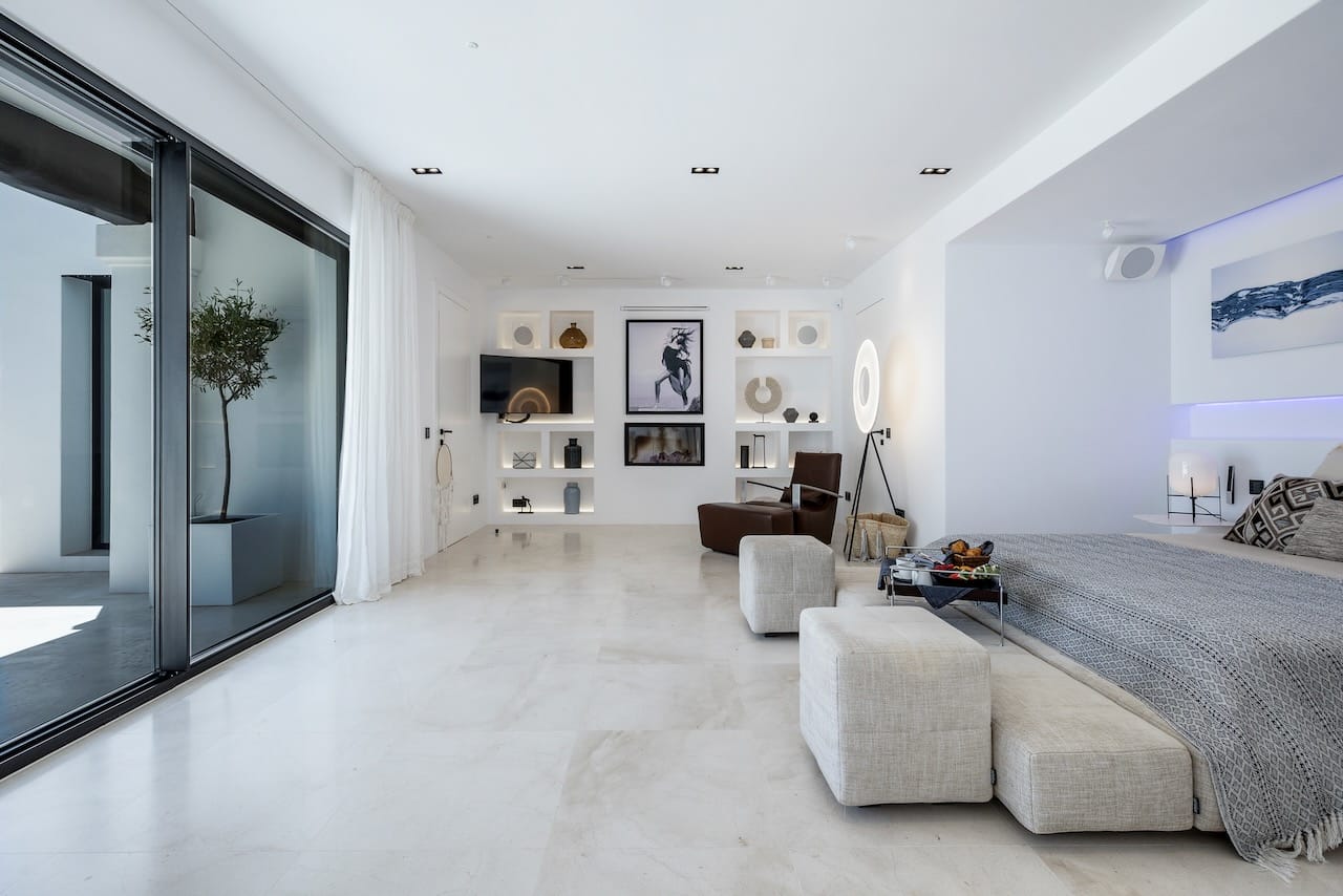 The interiors are bright, elegant, and thoughtfully designed, with open living spaces filled with natural light and enhanced by high-end furnishings, artwork, and smart home technology. Multiple luxurious suites provide comfort and privacy, many with direct terrace access and stunning views, creating a serene and sophisticated atmosphere throughout.