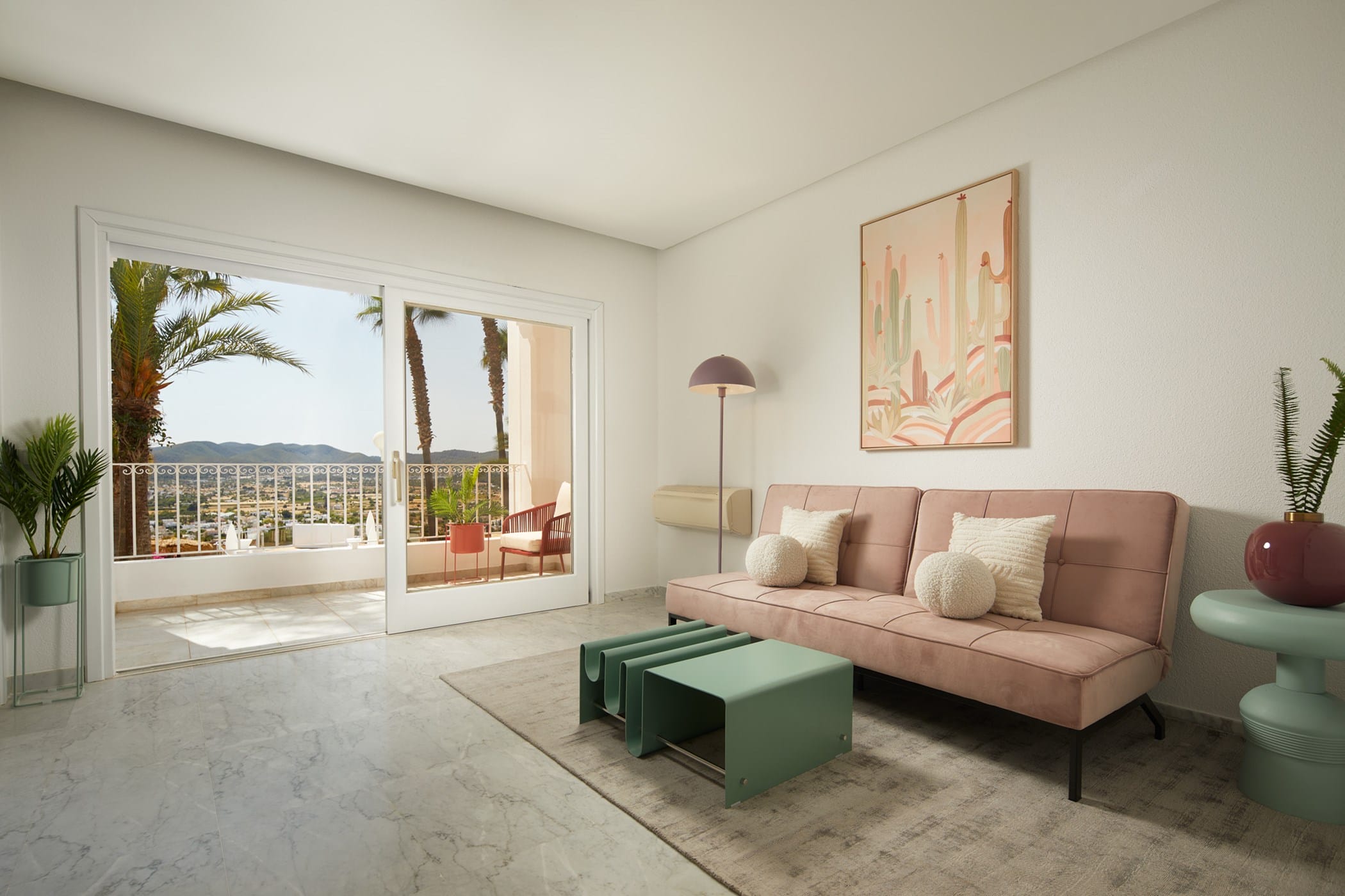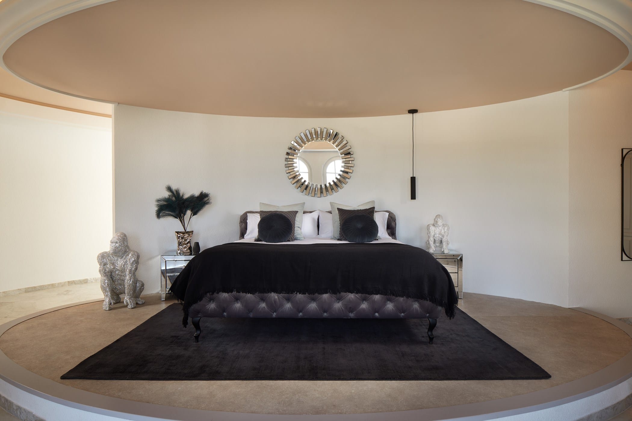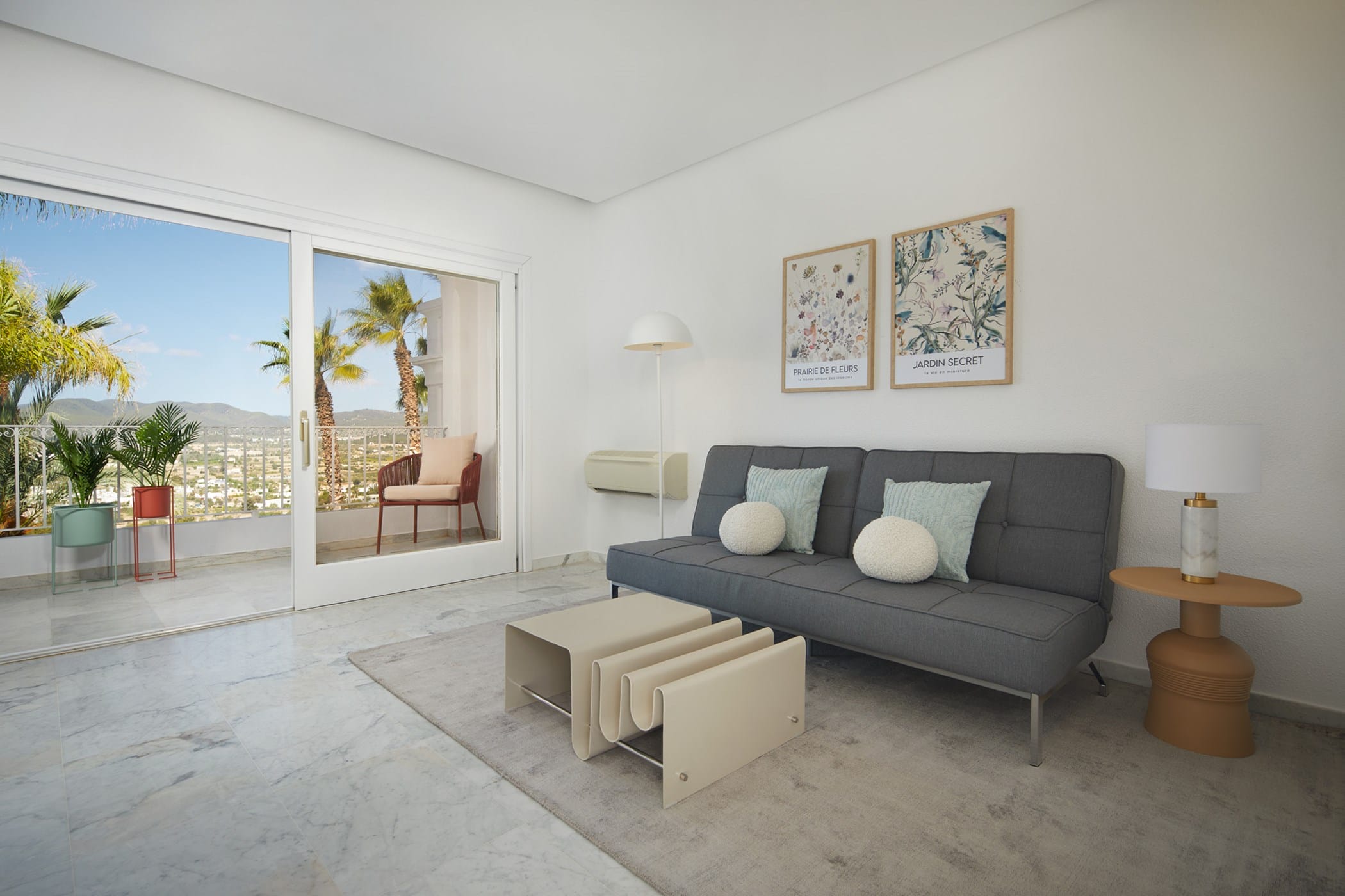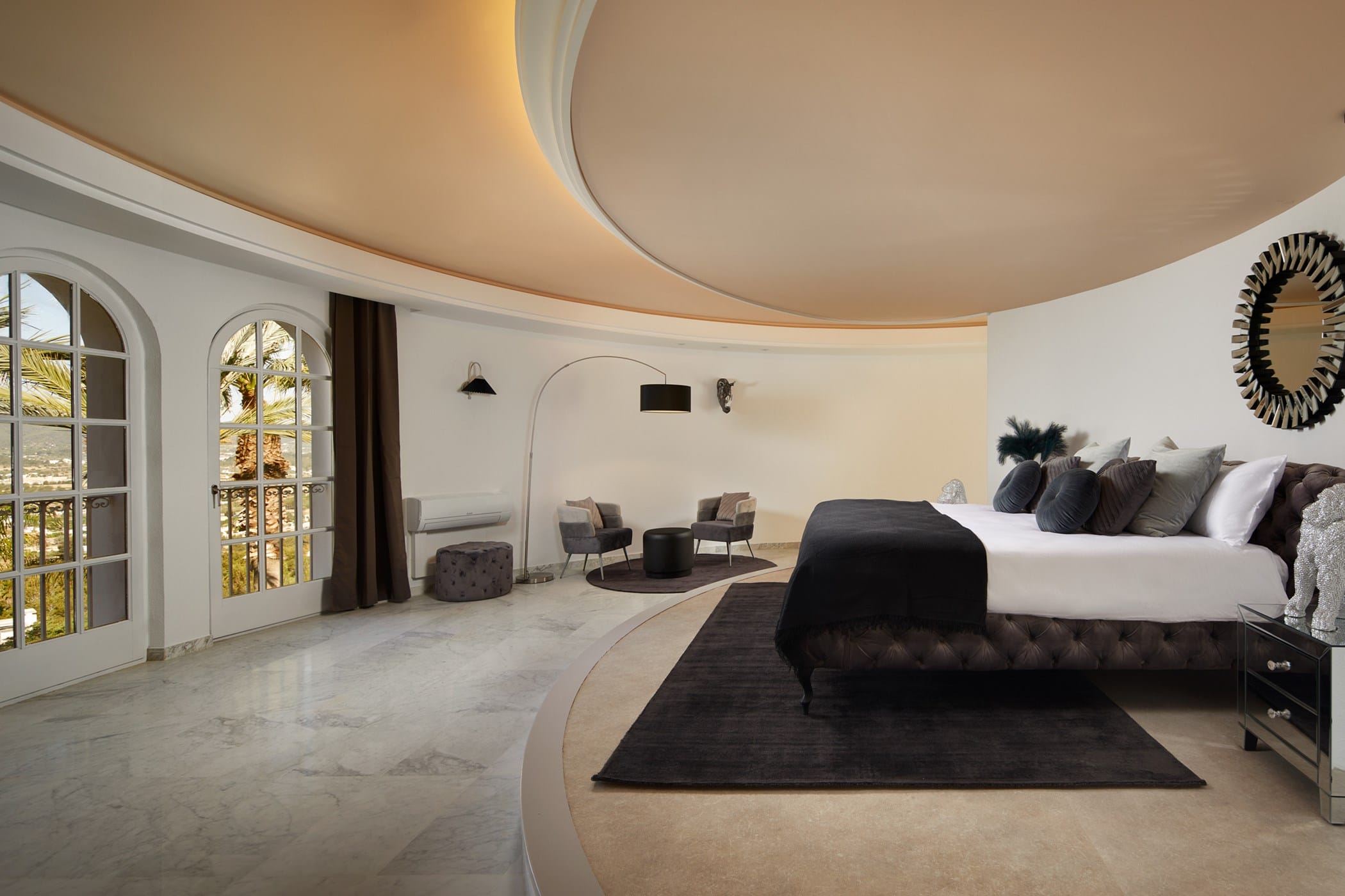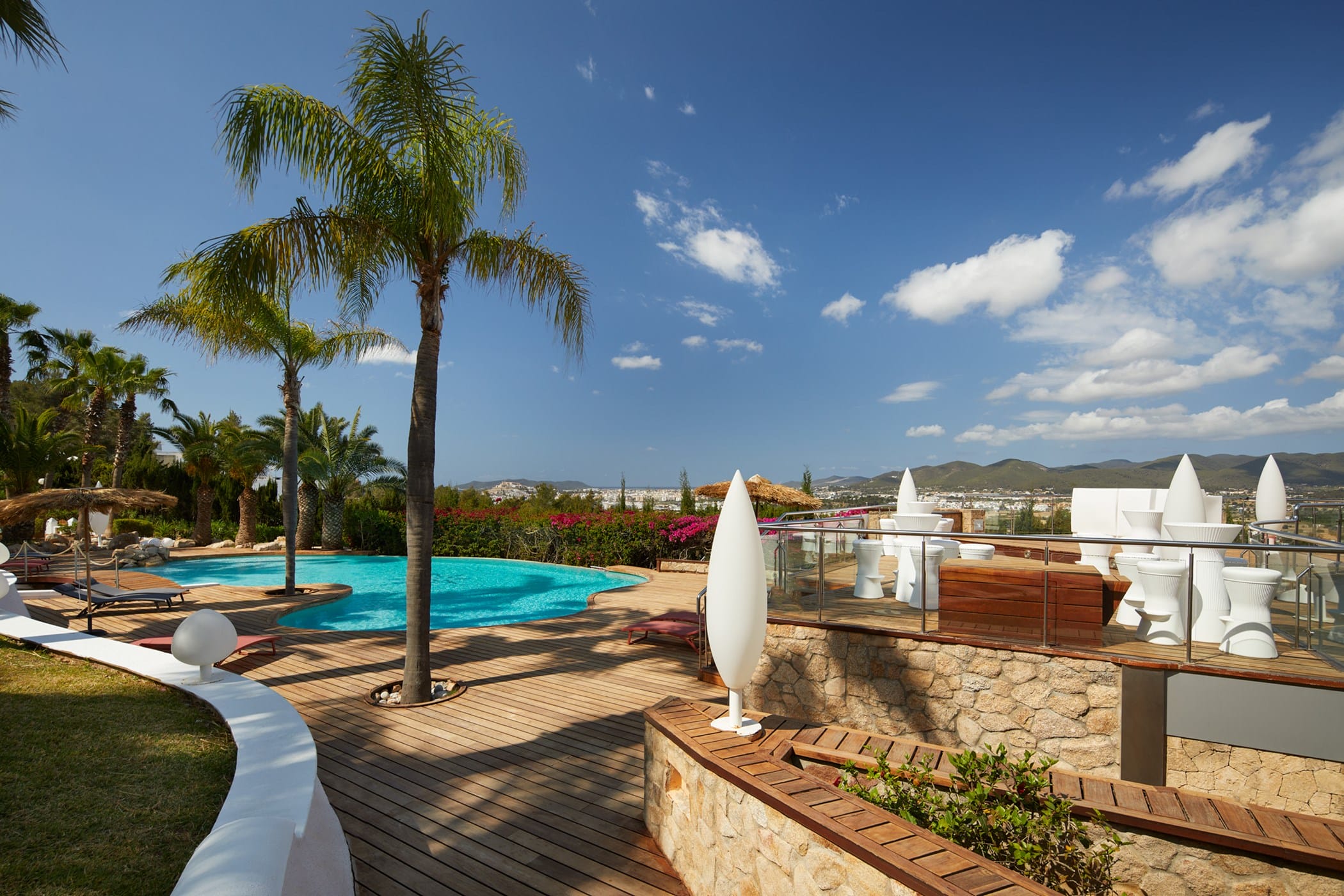 This tropical-style villa is set within expansive private grounds, surrounded by lush Mediterranean gardens and palm trees, offering a peaceful yet well-connected retreat just minutes from Ibiza Town. Its layout and location make it ideal for families or groups seeking both relaxation and easy access to the island’s vibrant south.