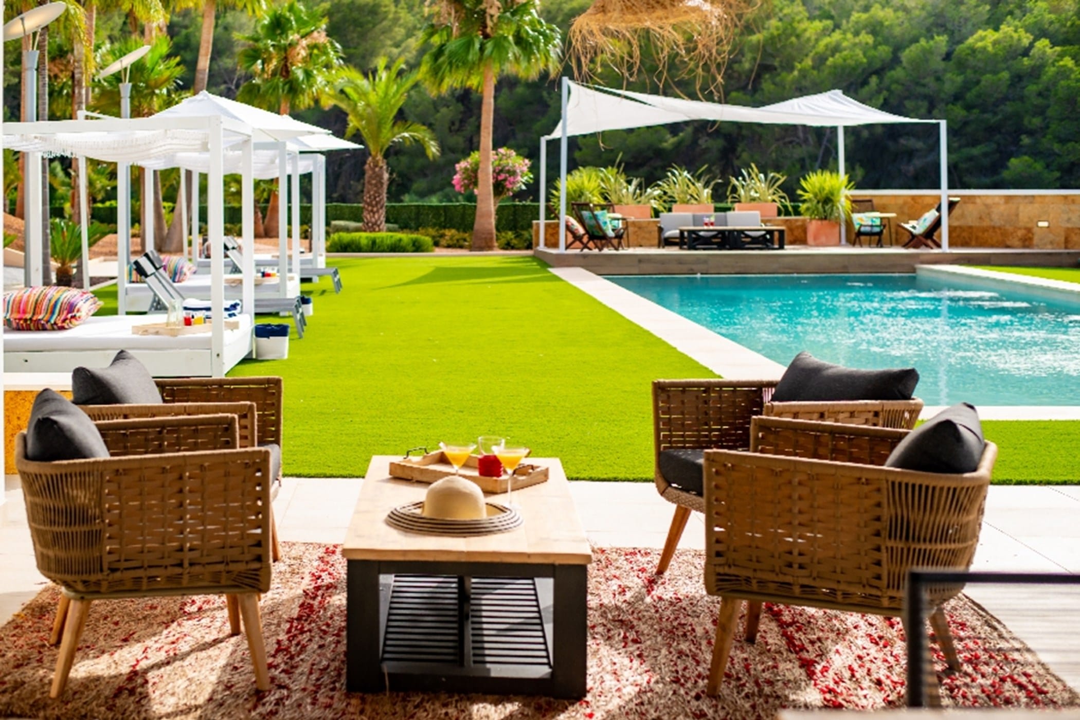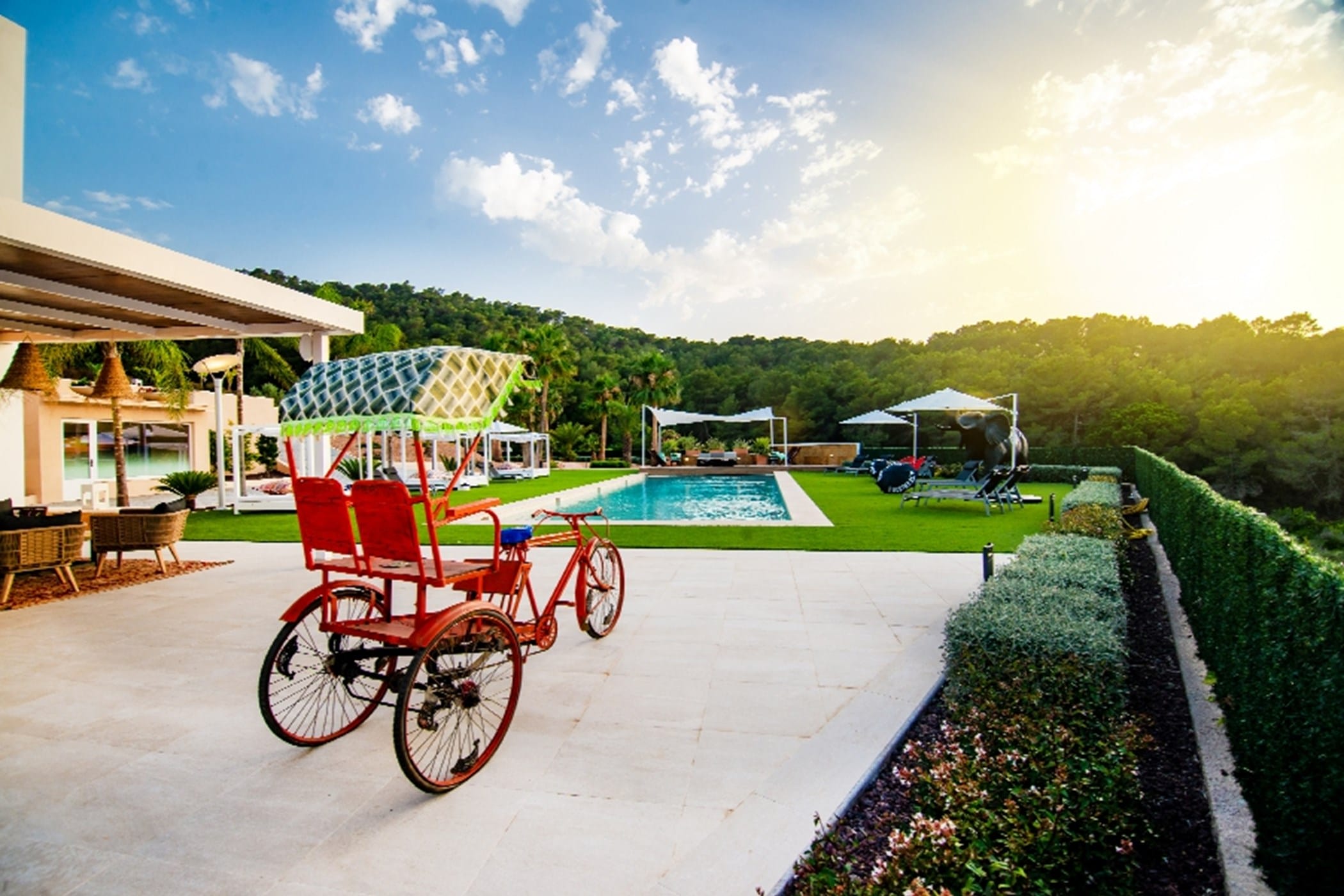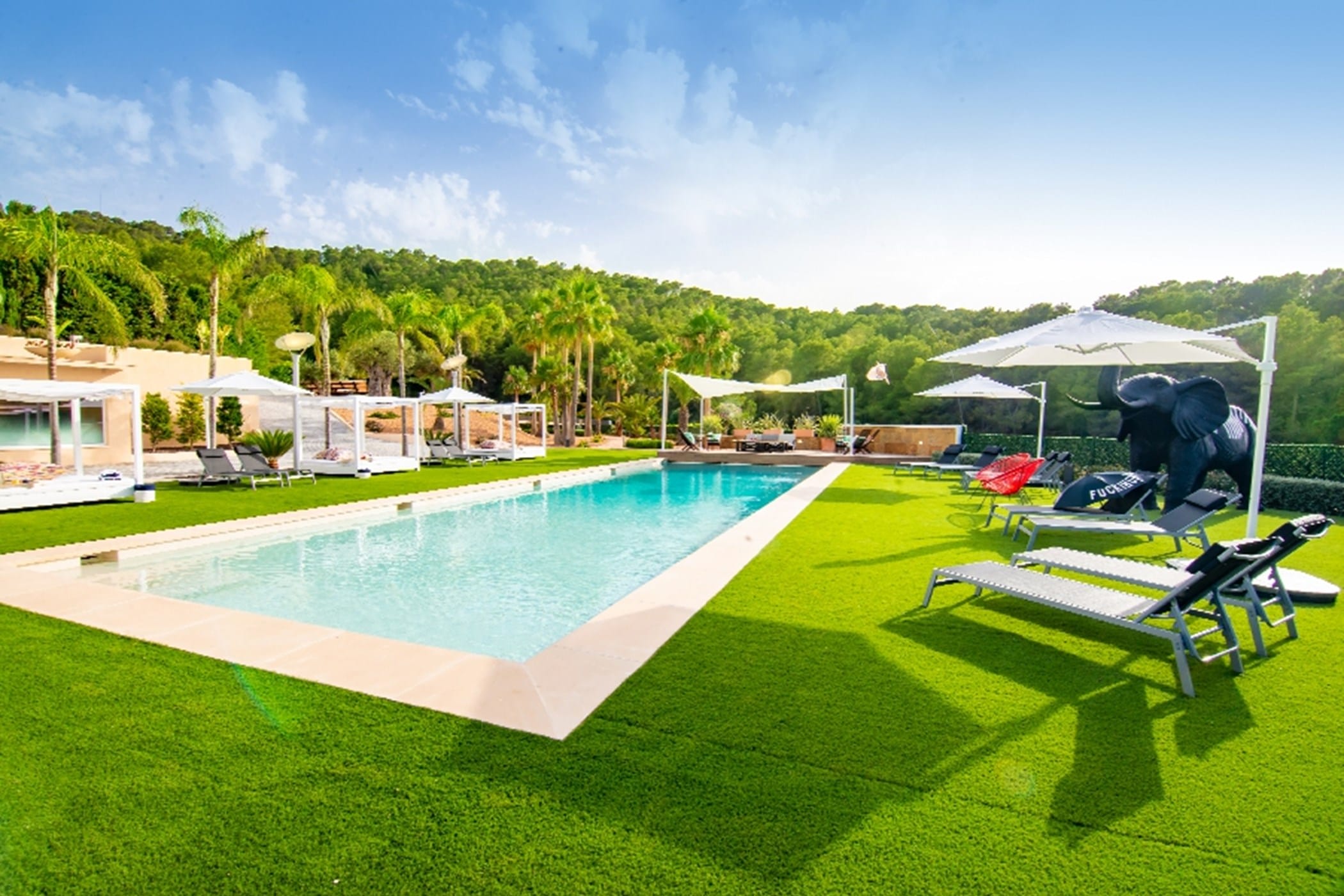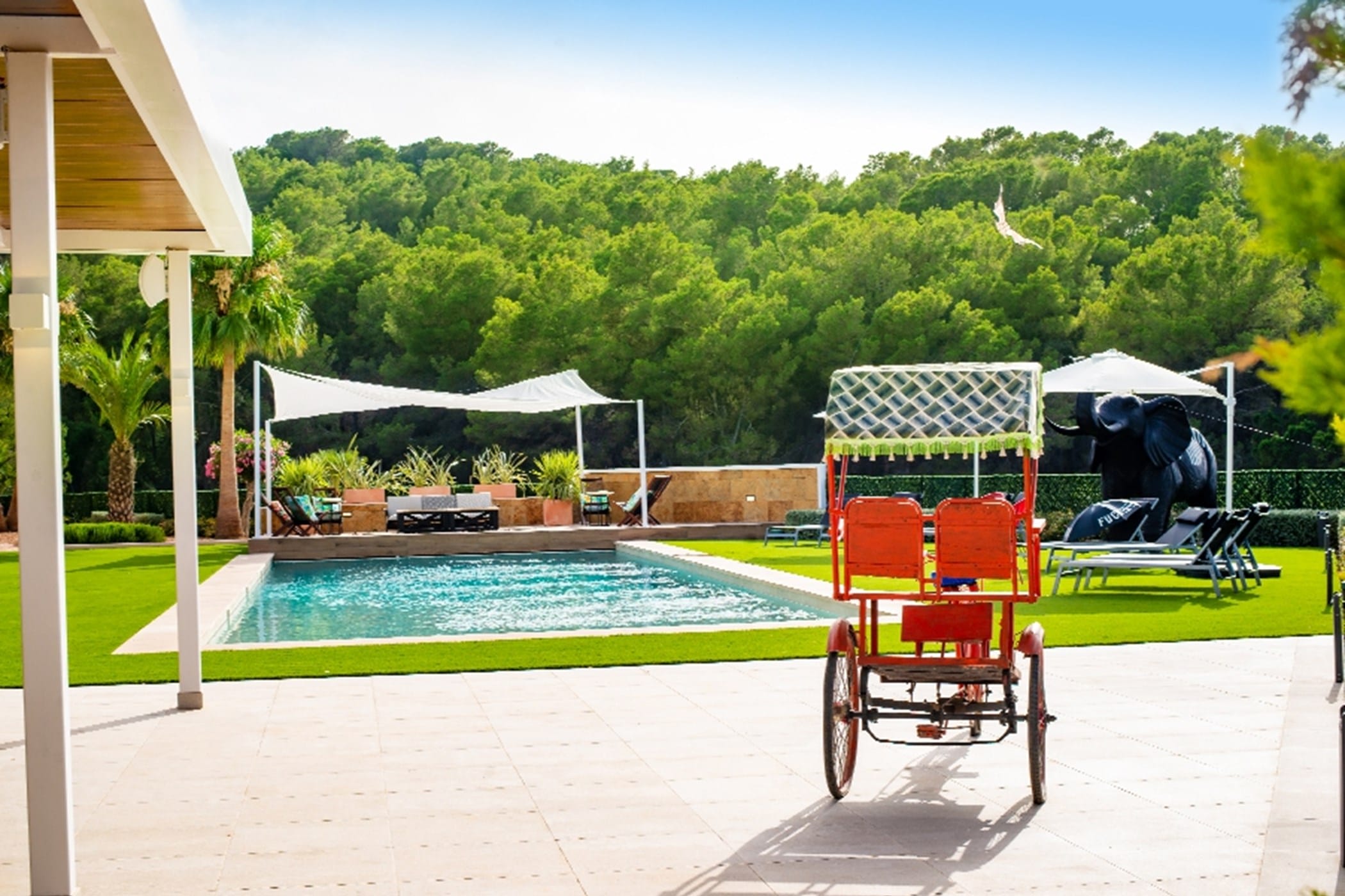 This charming 9-bedroom villa is nestled in a tranquil pine forest just a short drive from Santa Eulalia and Ibiza Town, offering the perfect balance of countryside peace and easy access to the island’s vibrant attractions.